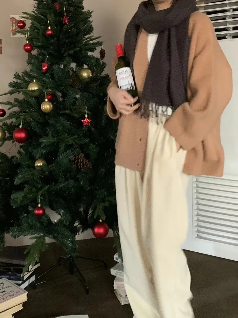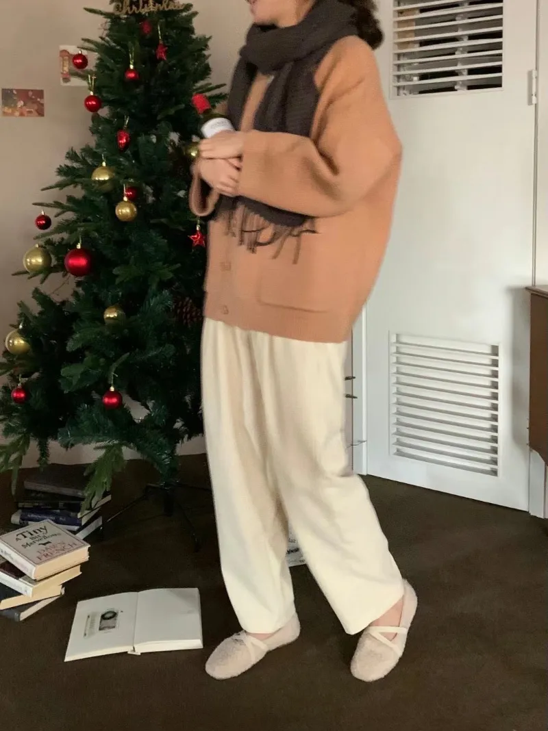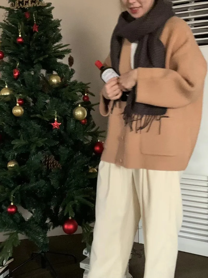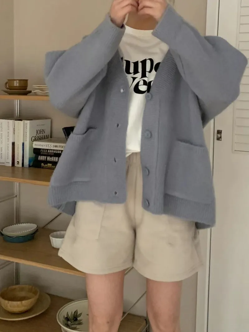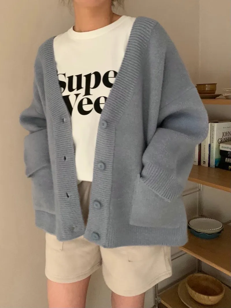 D54店長真愛*慵懶休閒雙口袋設計大V領羊毛針織外套