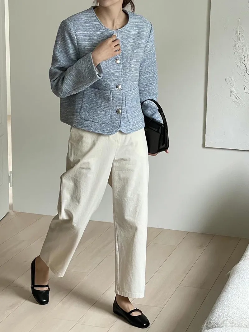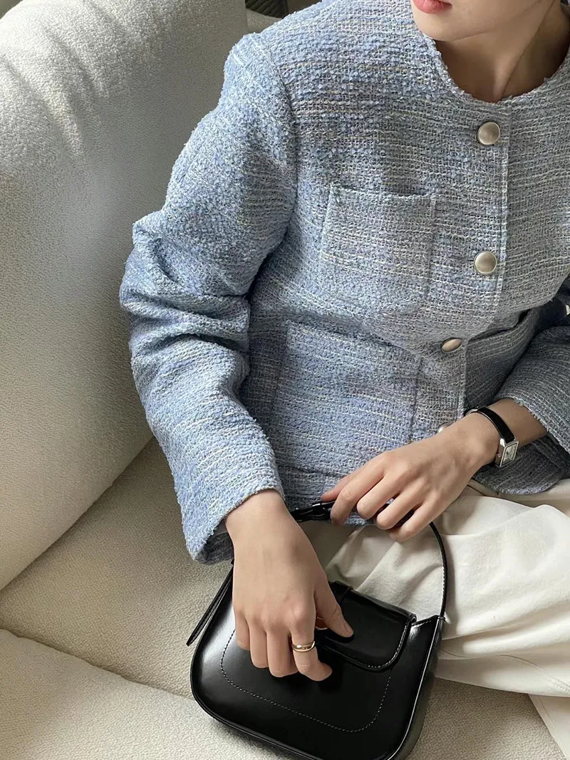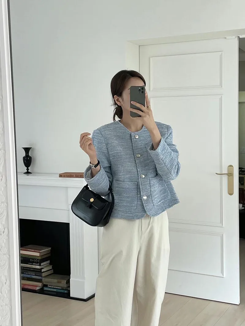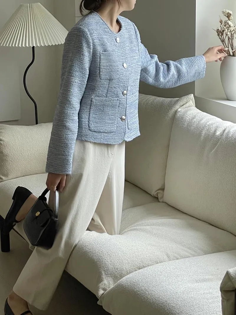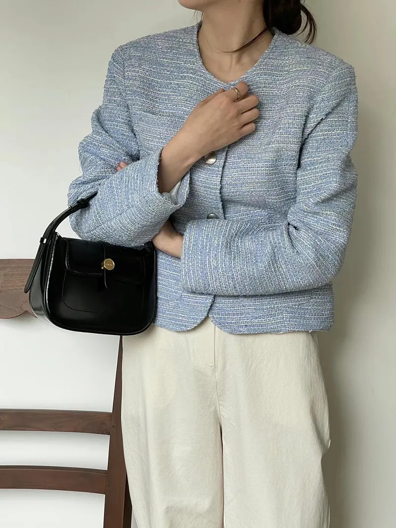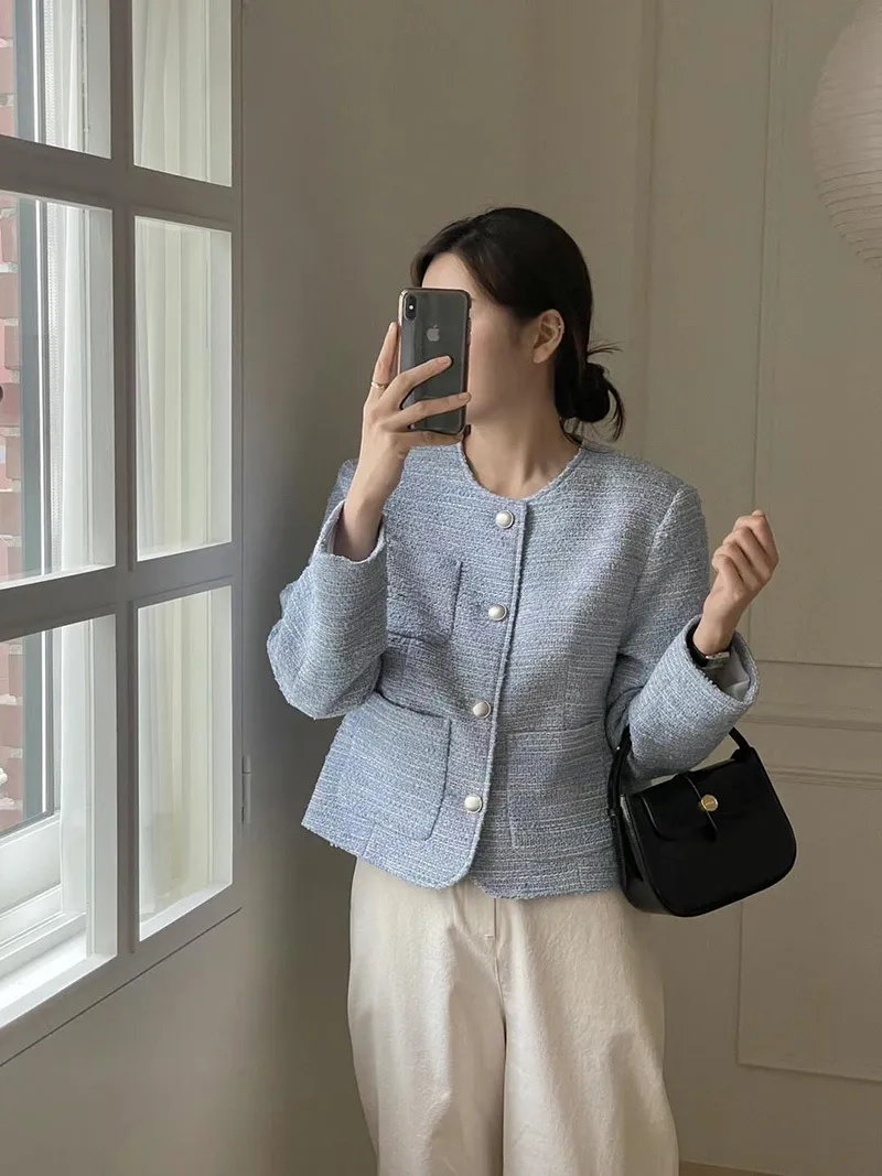 R29店長推薦*超美的水藍粉彩細緻tweed小香外套