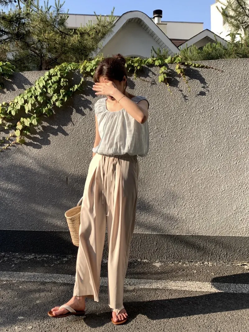 J16店長真愛*立體剪裁感綁帶設計休閒西裝寬褲