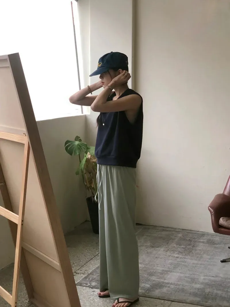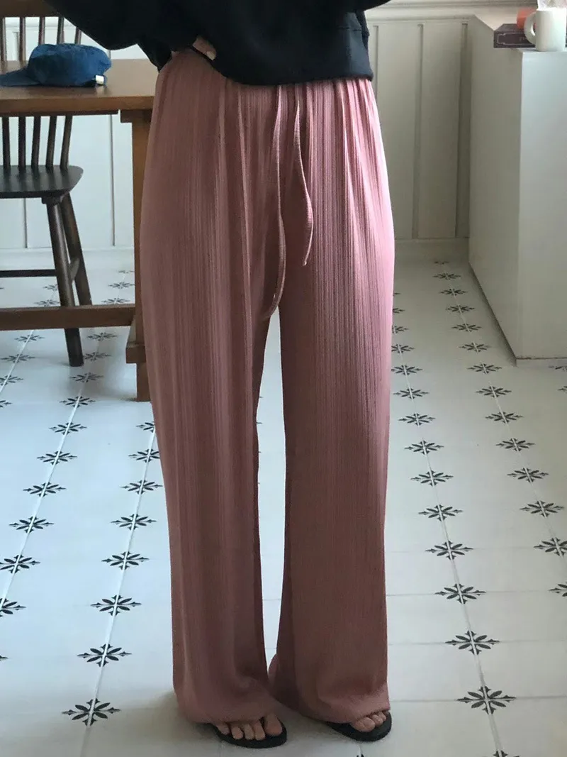 J44必買*極細壓紋飄逸感綁帶休閒褲