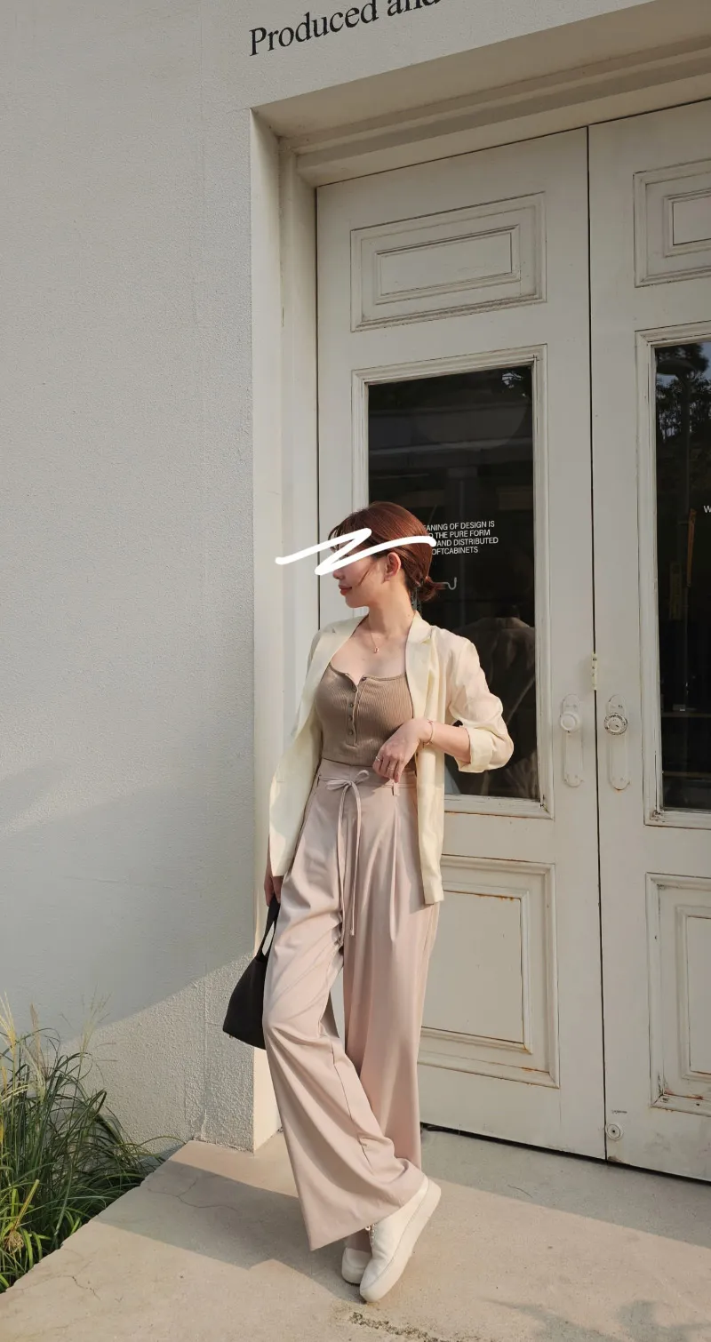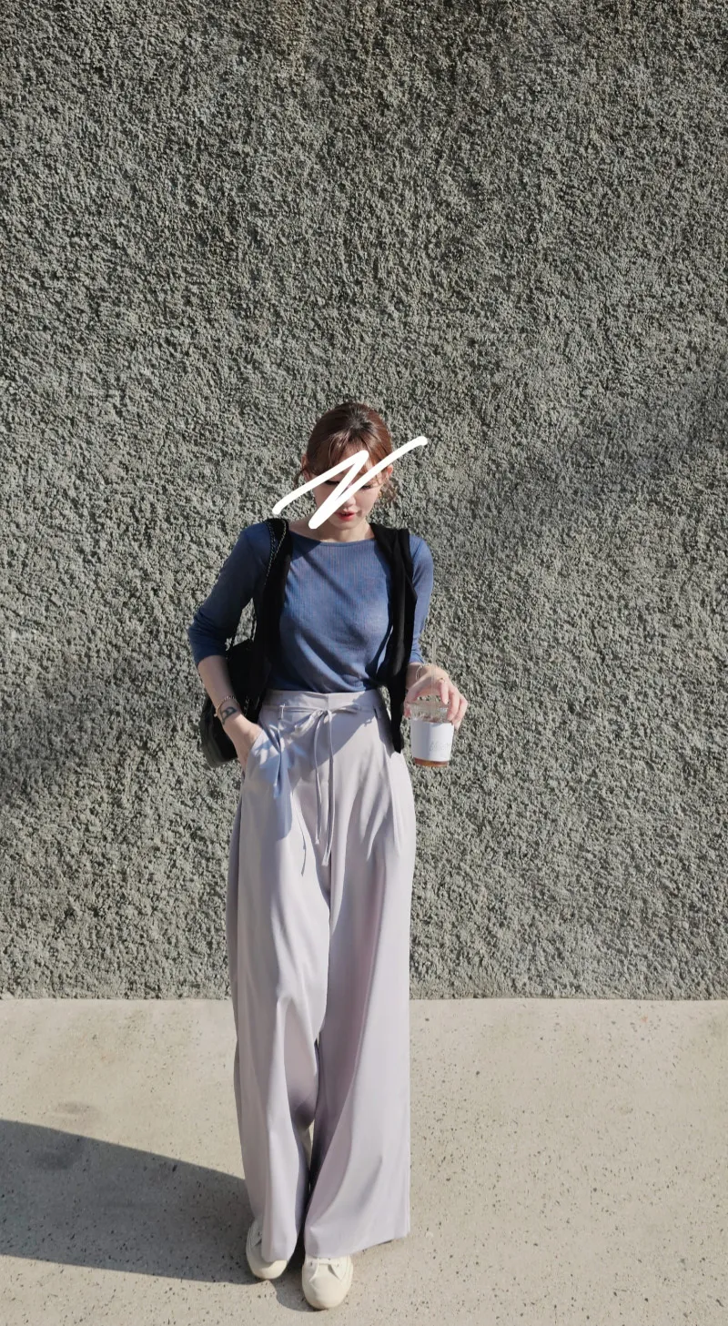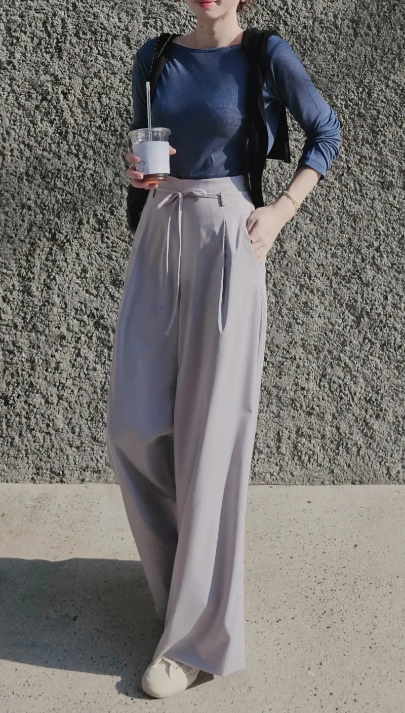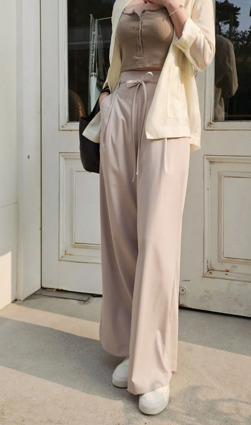 S40好女孩高級質感綁帶落地寬西褲