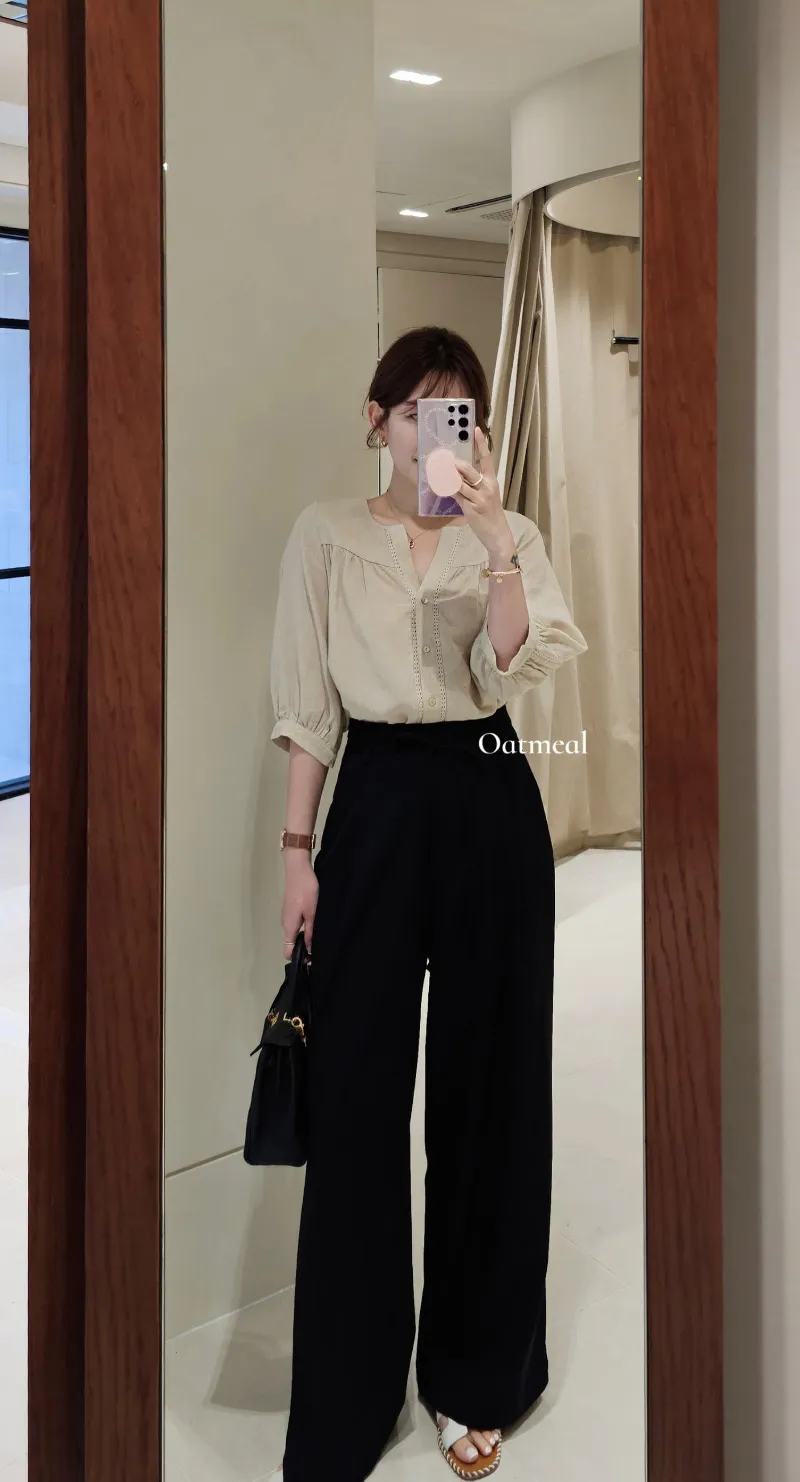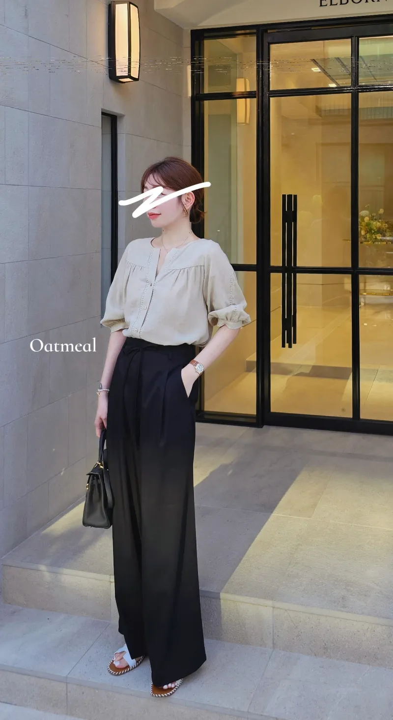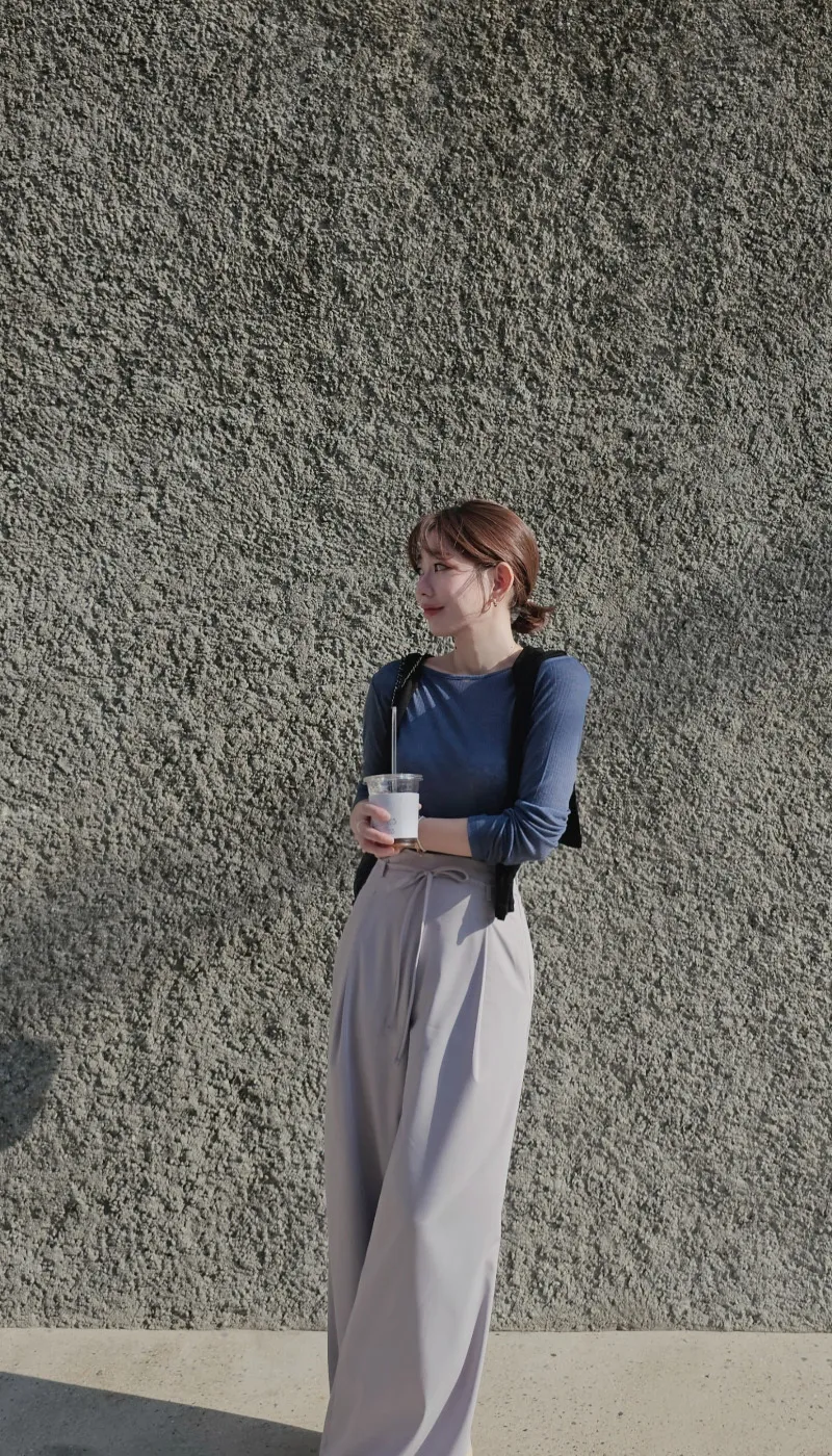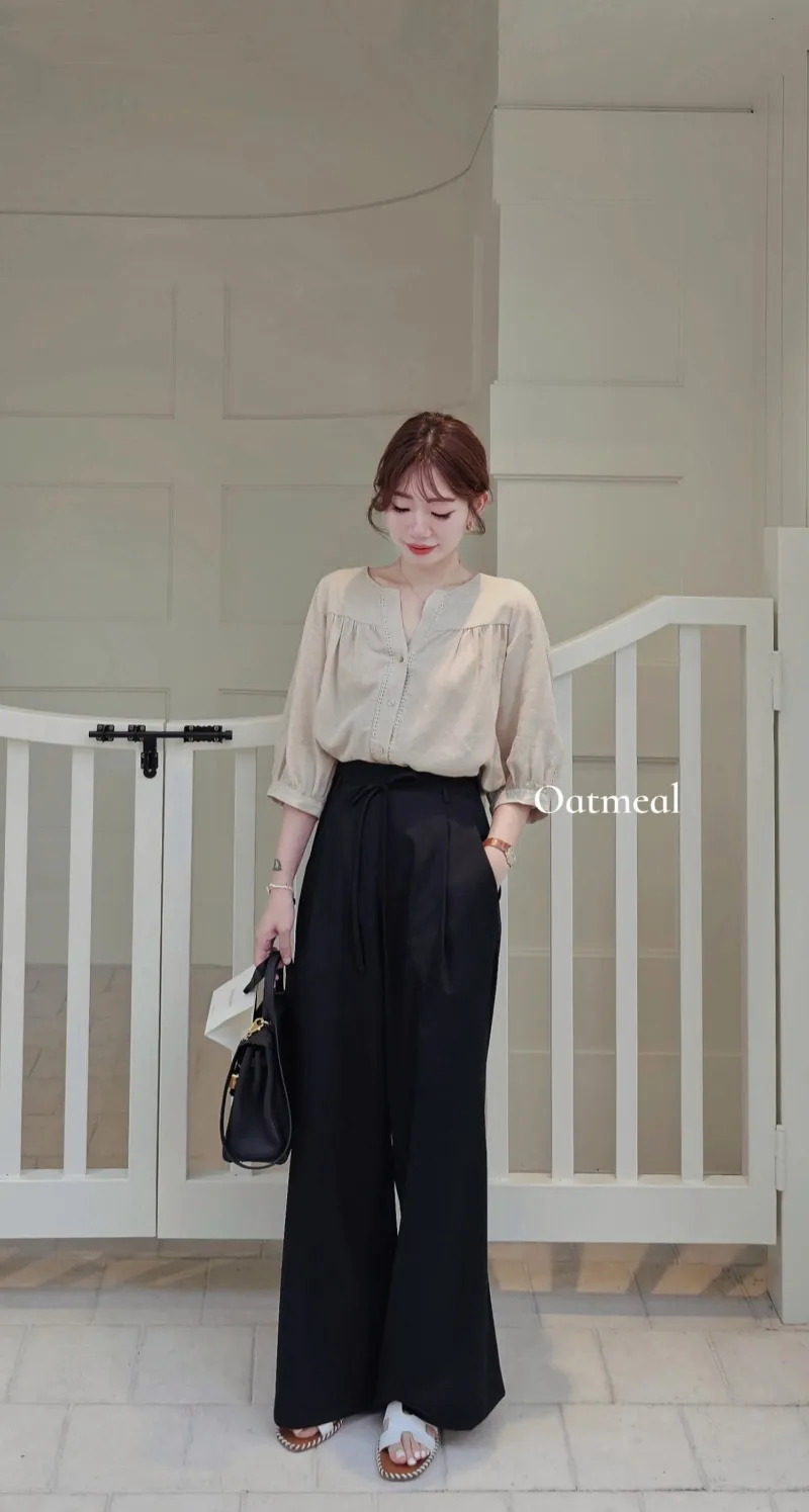 S40好女孩高級質感綁帶落地寬西褲