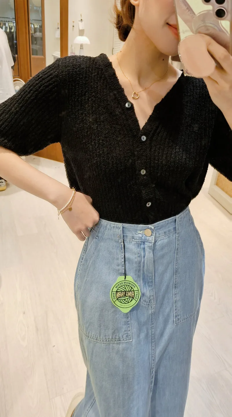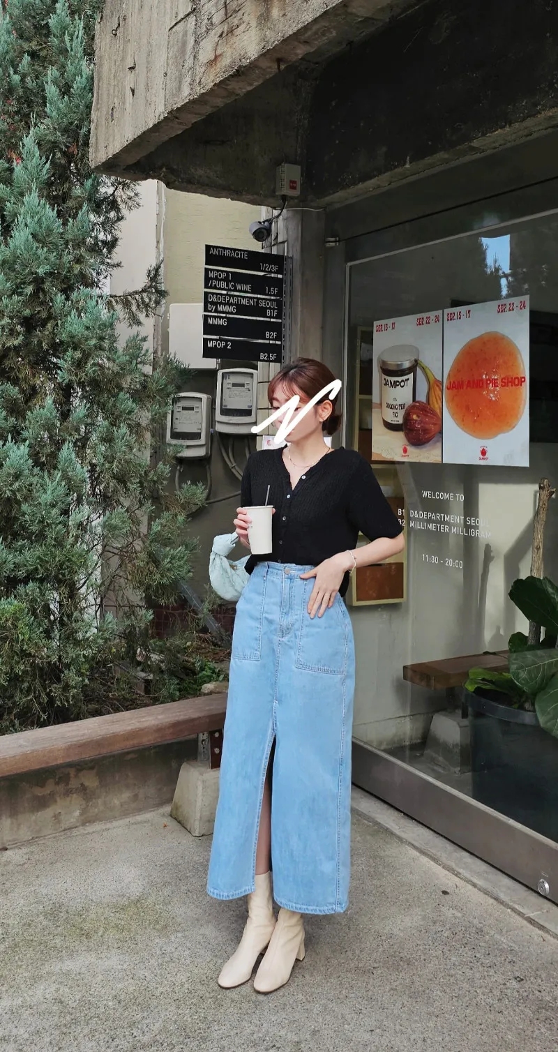 中高腰版型,介於直筒/小A字的裙型,口袋外縫設計~