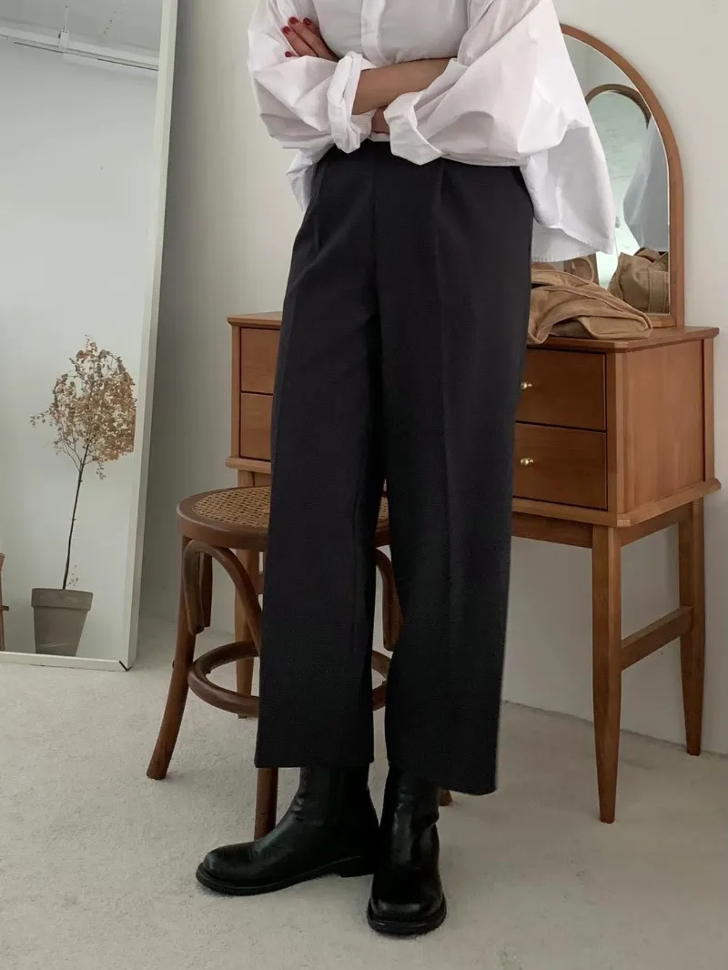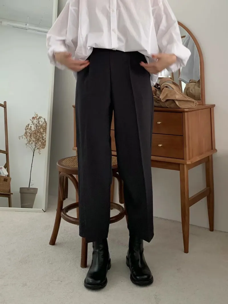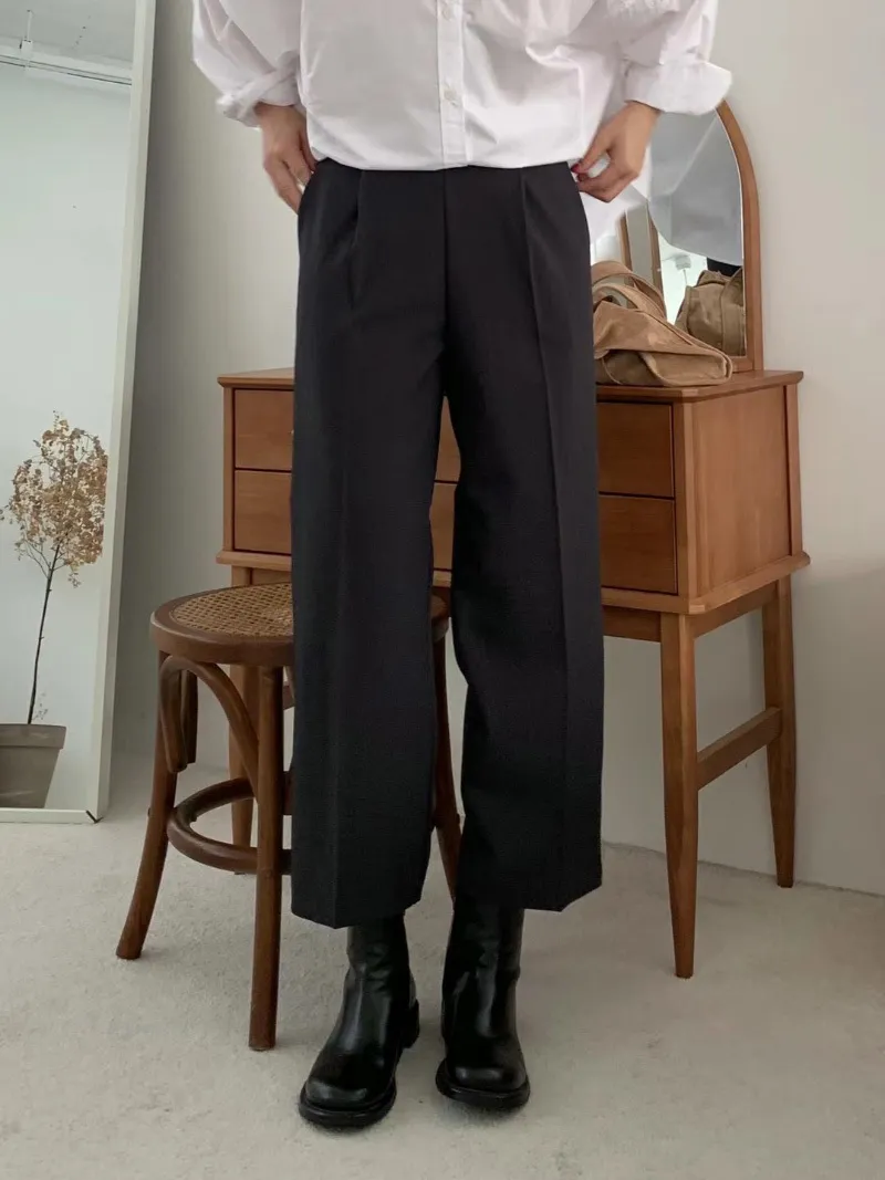 S71高級感色調打褶設計休閒西裝褲