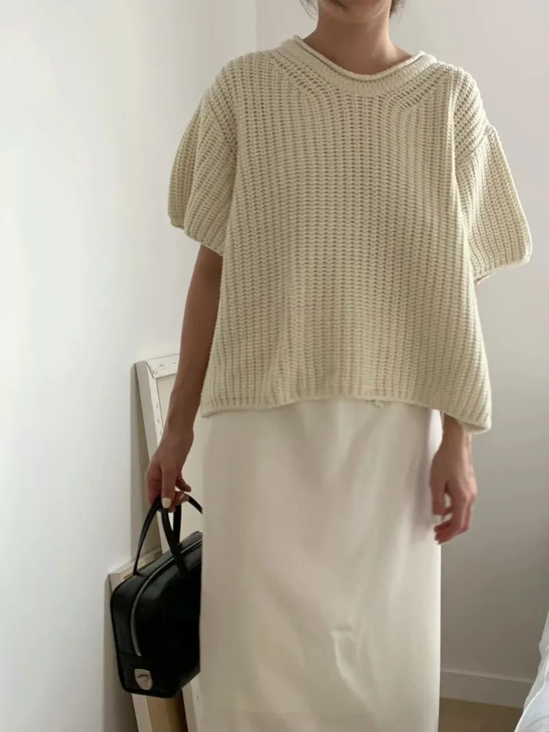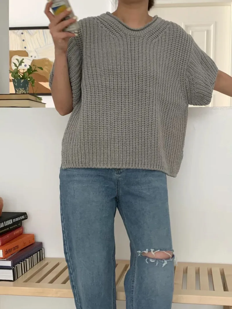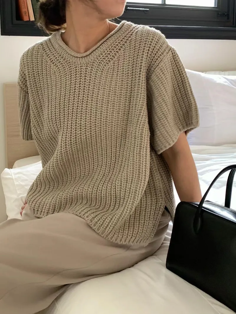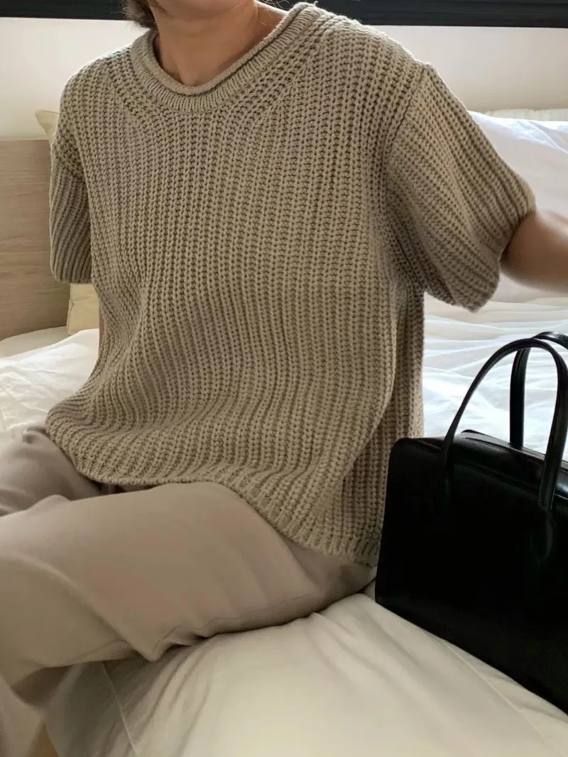 S73可愛歐膩大推~簡約設計粗針織短袖上衣