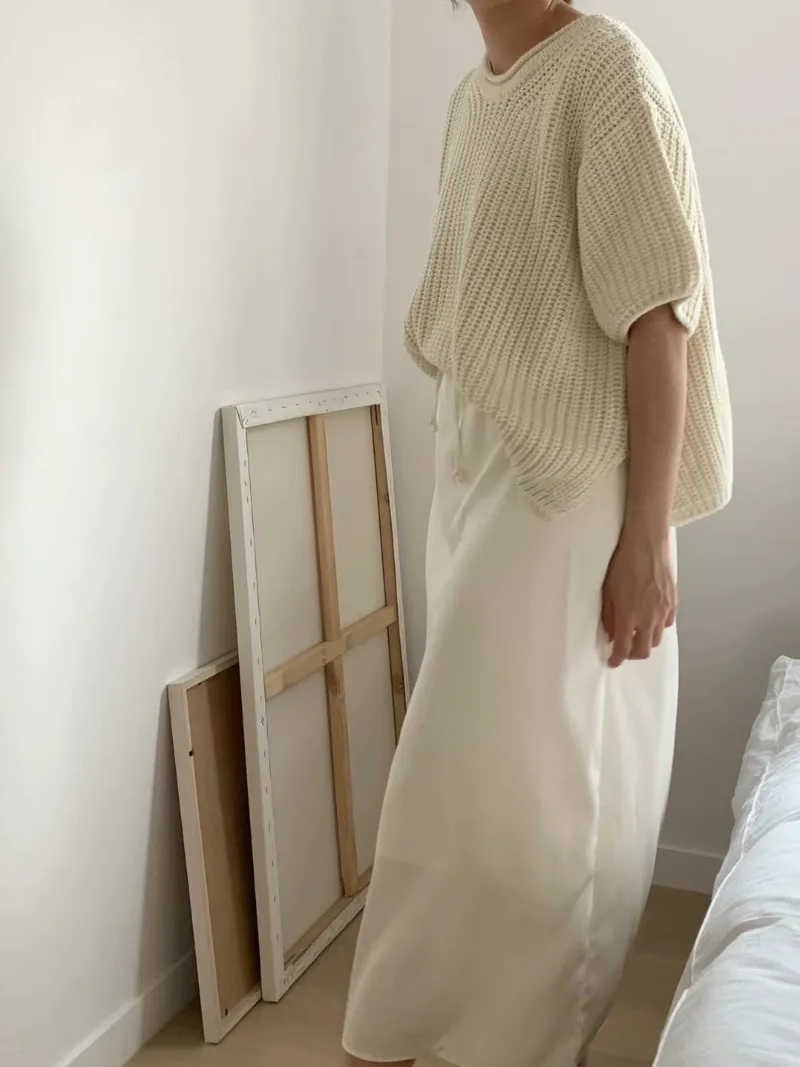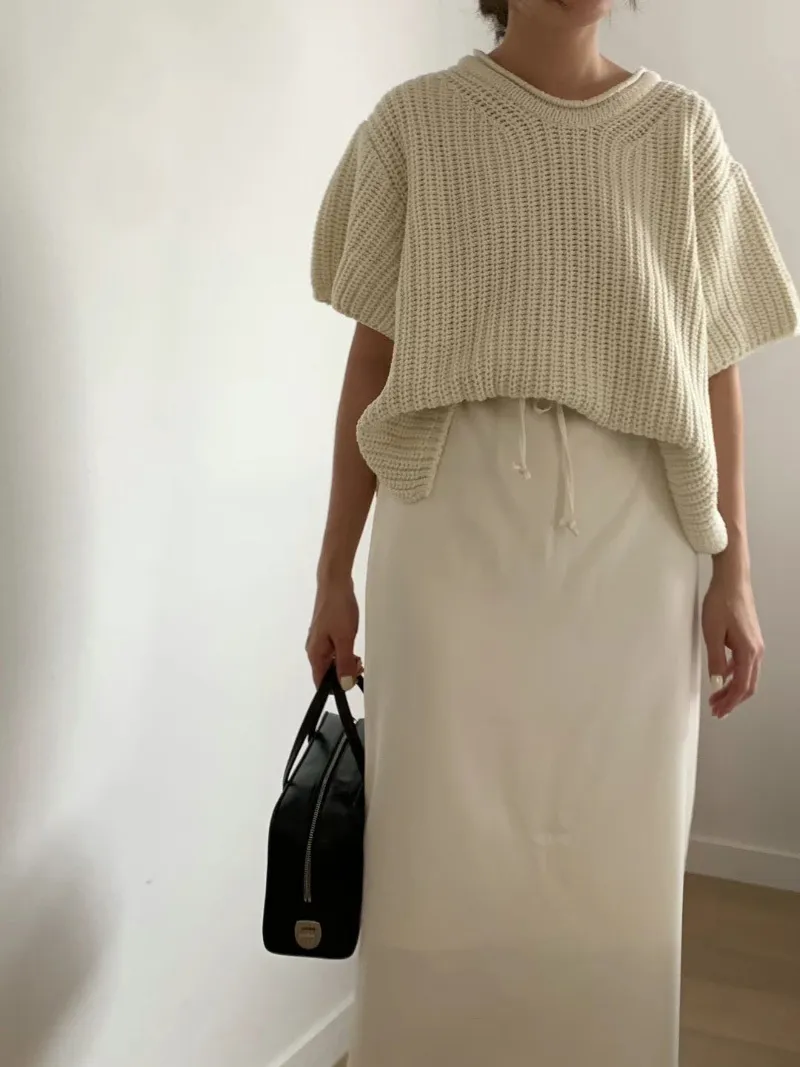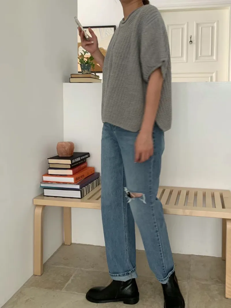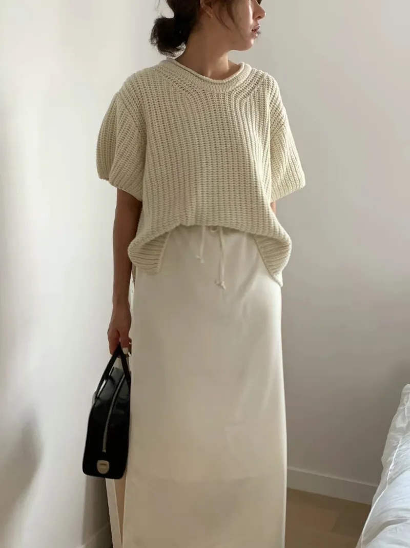S73可愛歐膩大推~簡約設計粗針織短袖上衣