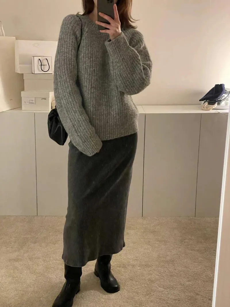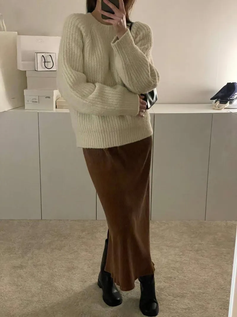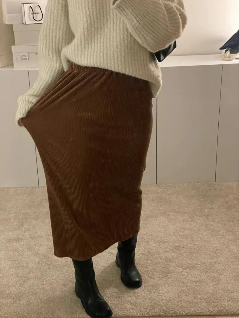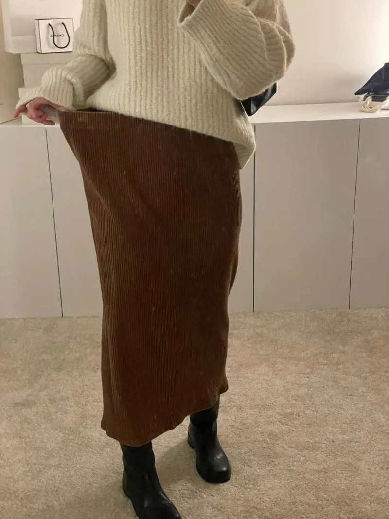 N45選品系列*店長大推~冬季必備粗燈芯絨直紋過膝裙