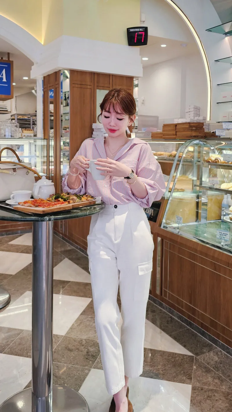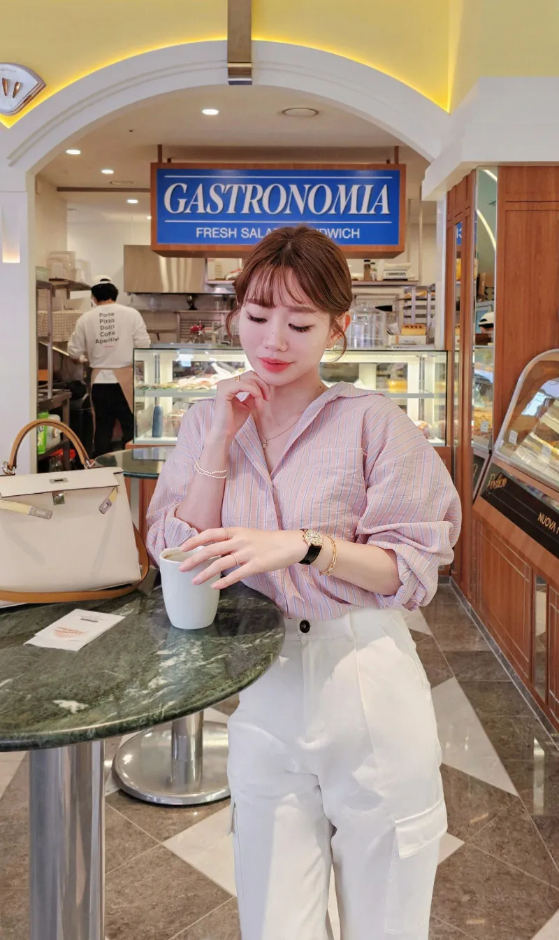 A49歐膩大推一定要收的水彩色系條紋襯衫