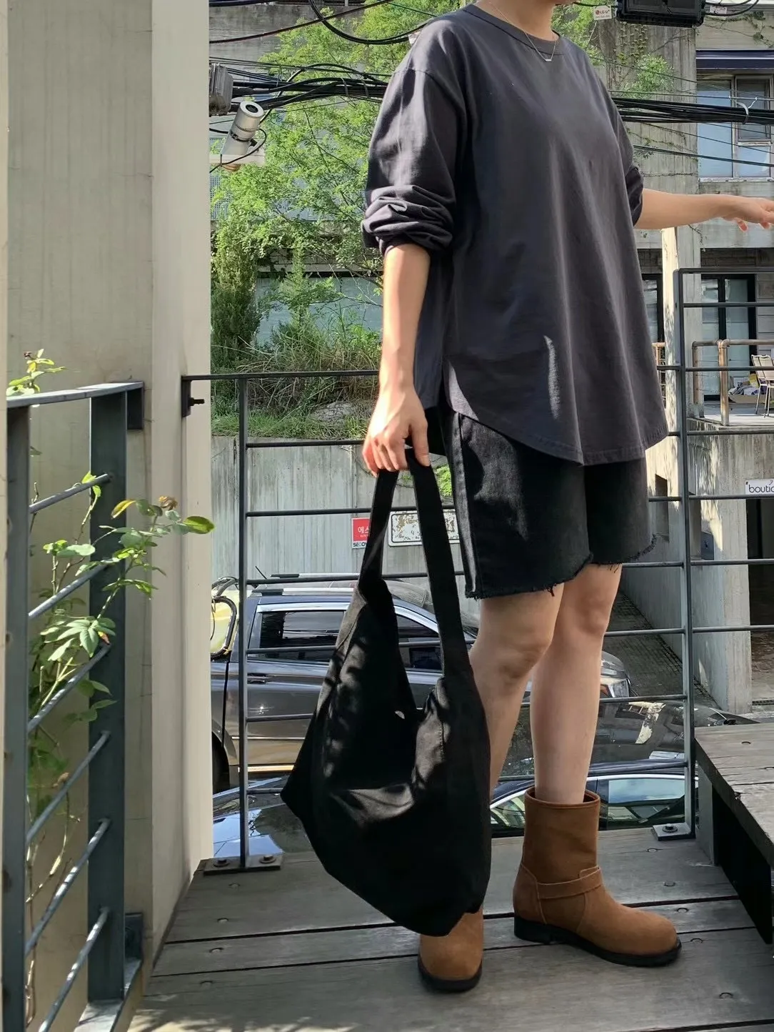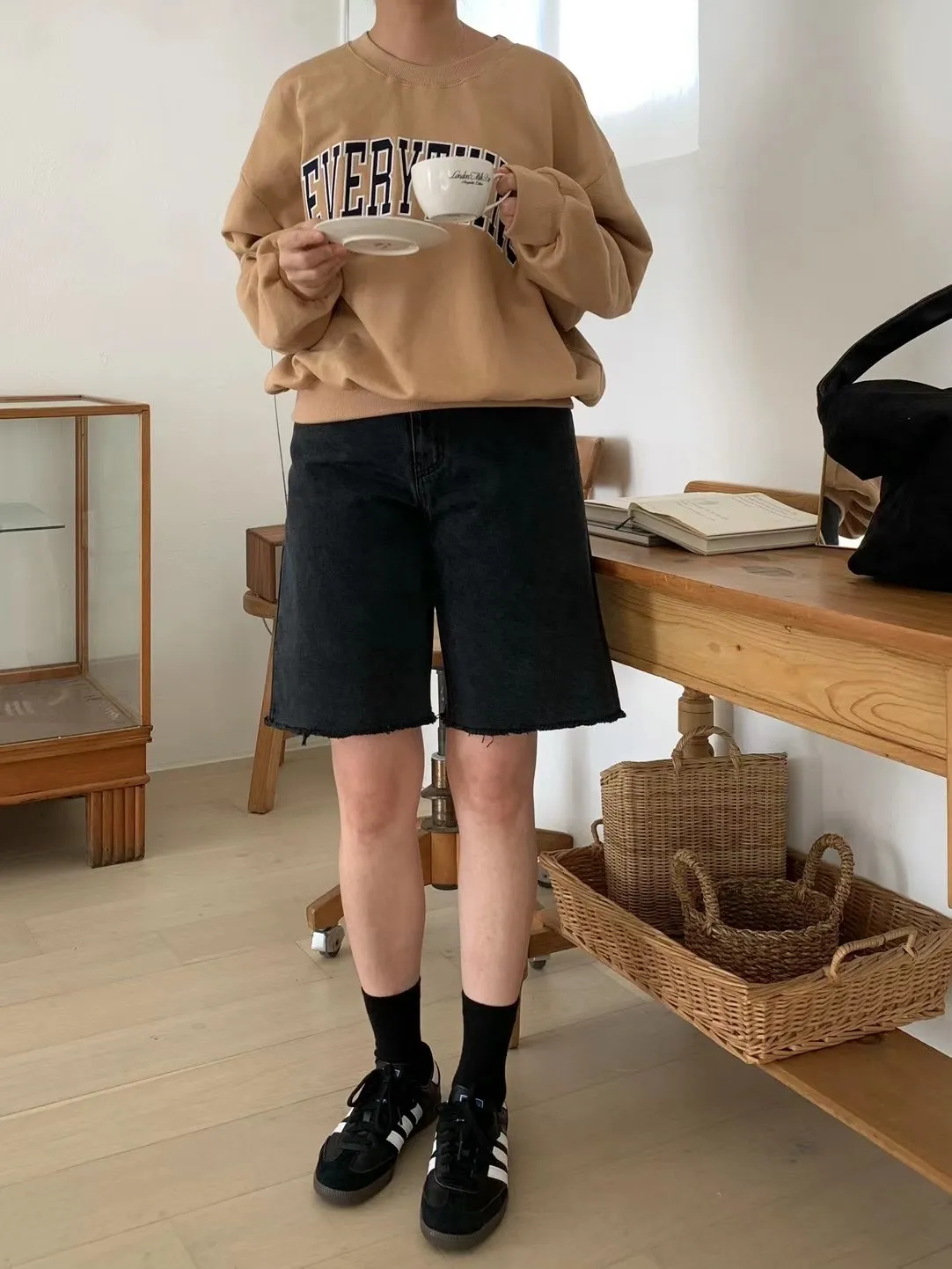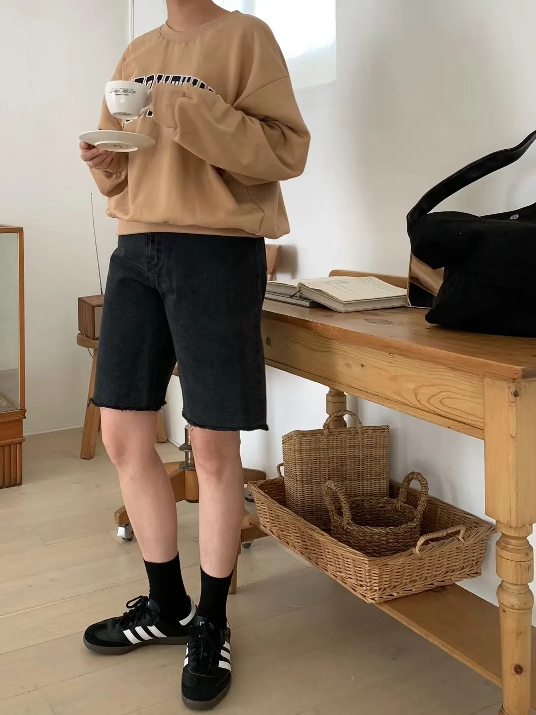 C36 BEST!炭黑色水洗感五分牛仔褲