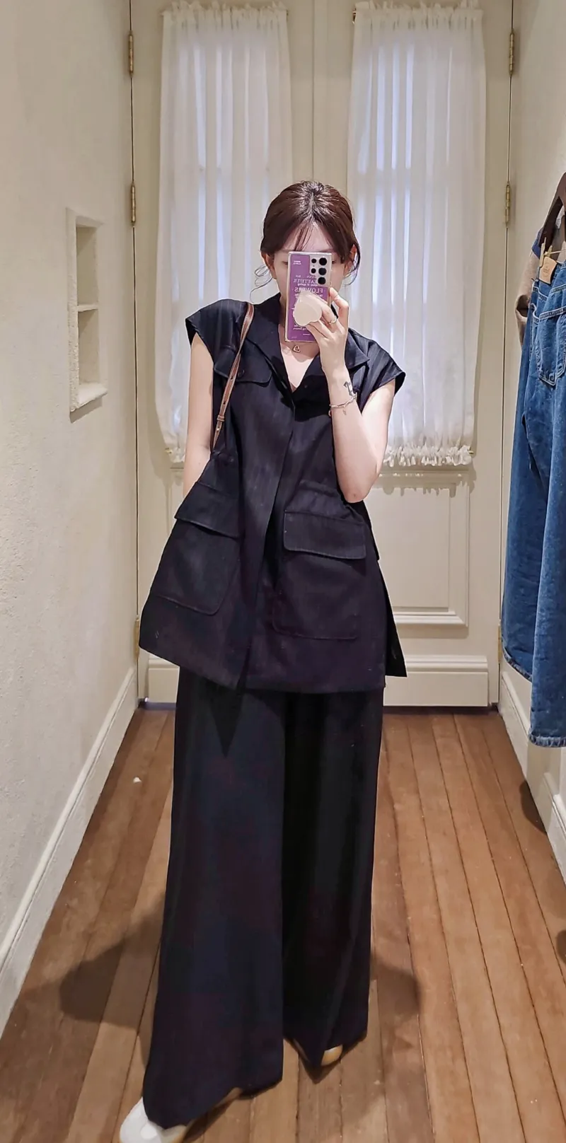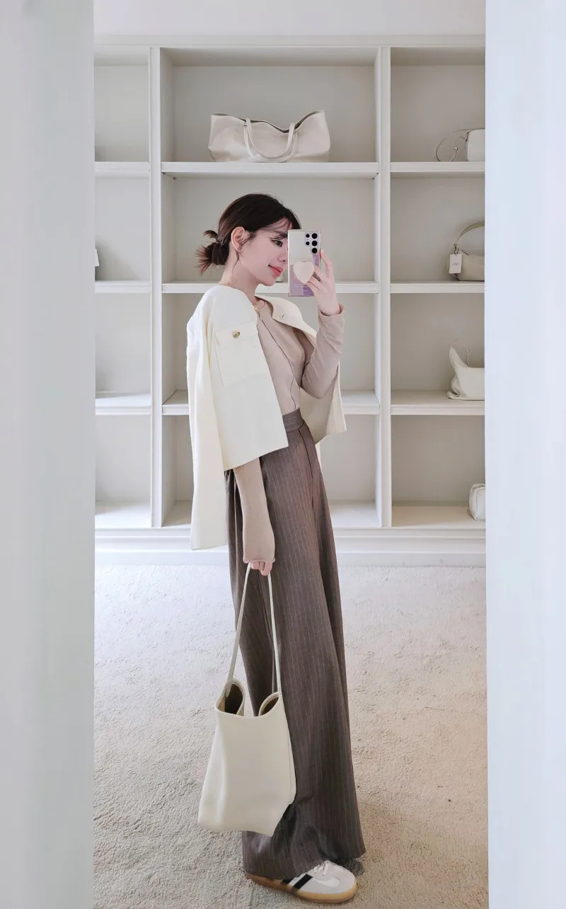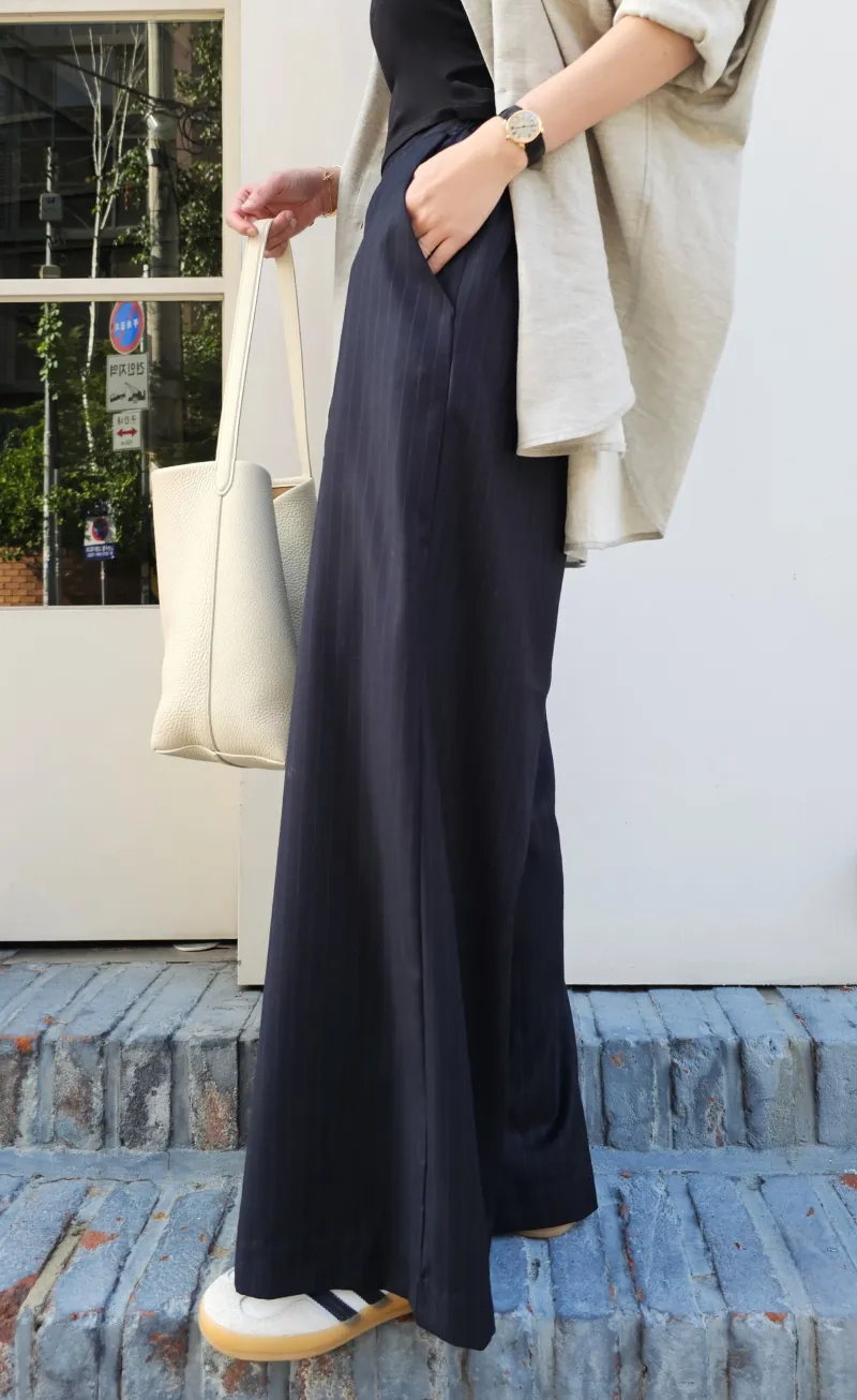 喜歡這種幾乎蓋住鞋面的時髦寬褲管