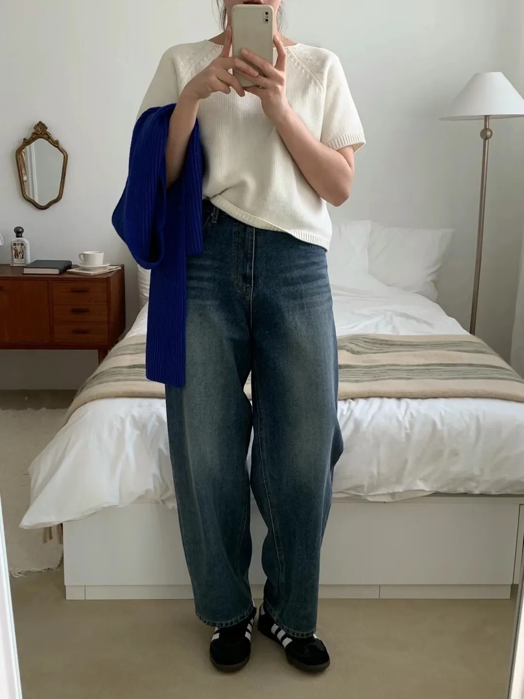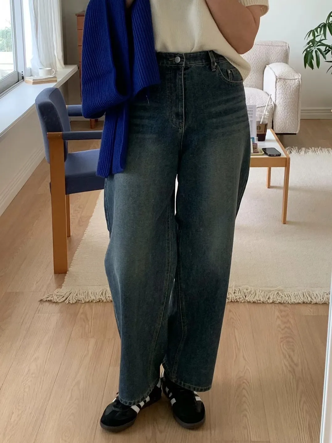 N17推薦必收*超好看時髦水洗鬆弛感牛仔寬褲