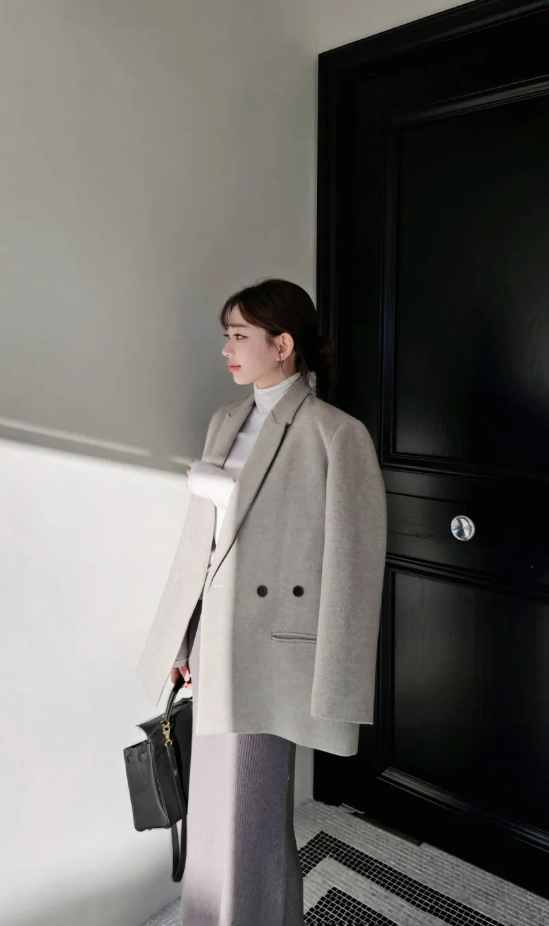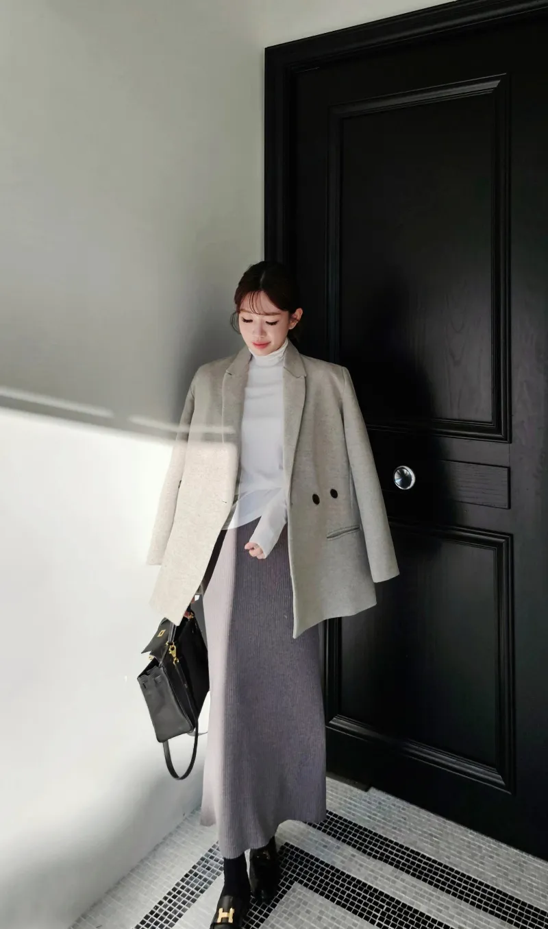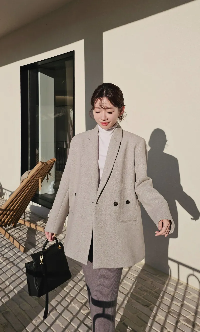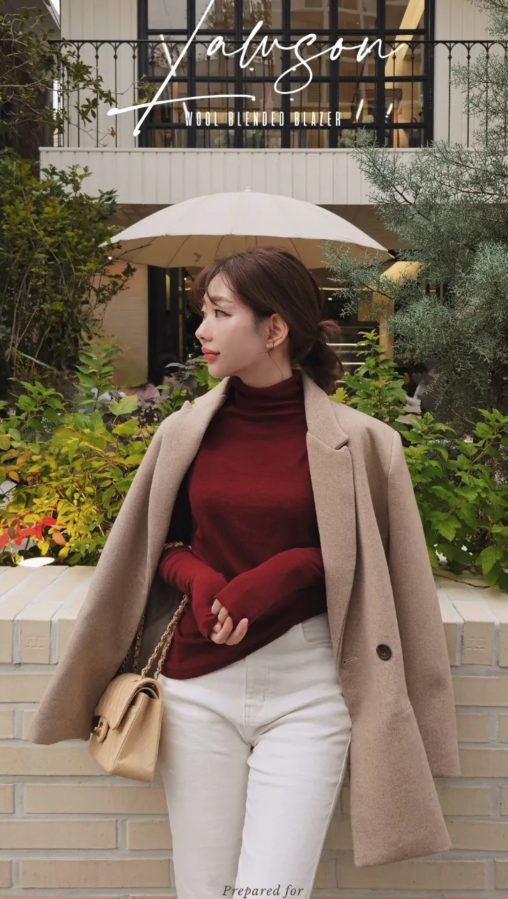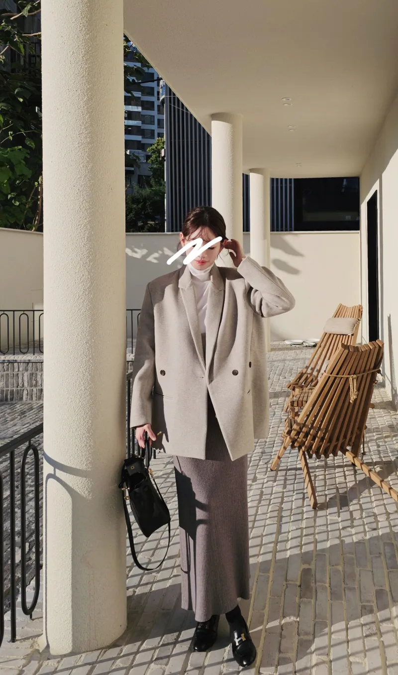 高級的魚骨織紋,混羊毛面料 觸感柔軟不刺膚