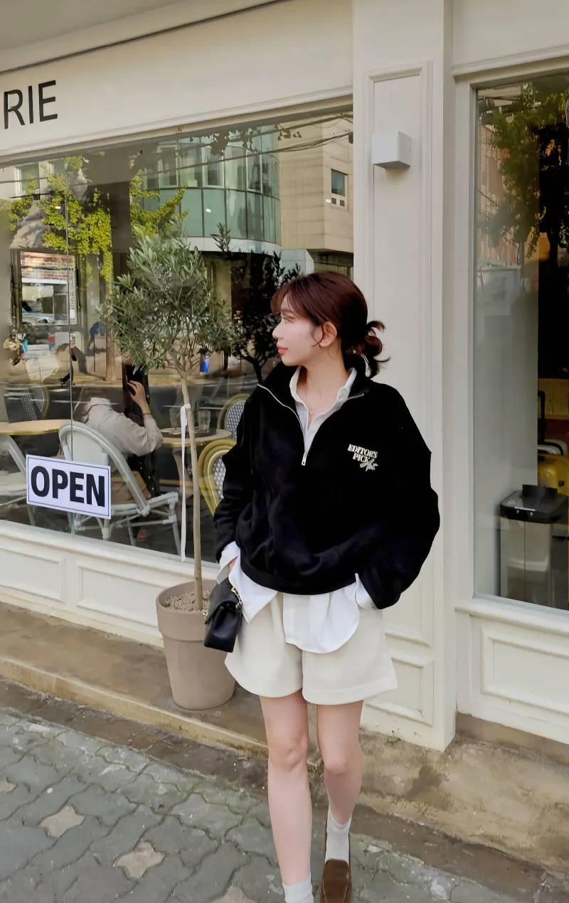 胸前有字母質感印花,搭配霧面金屬拉鍊~