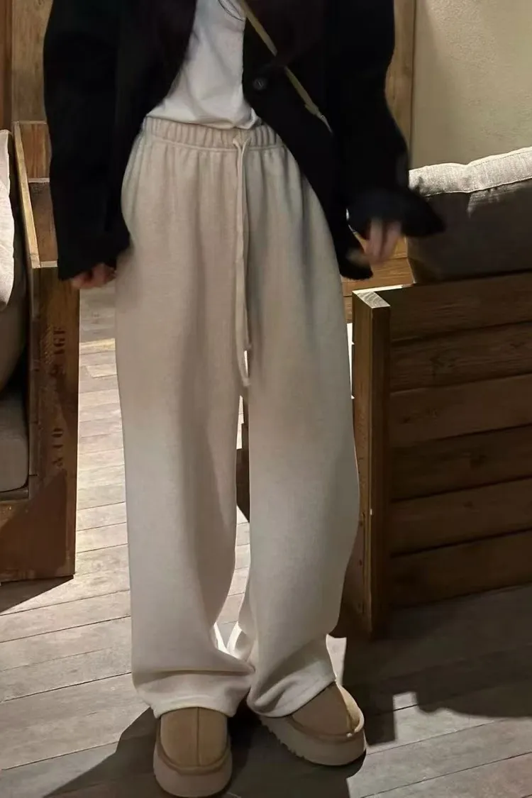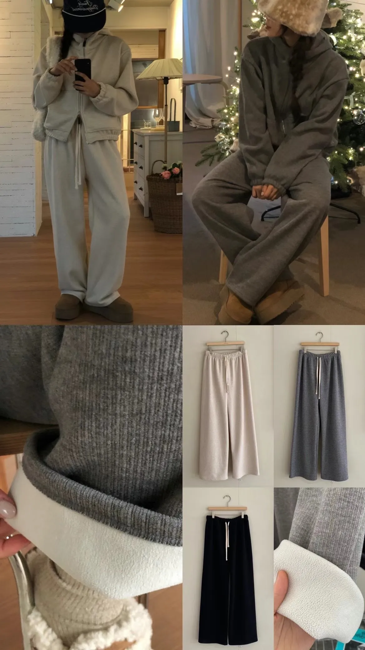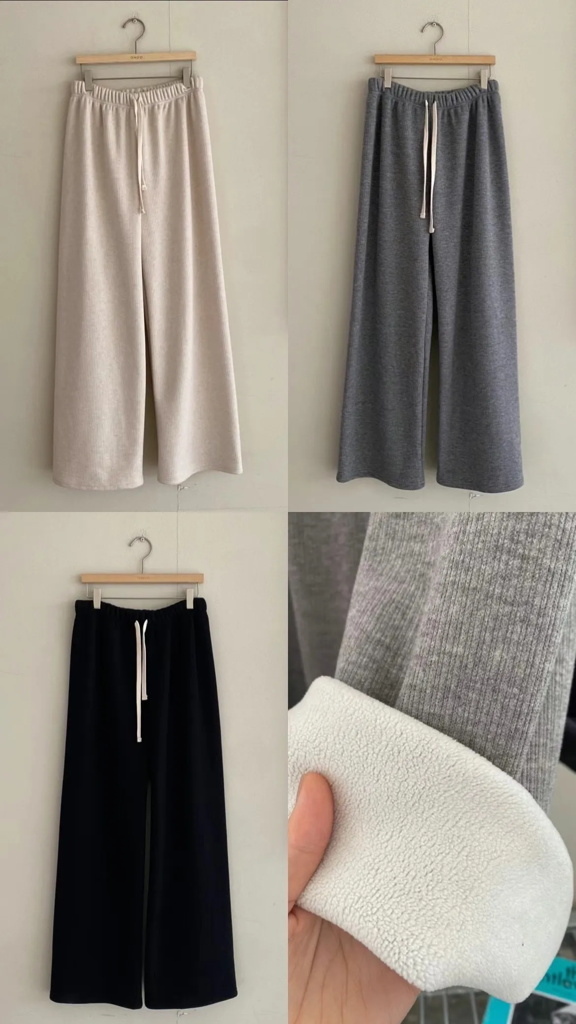 N44店長推薦!厚款溫暖毛毛坑條綁帶休閒褲