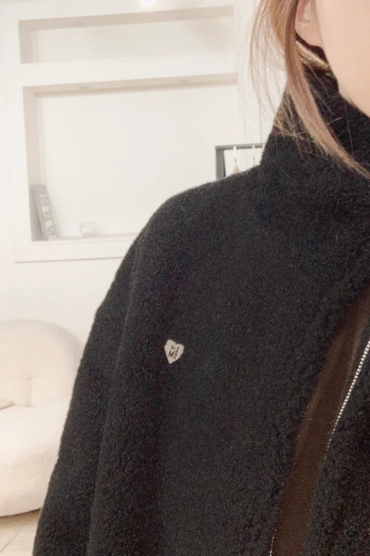 N48銀色愛心鐵牌超暖毛毛大衣夾克外套