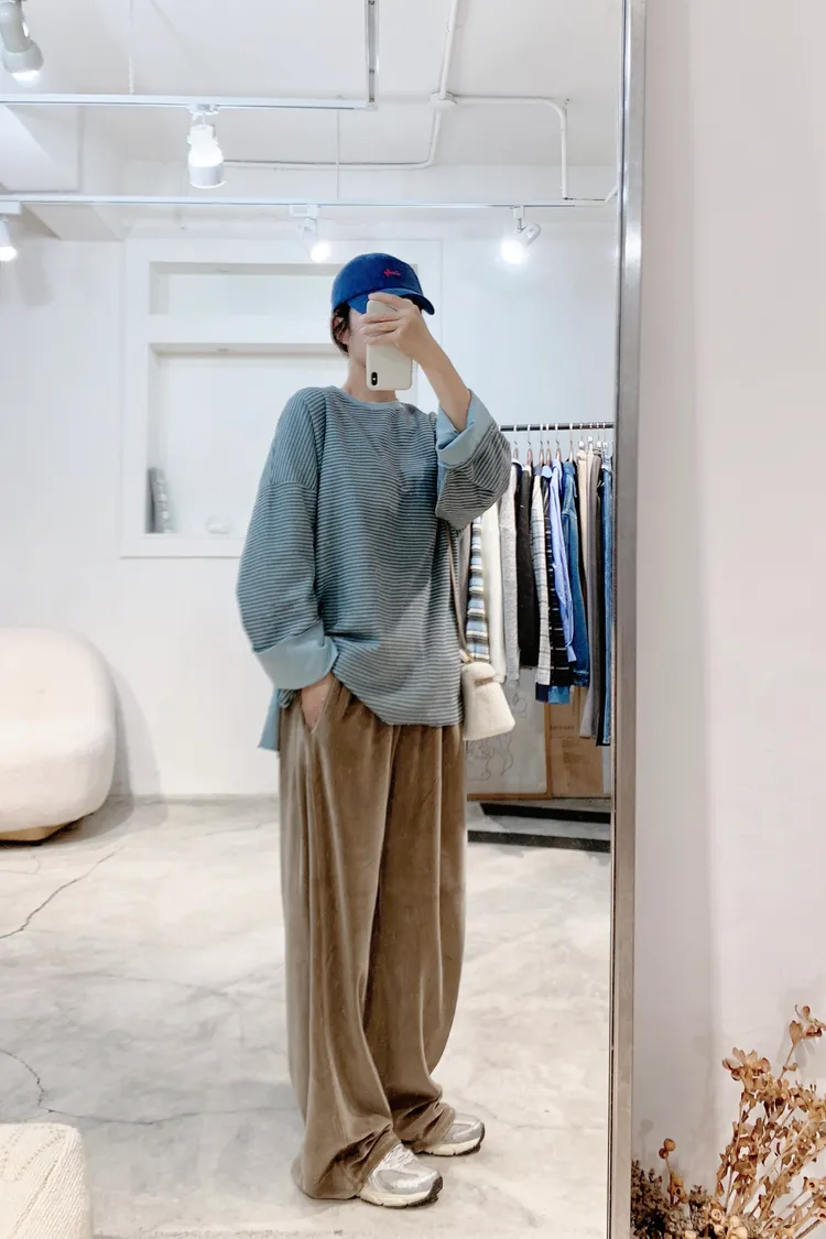 D02必買!超顯瘦側邊車線大長腿天鵝絨質感休閒褲