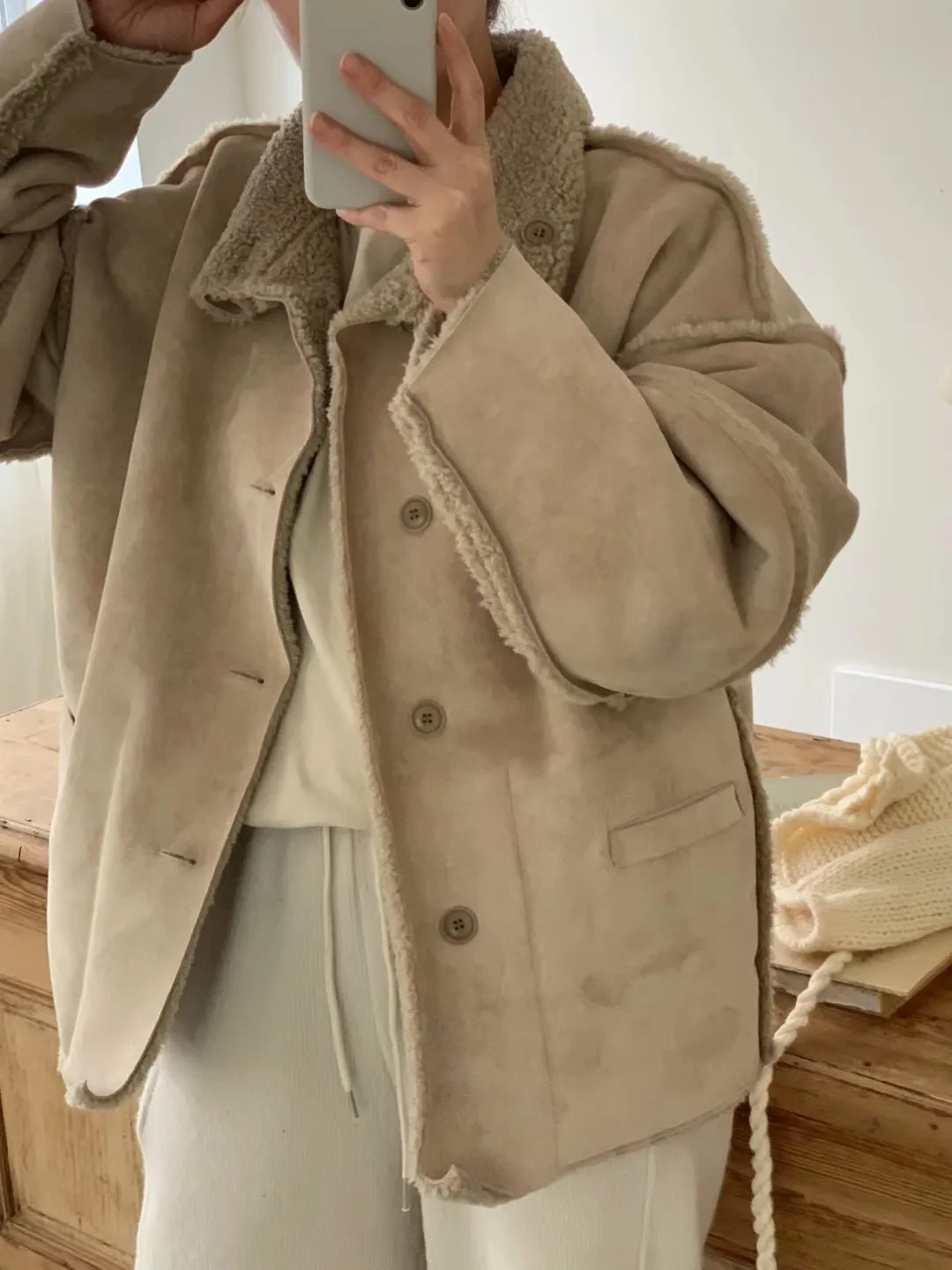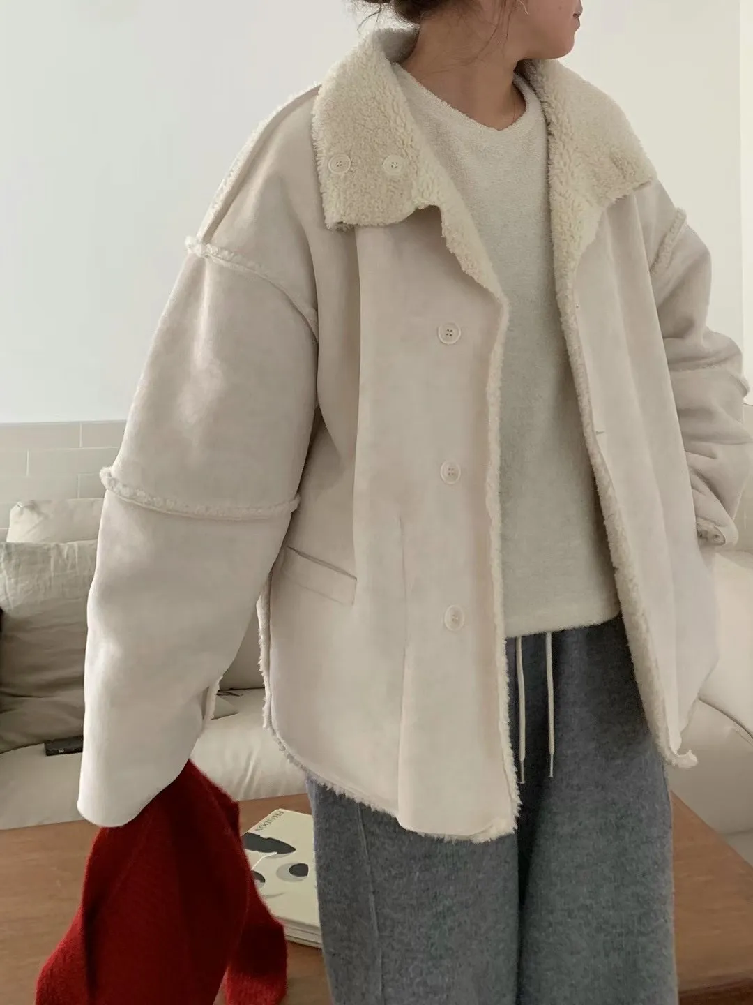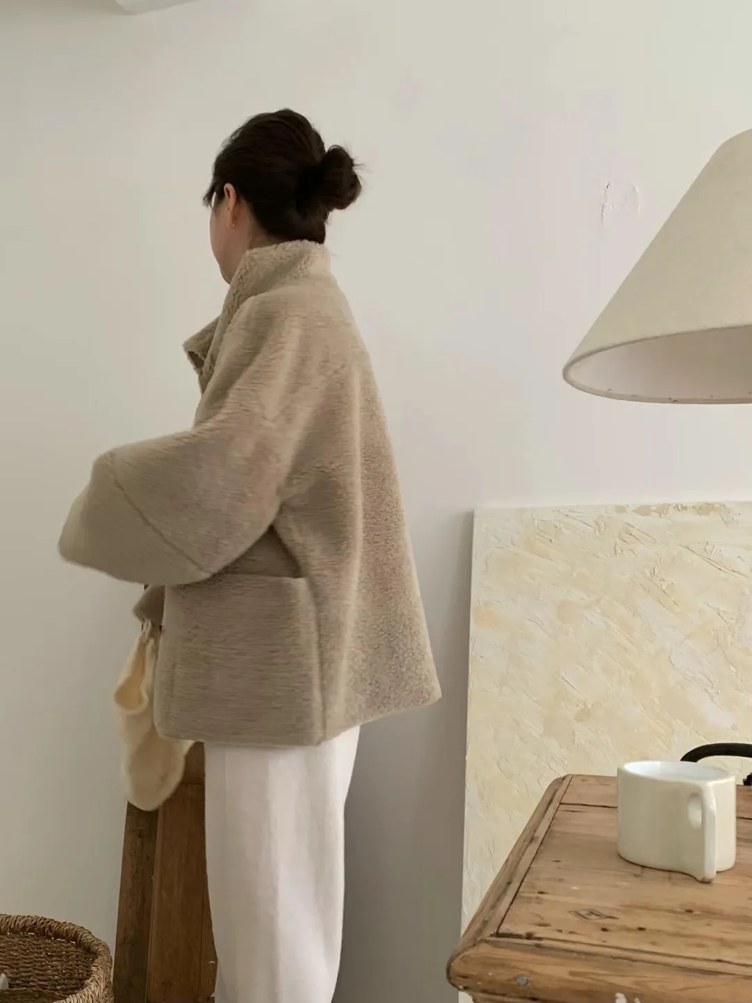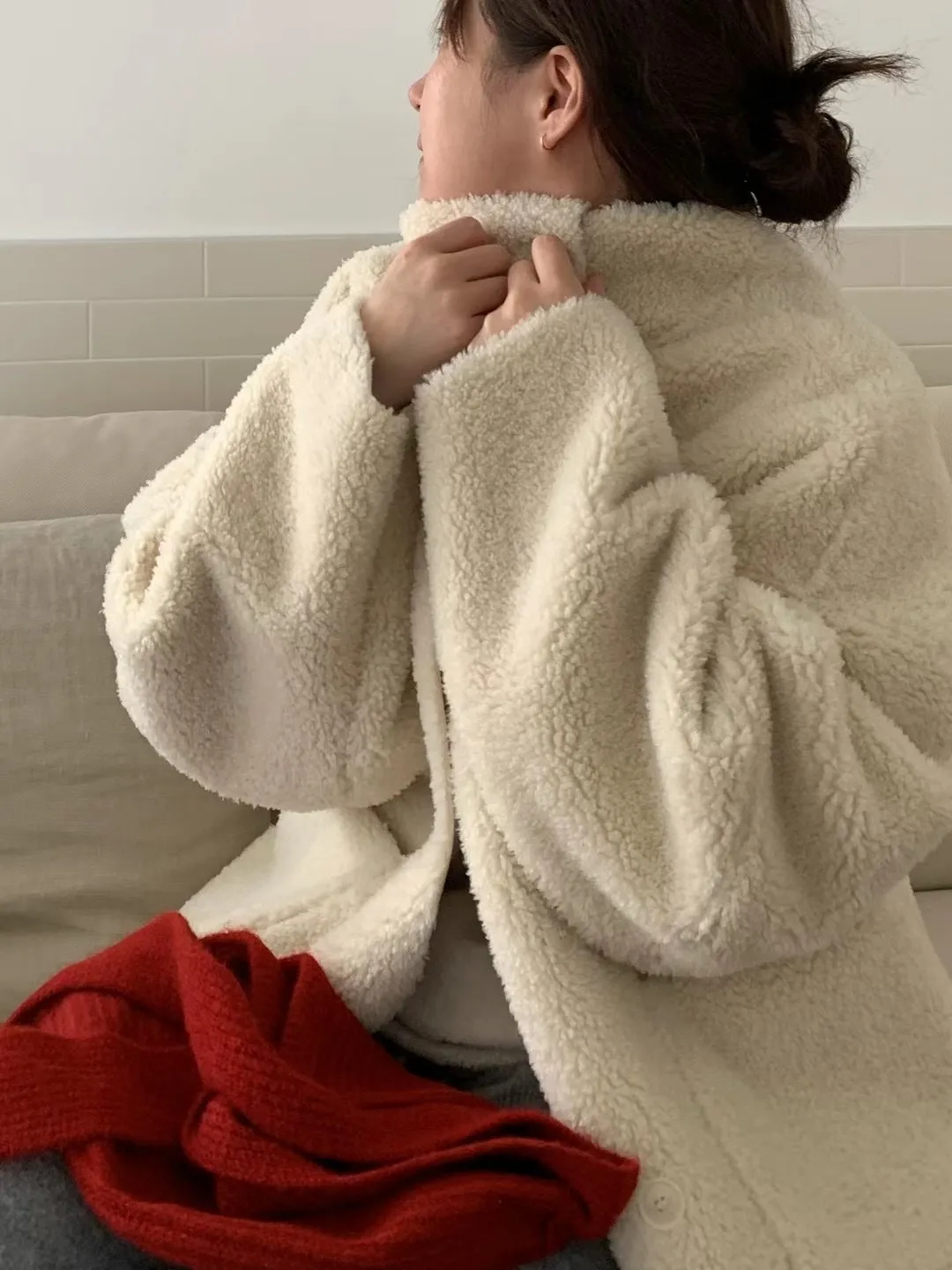D04歐膩大推!冬季超可愛溫暖毛毛二面穿大衣外套