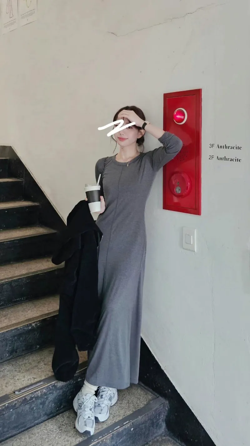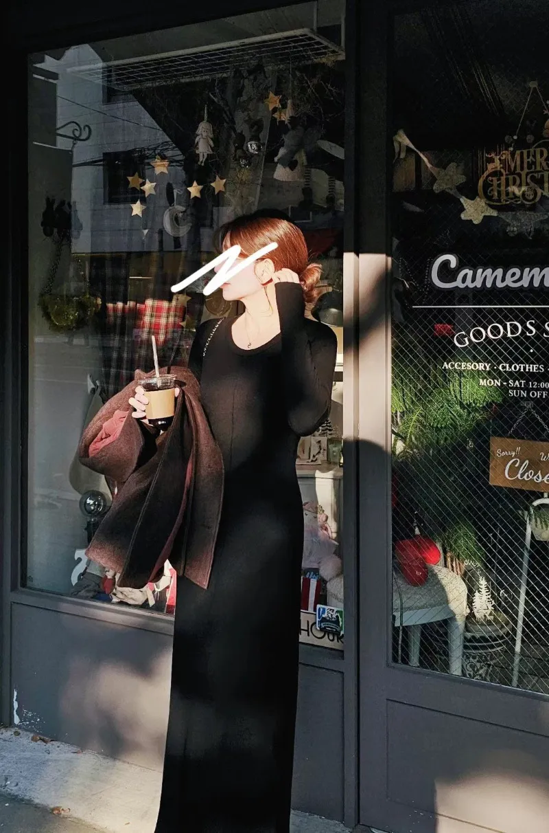 單穿或是外罩毛衣當打底洋裝都好看🖤