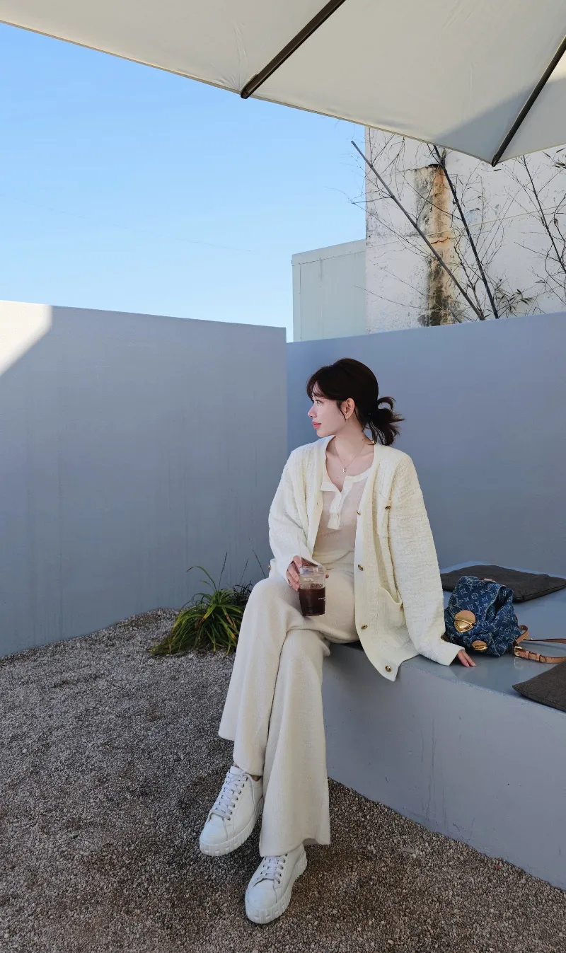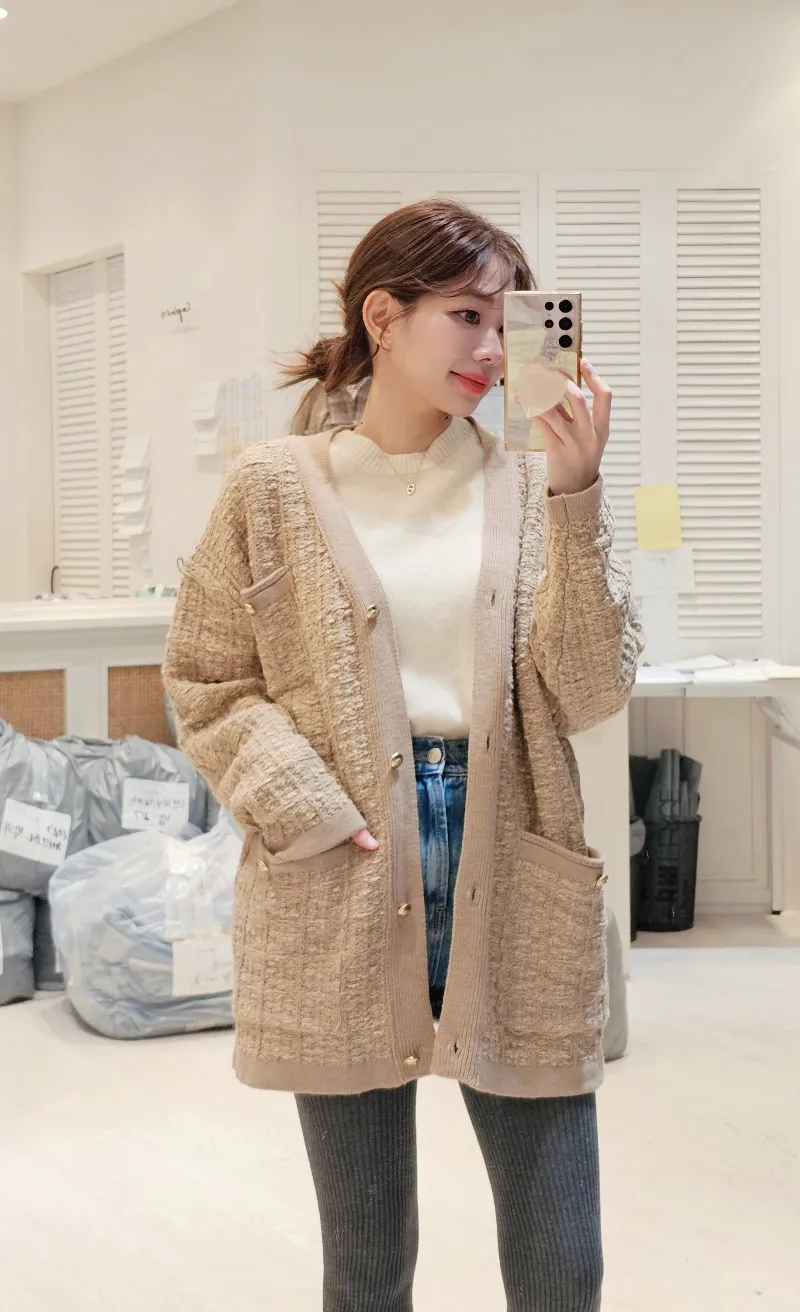 高級小貴氣的一款針織開衫,小香風的軟呢立體織紋非常美