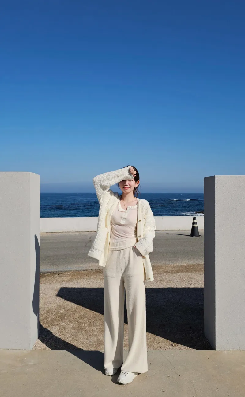 中等厚度針織外套,不會沉重,材質親膚柔軟不會刺癢
