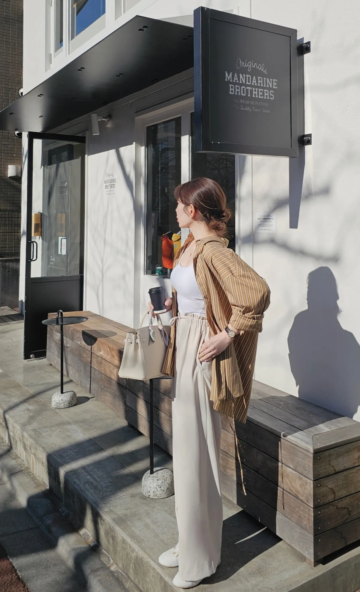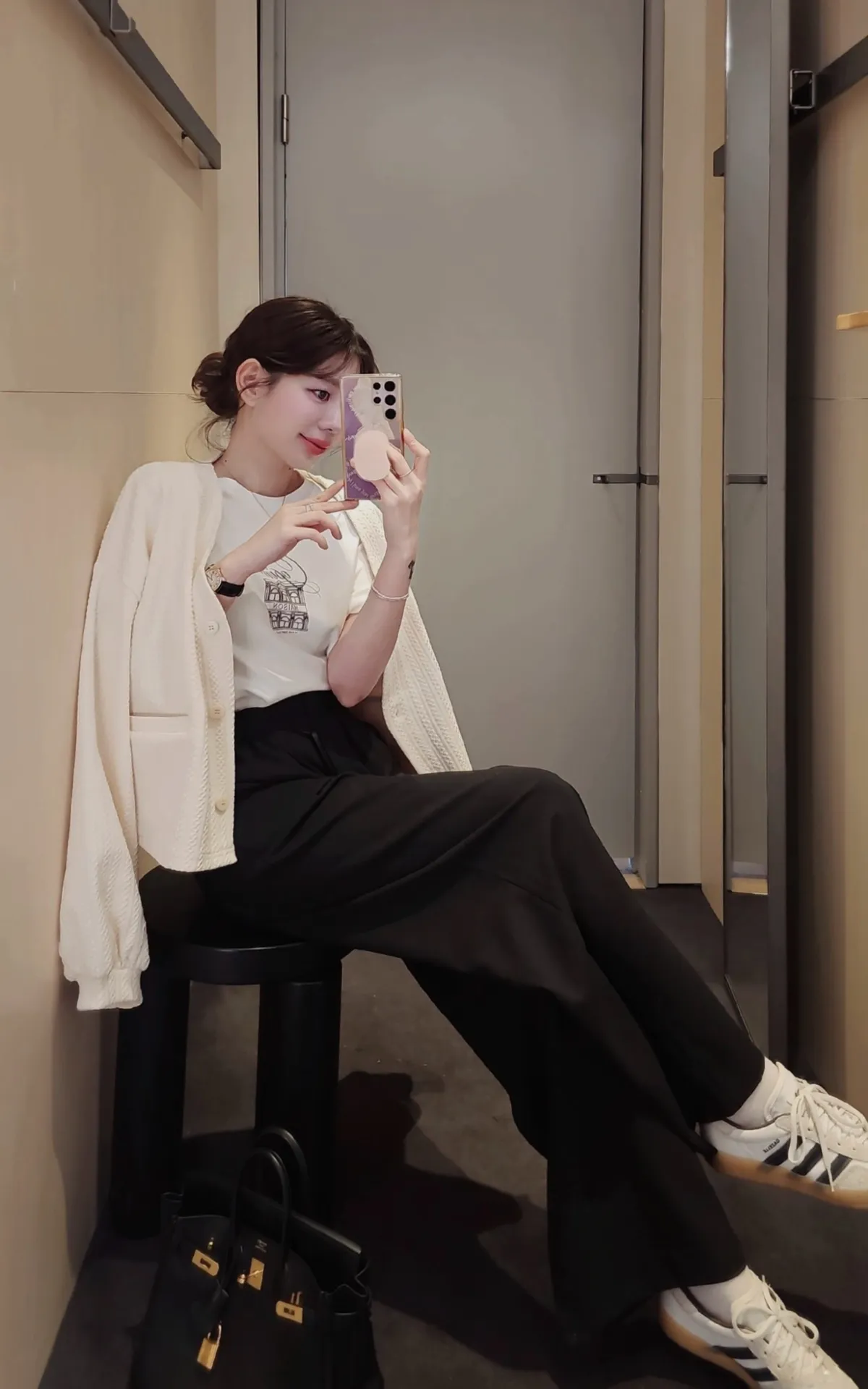 淡色系搭配柔軟滑順的雪紡西褲面料