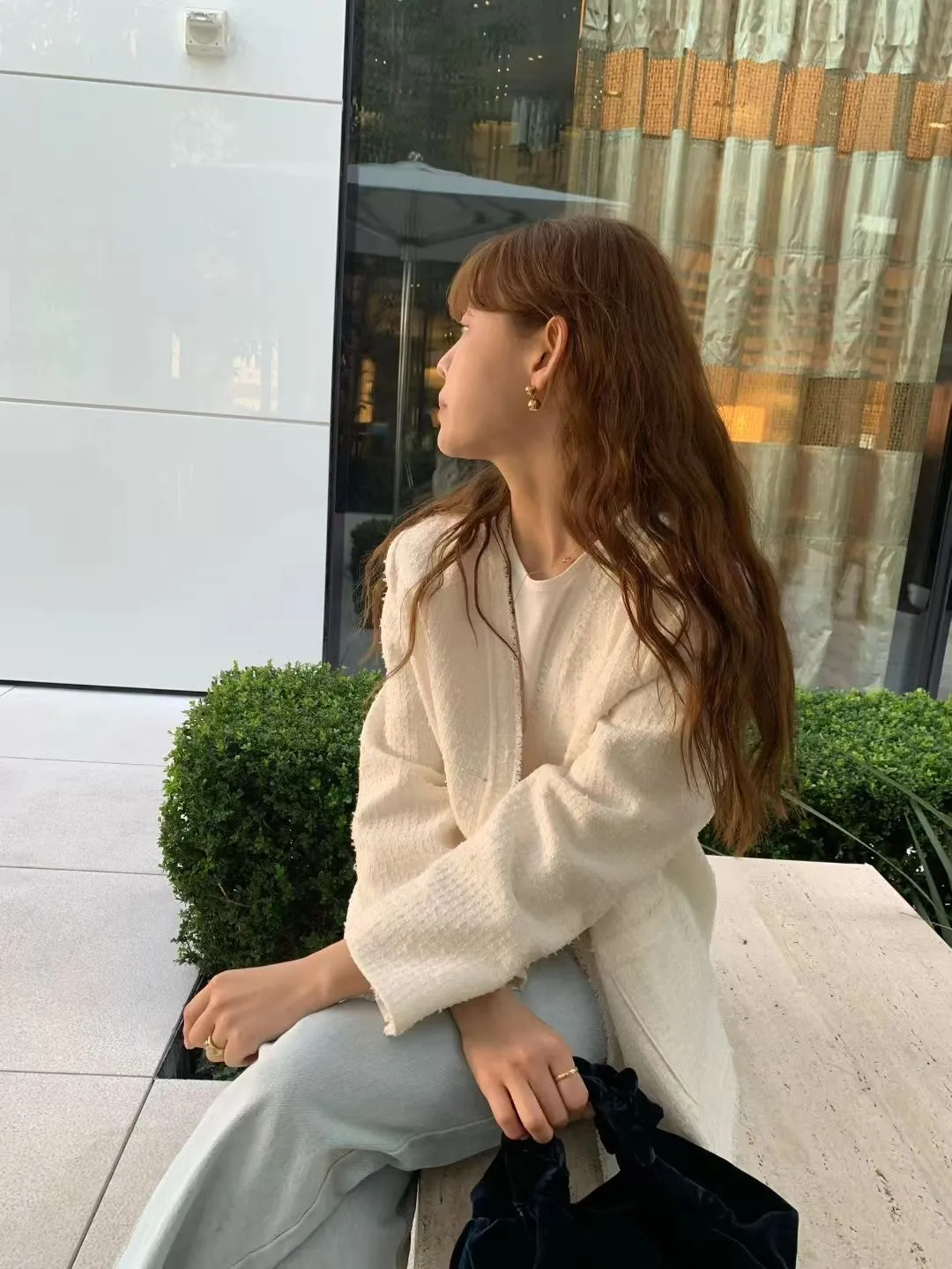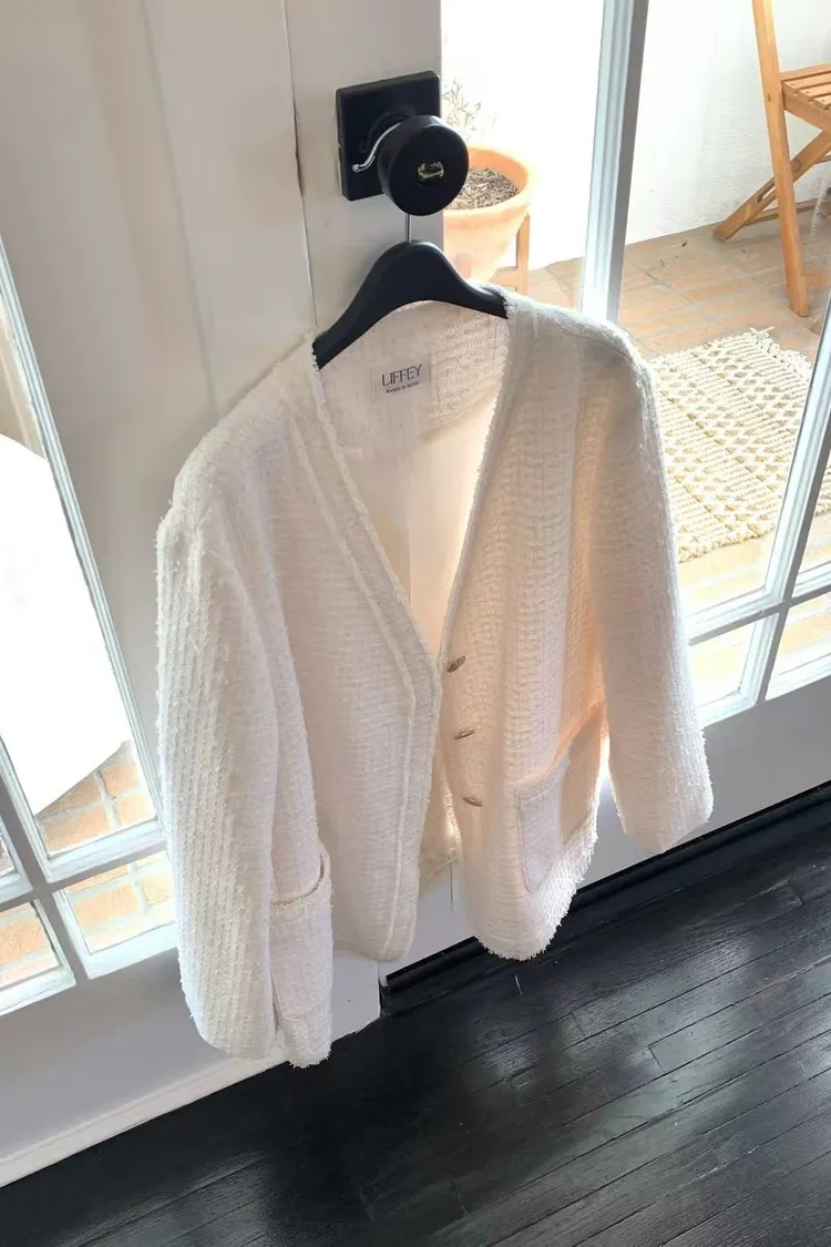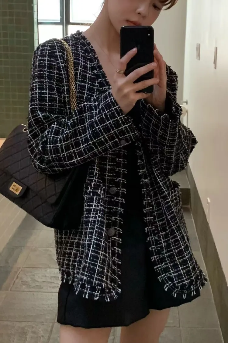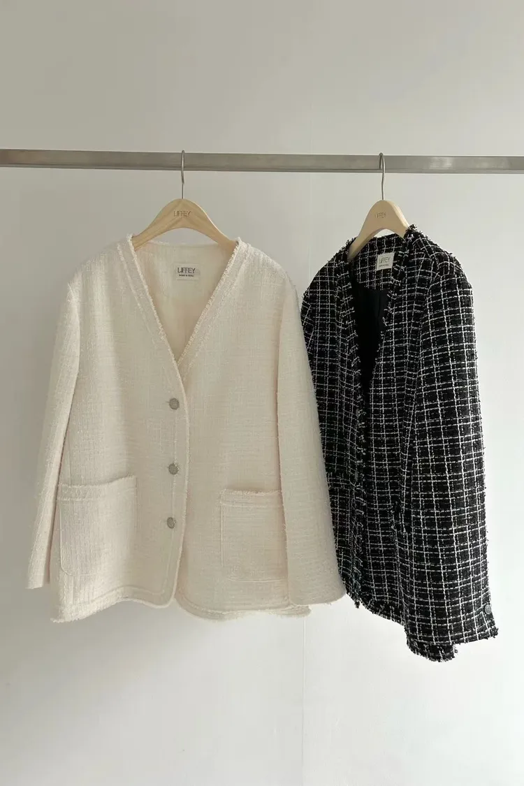 F01精緻小香軟呢紋長外套(牛奶白/經典黑)*特價*只有上架前三天
