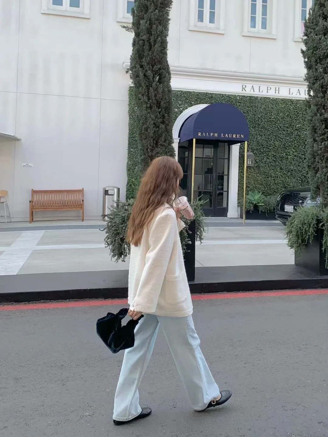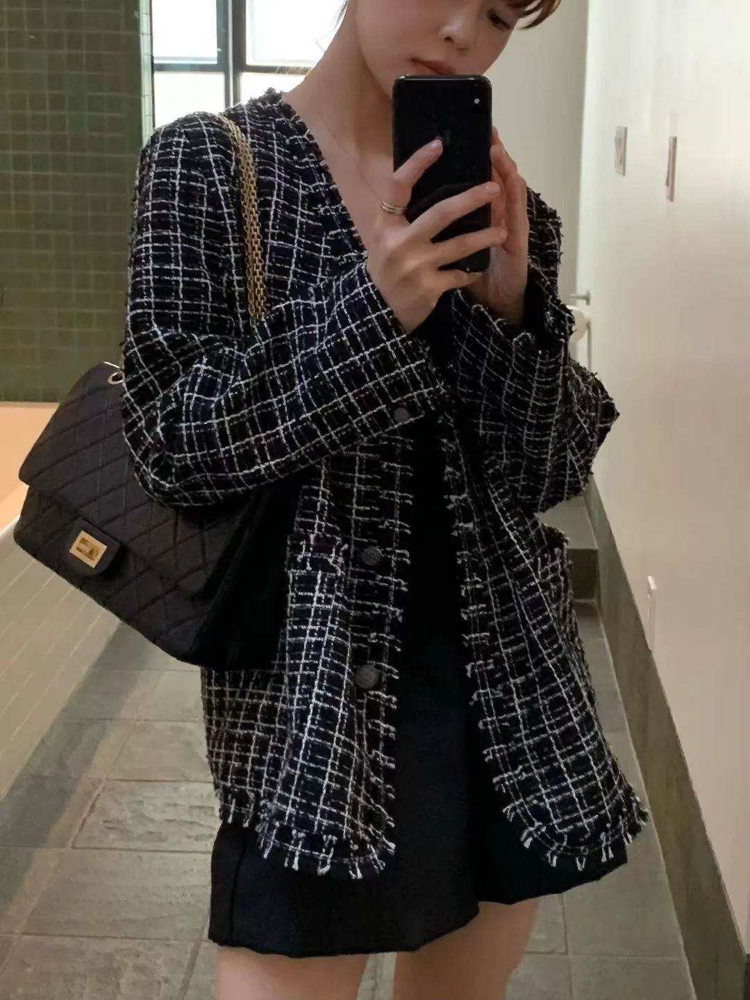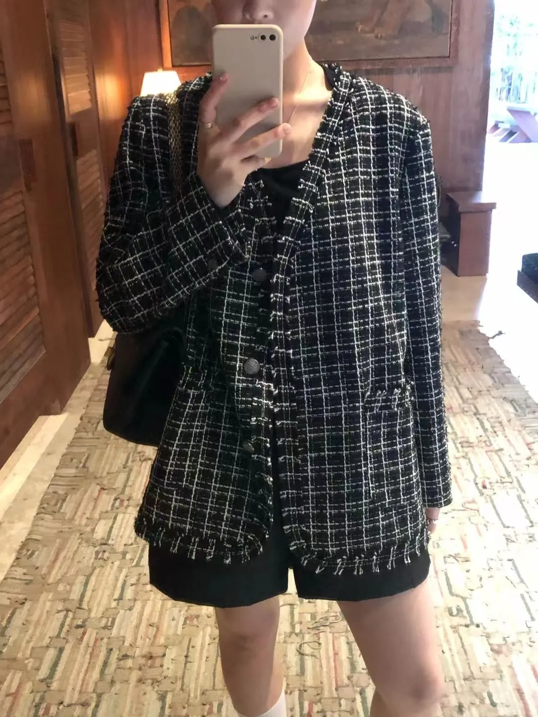 F01精緻小香軟呢紋長外套(牛奶白/經典黑)*特價*只有上架前三天