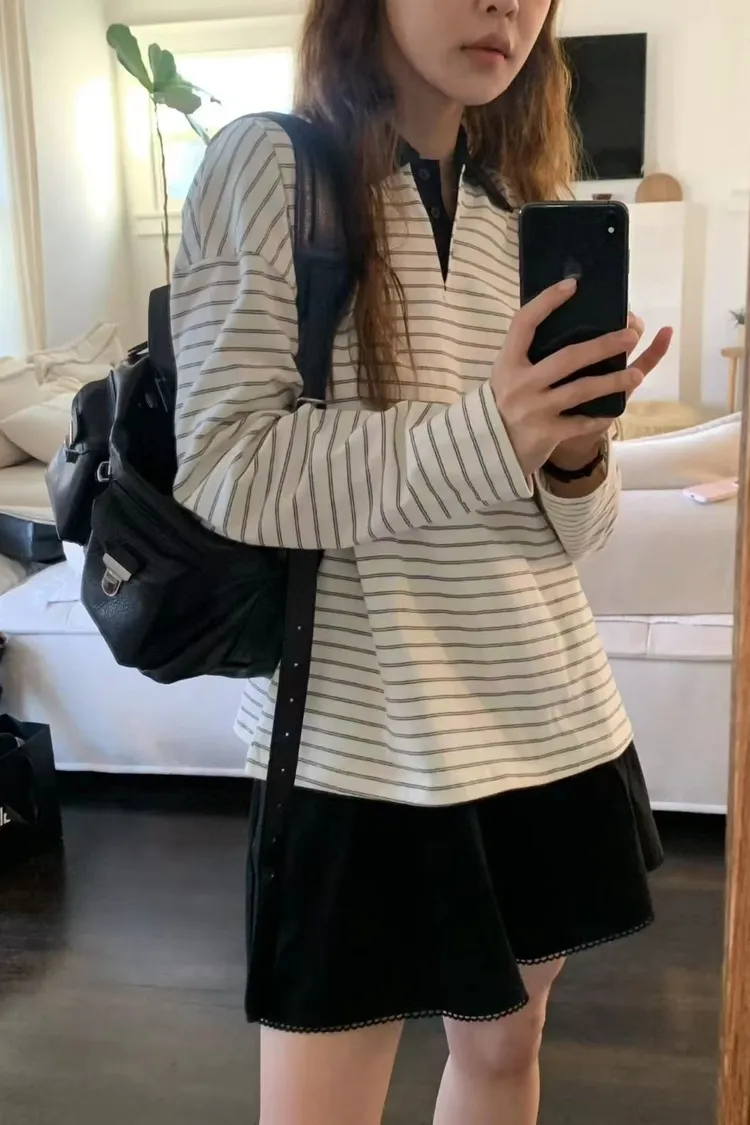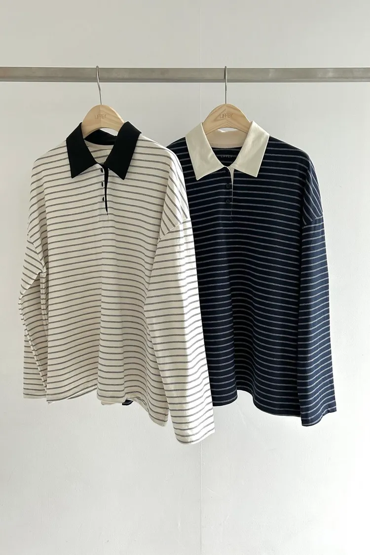F10人氣推薦!條紋polo領配色上衣