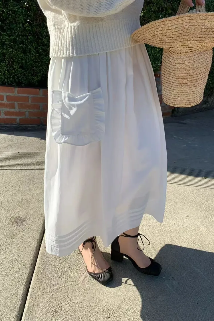F21甜美女孩必收的荷葉口袋拼接長裙