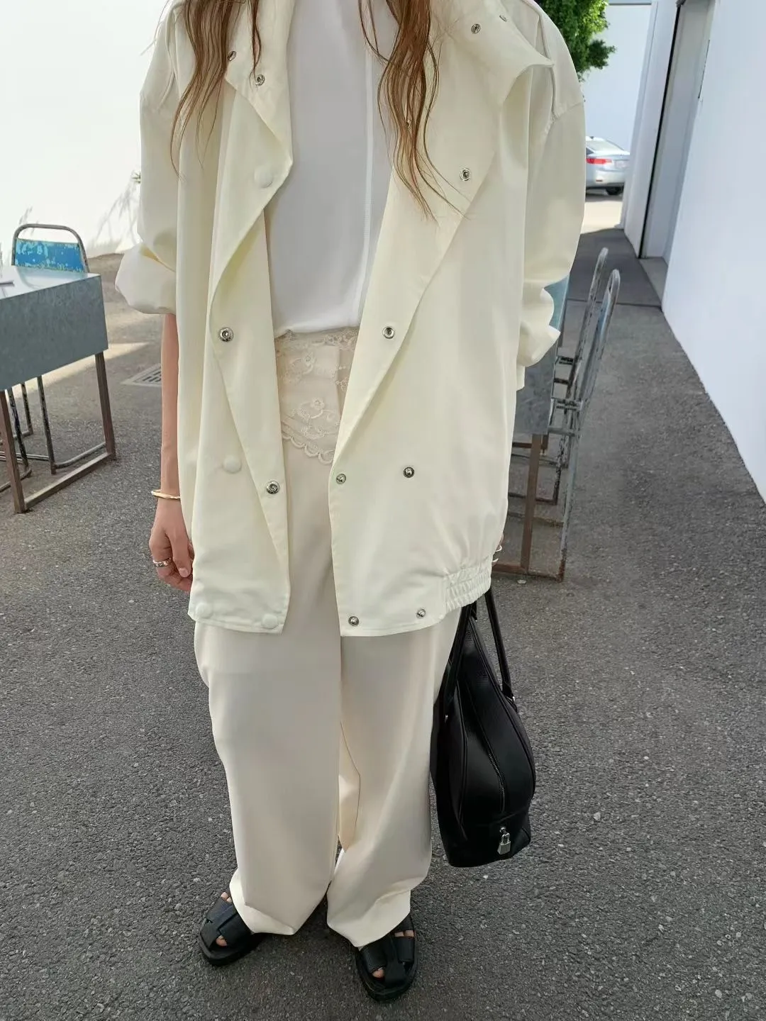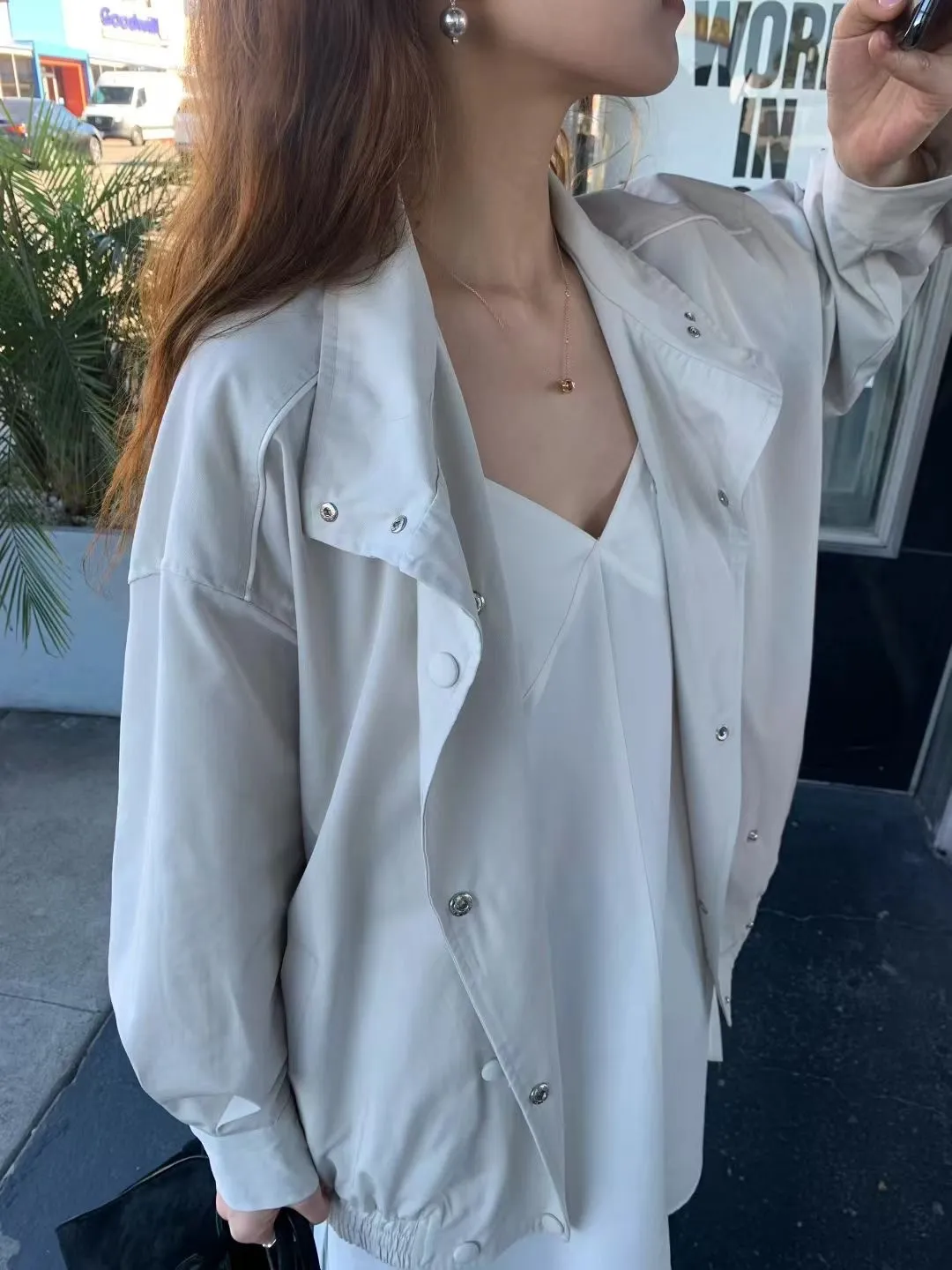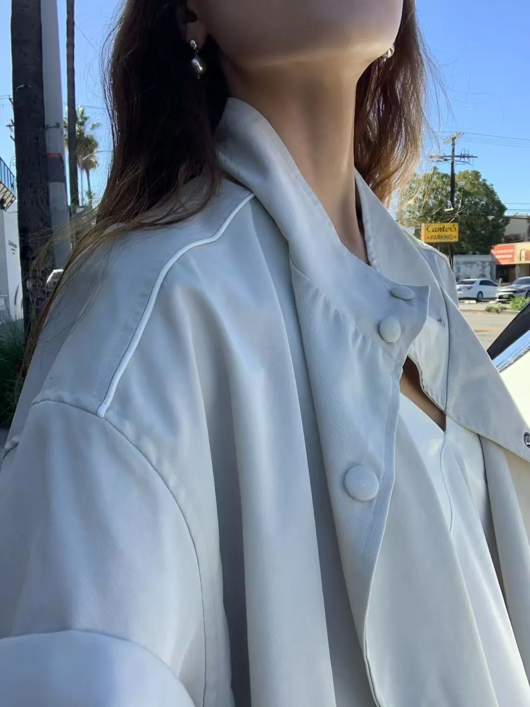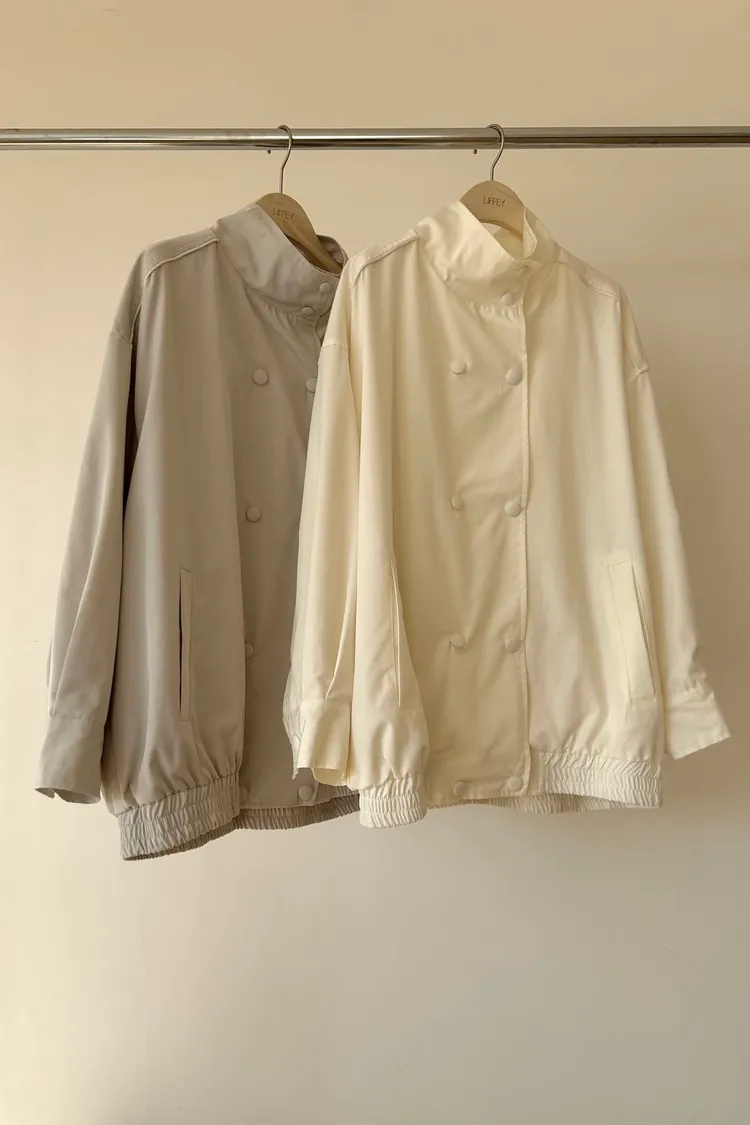F26雙牌包釦滿滿細節設計的休閒短風衣外套