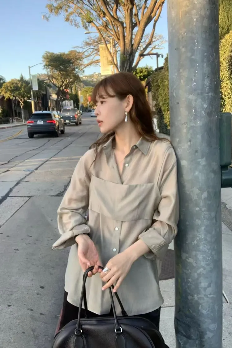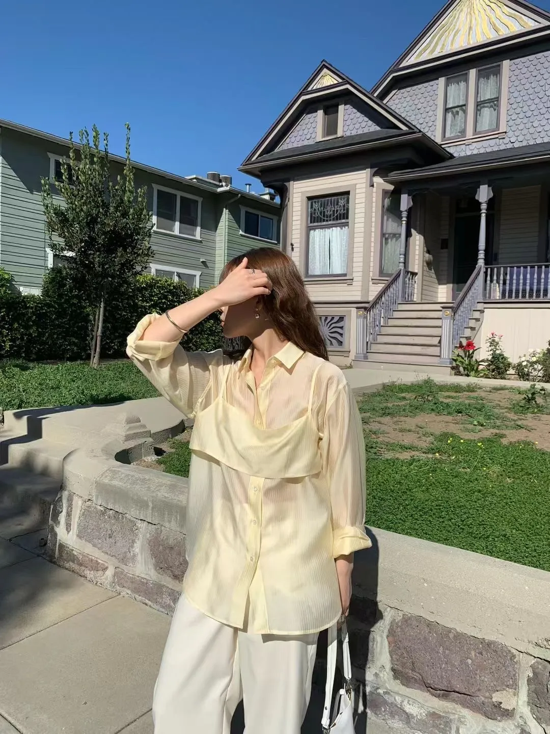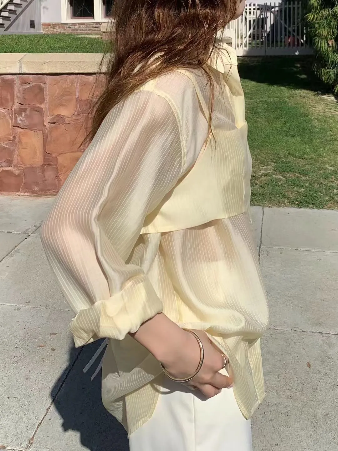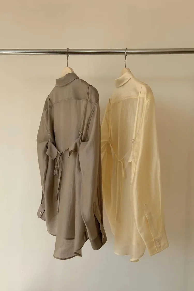 M02店長真愛❤超美光澤感細條紋襯衫+細肩帶套裝
