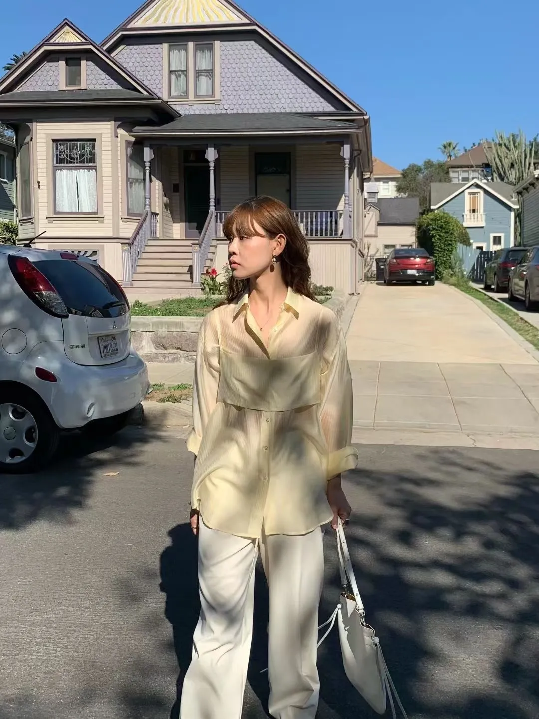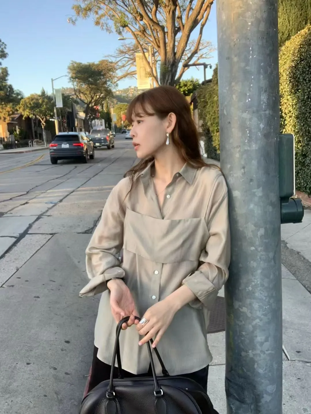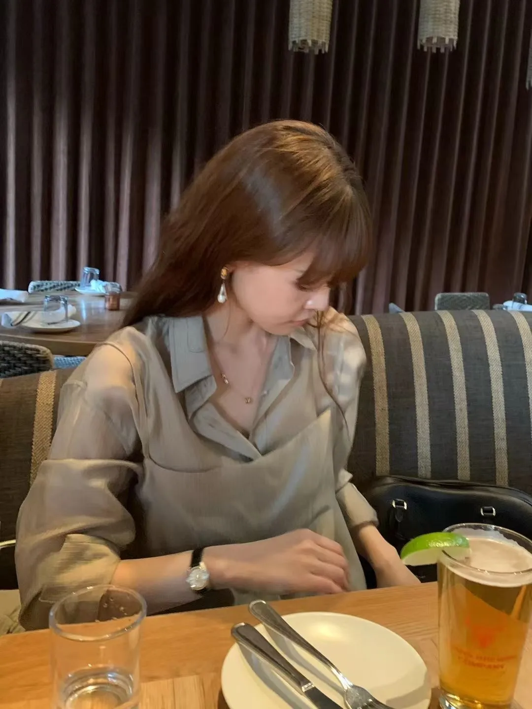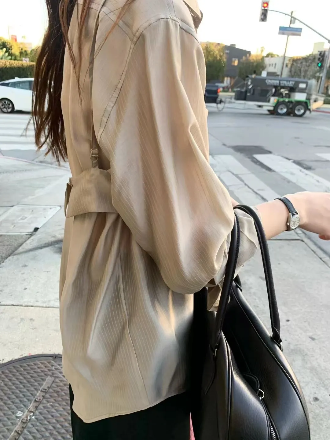 M02店長真愛❤超美光澤感細條紋襯衫+細肩帶套裝
