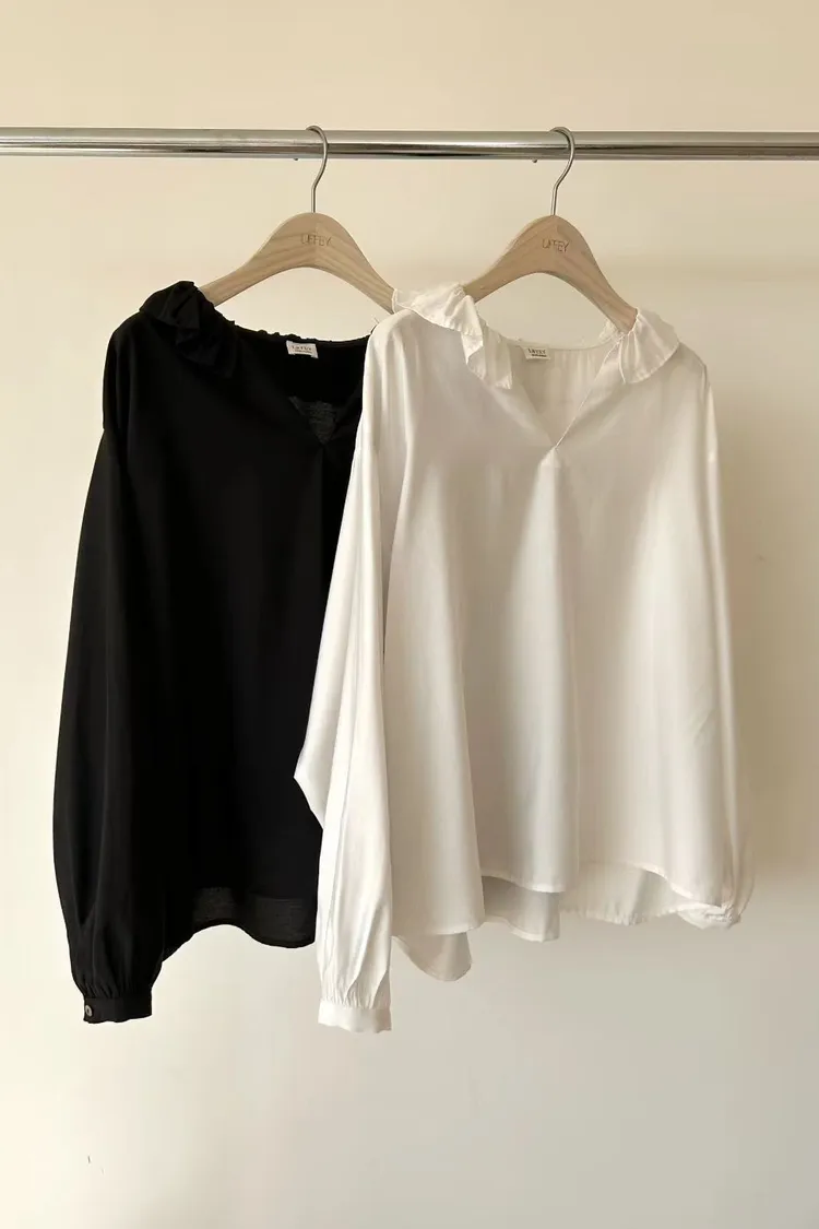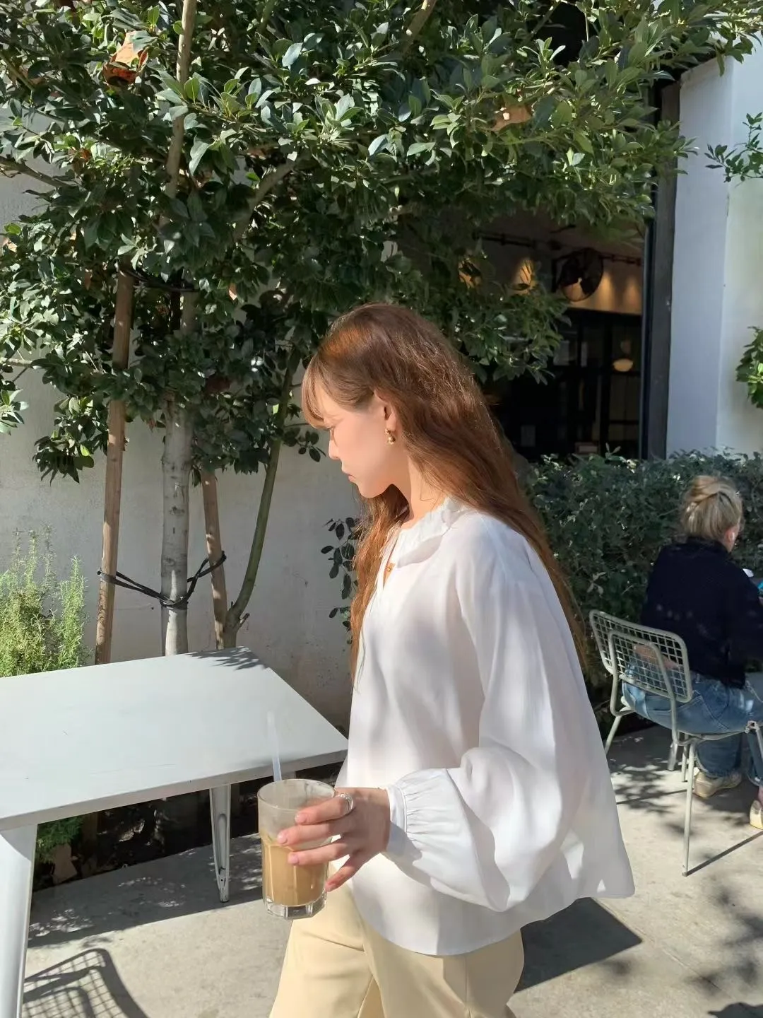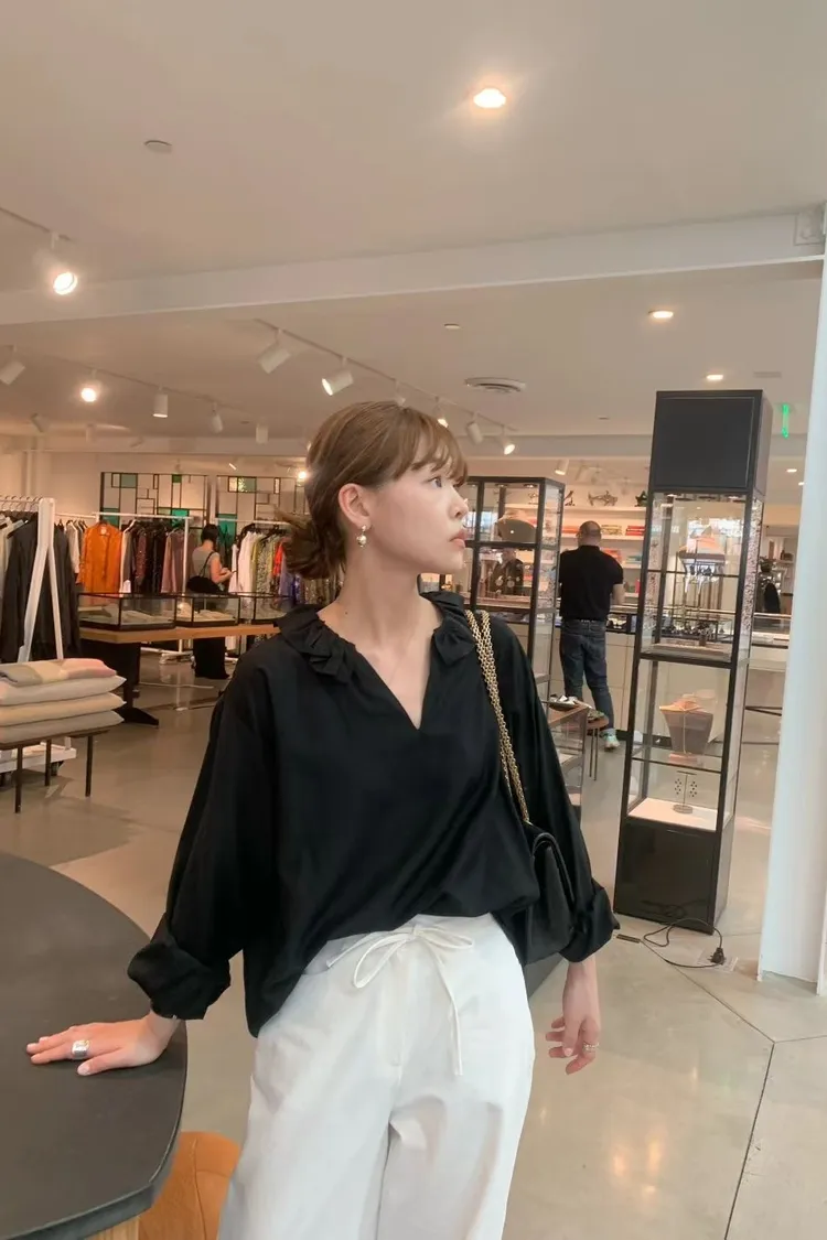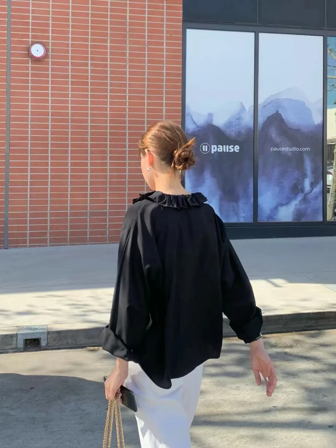M07浪漫小女人感領口荷葉滾邊v領開襟罩衫