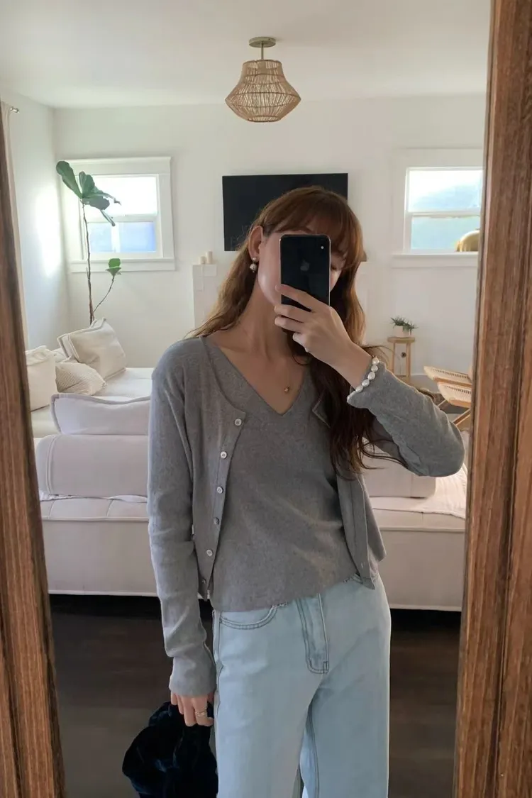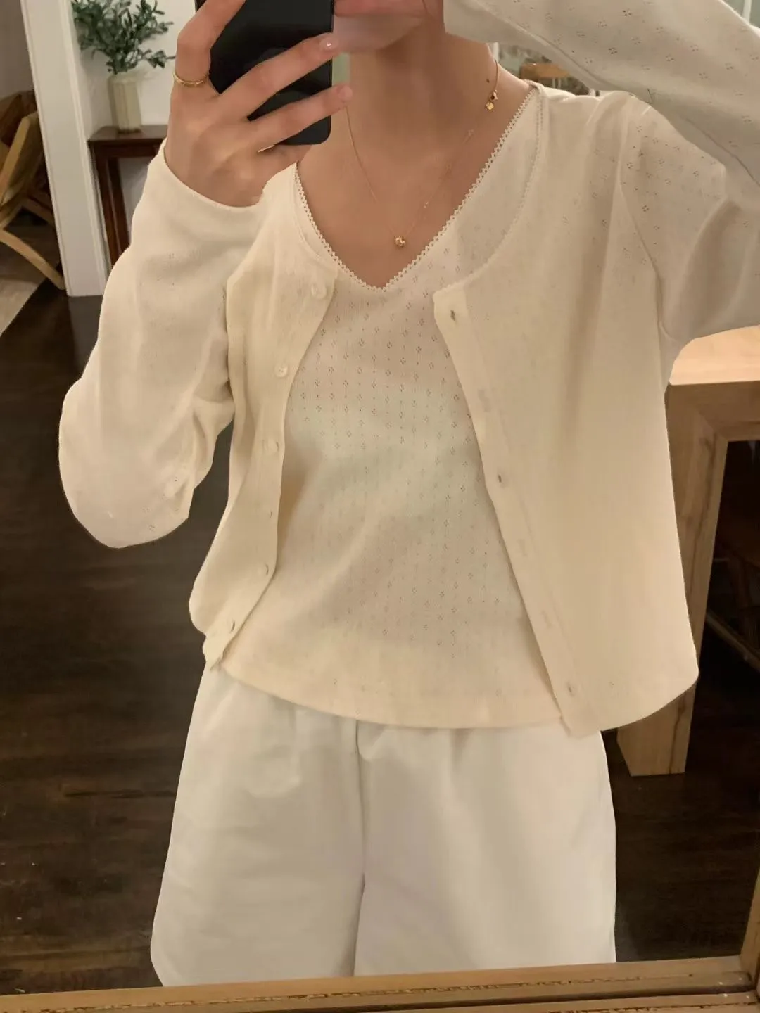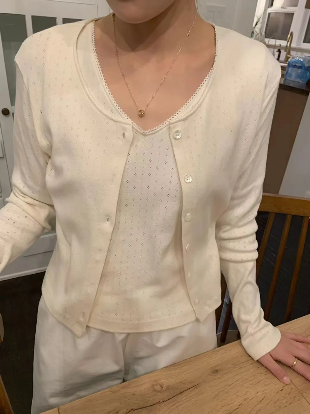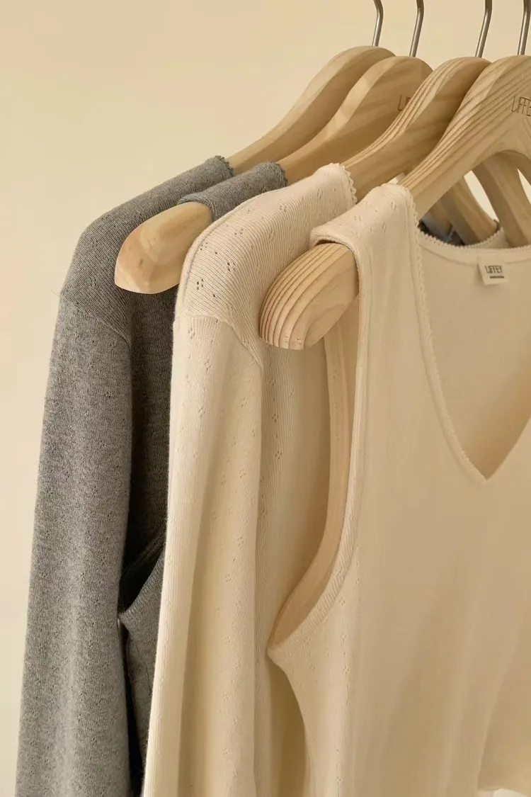 M09氣質小花鏤空設計V領背心/蕾絲滾邊外套套裝