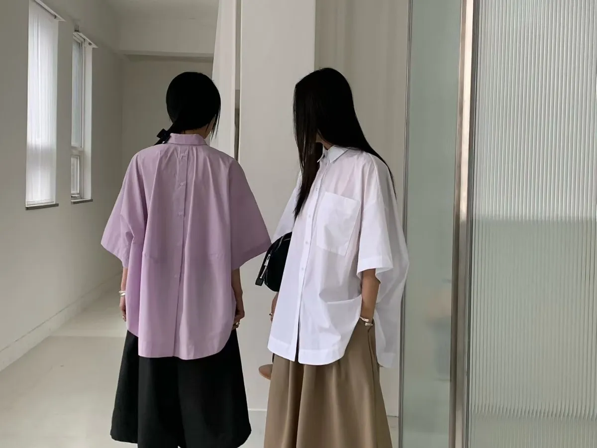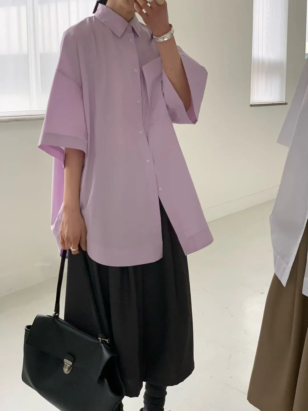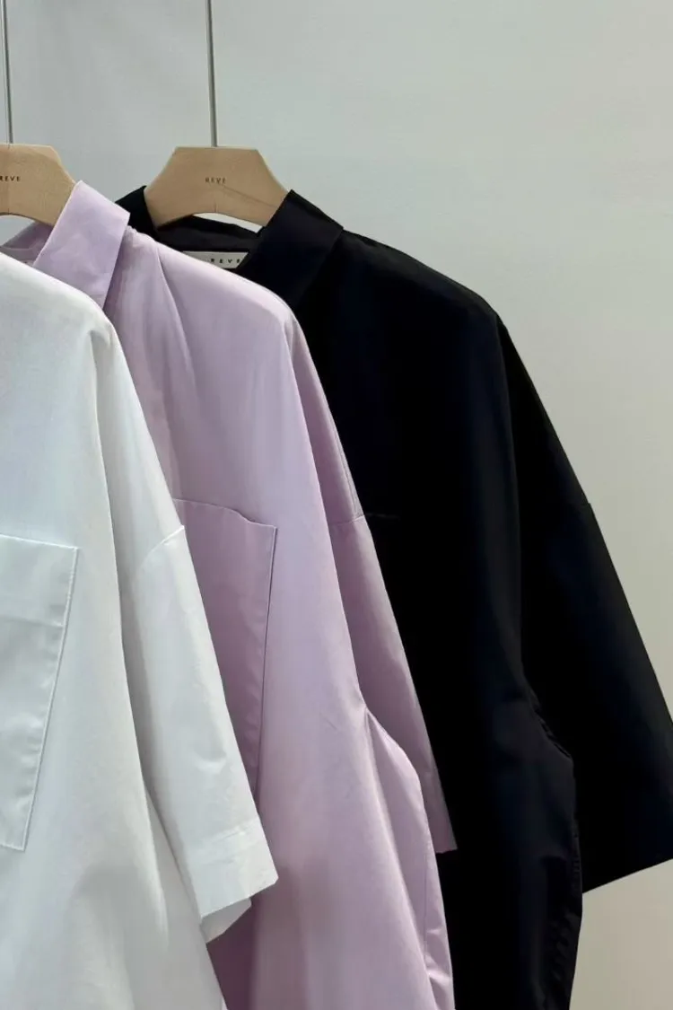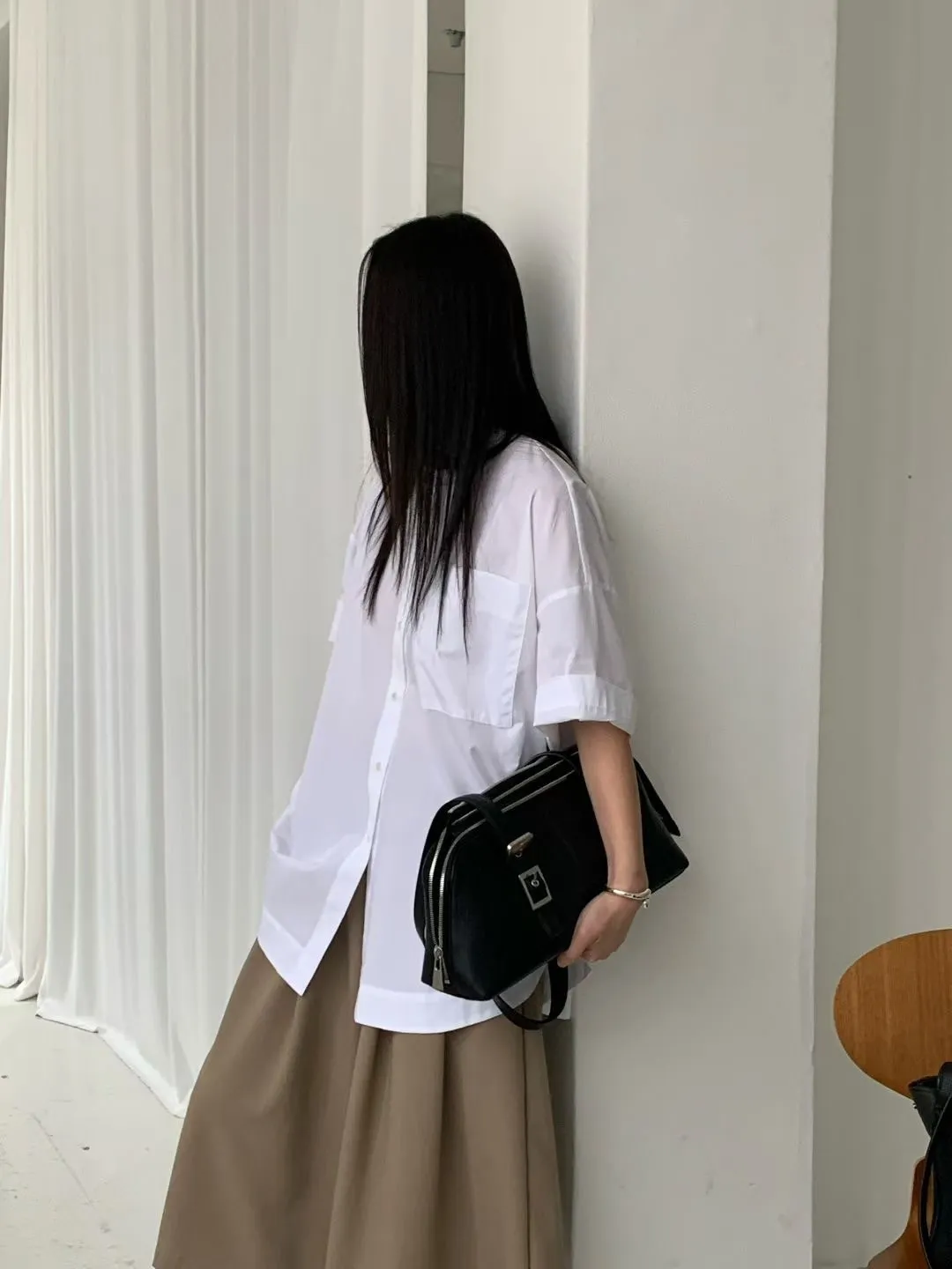 M14簡約家熱賣雙面小釦子口袋弧形短袖襯衫