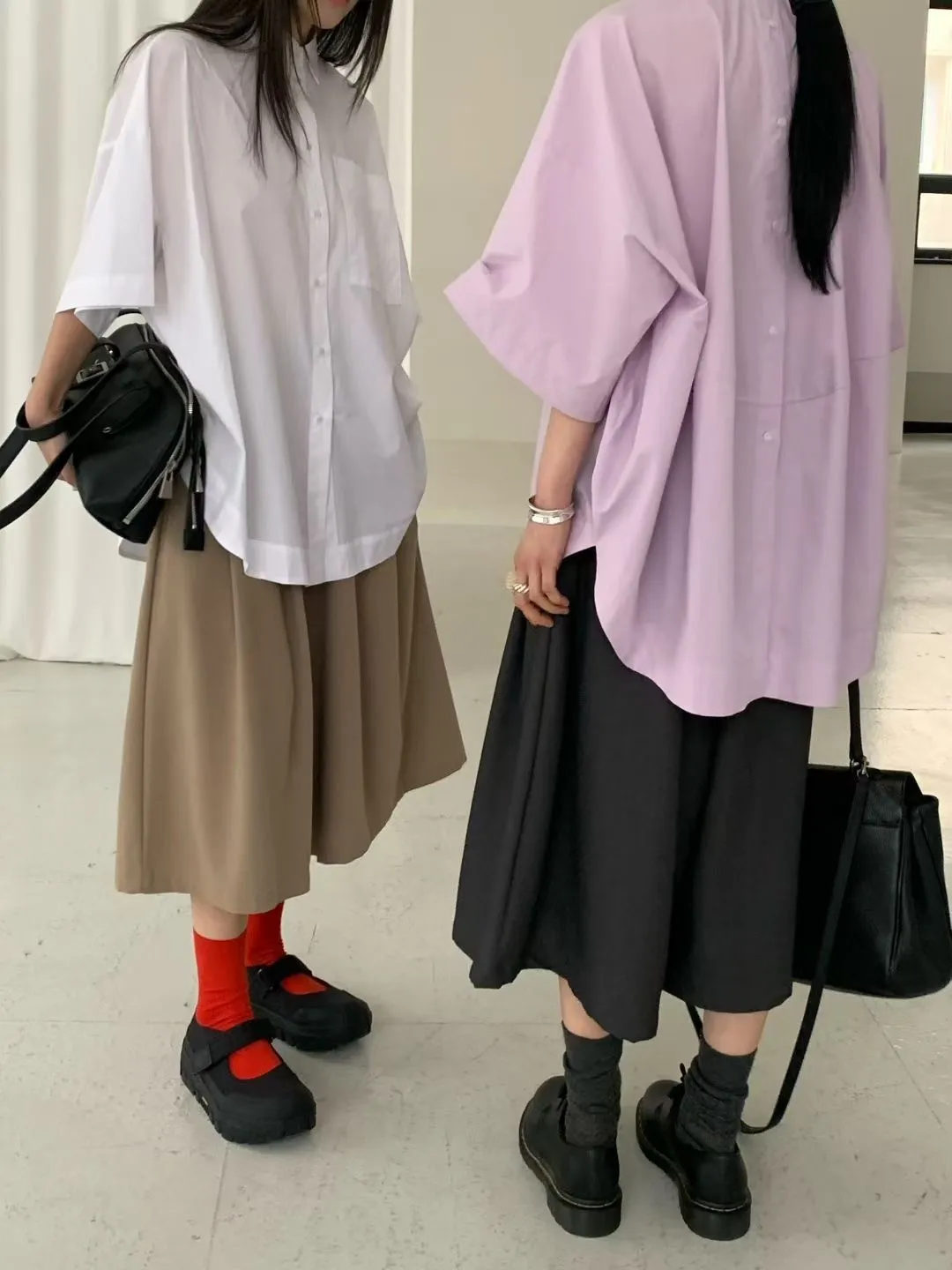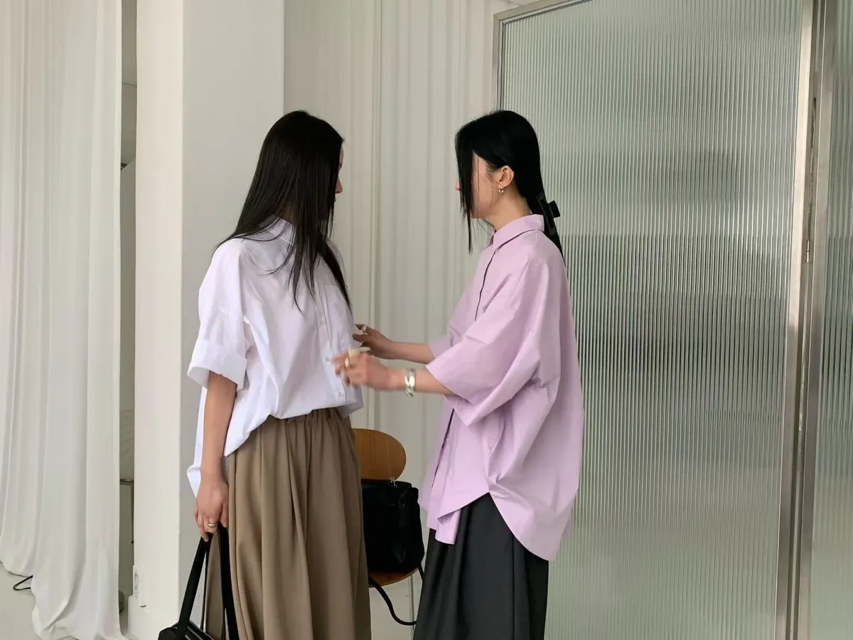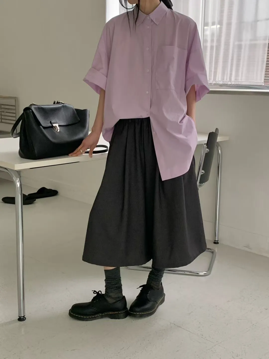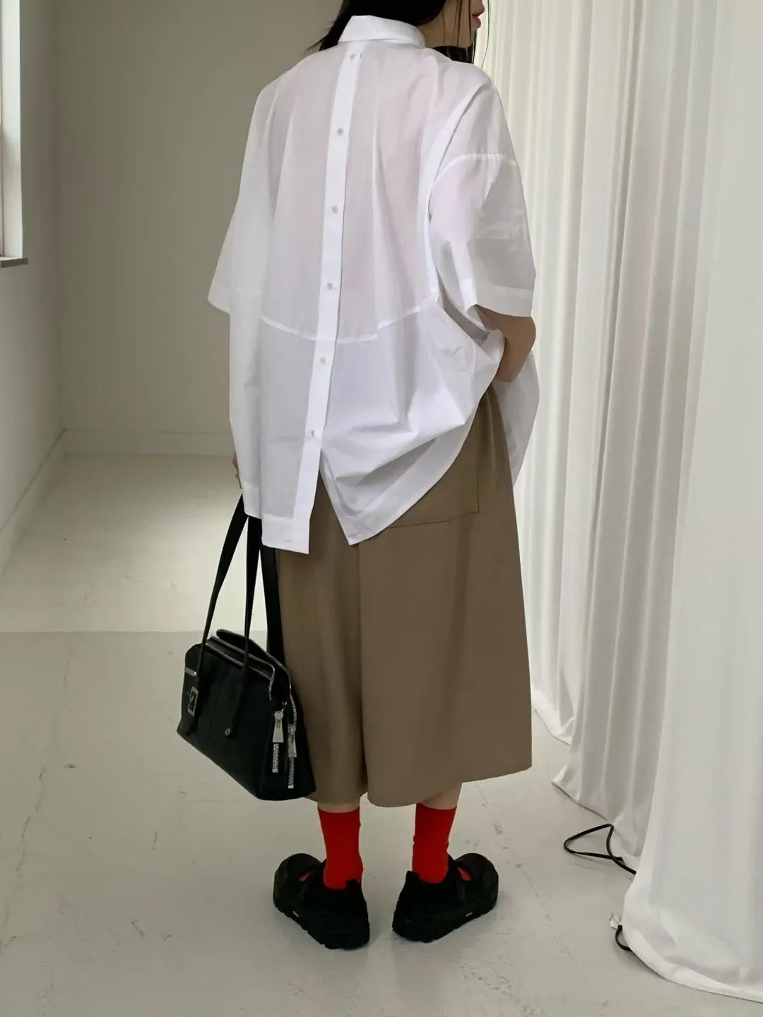M14簡約家熱賣雙面小釦子口袋弧形短袖襯衫