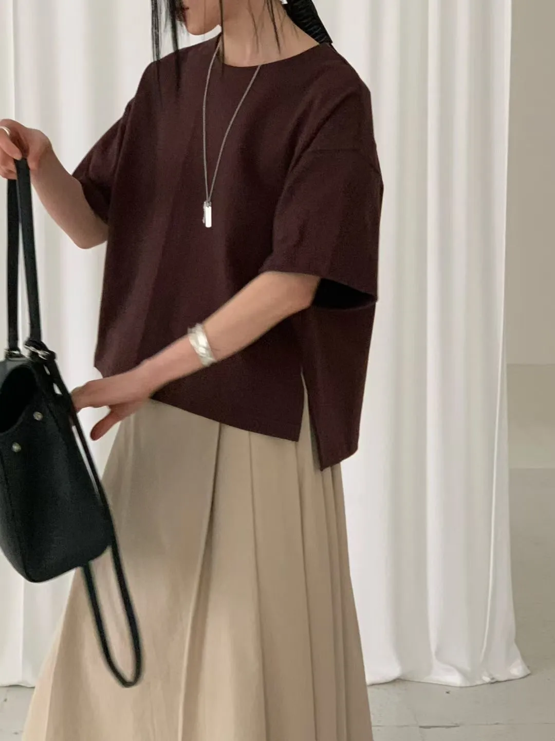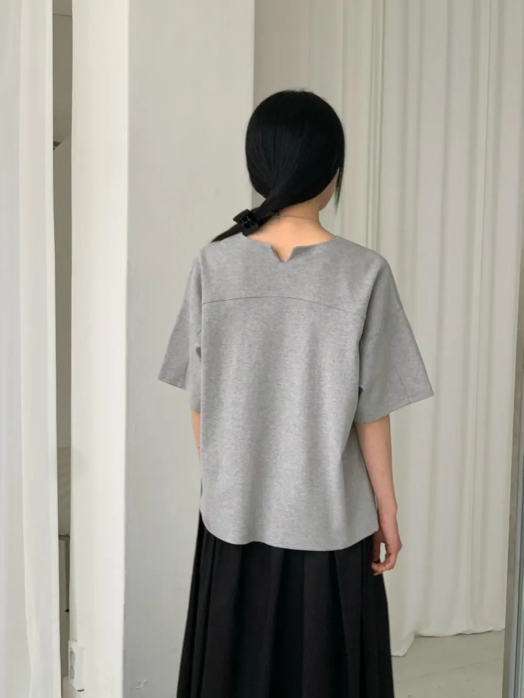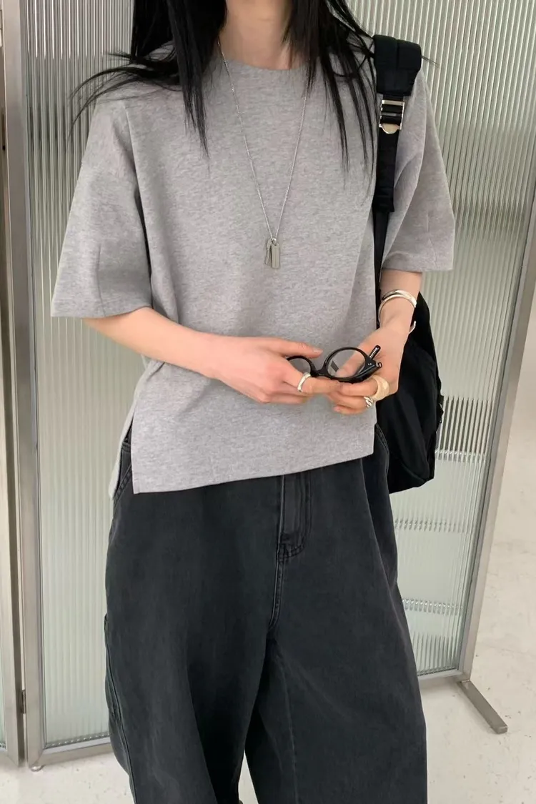 M16簡約袖口車線後小V設計側衩棉質上衣
