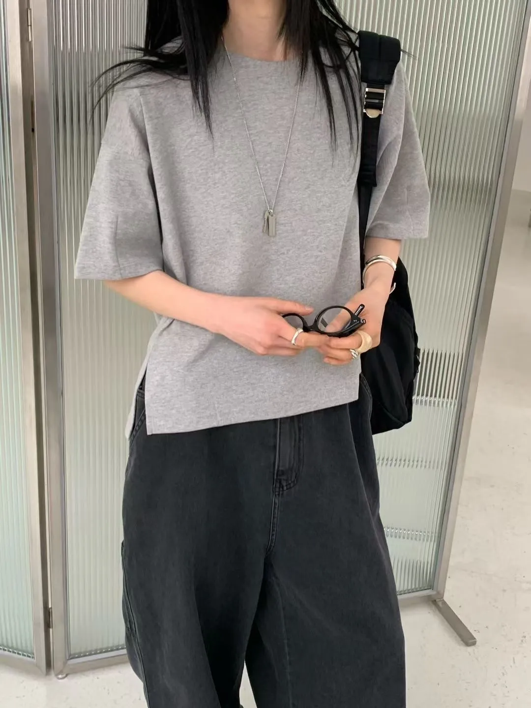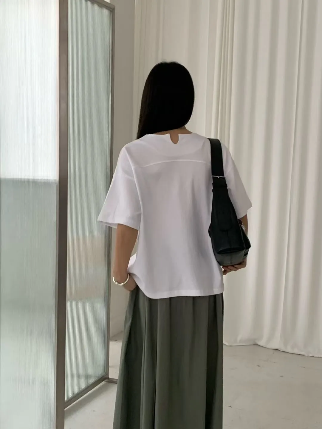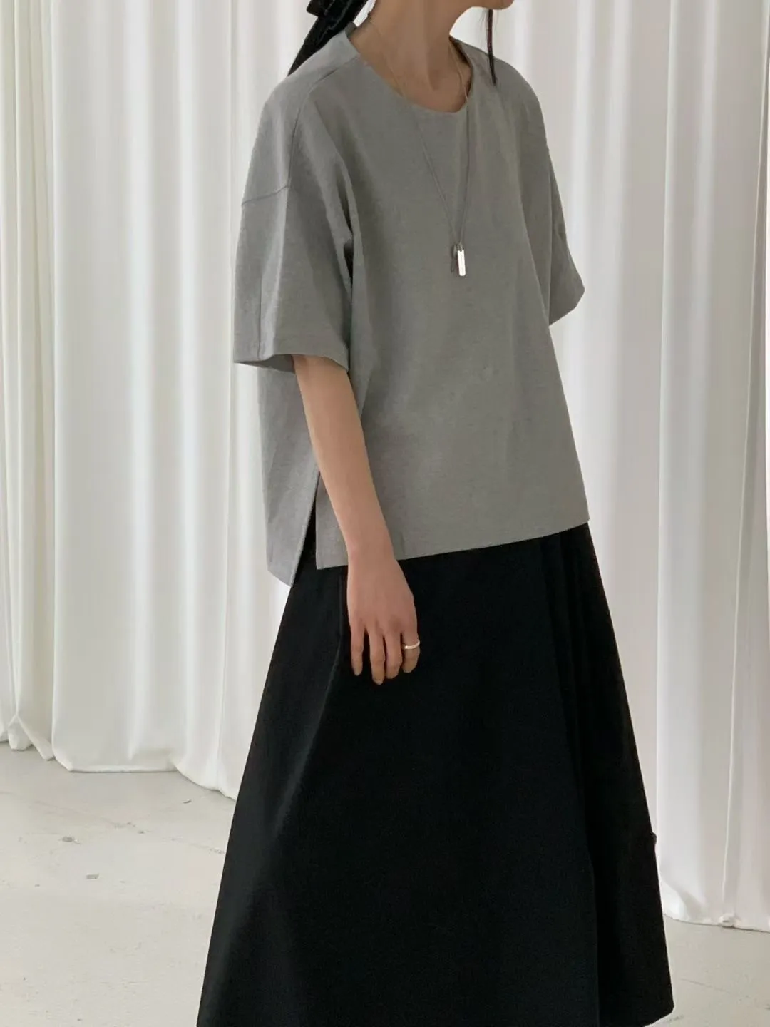 M16簡約袖口車線後小V設計側衩棉質上衣
