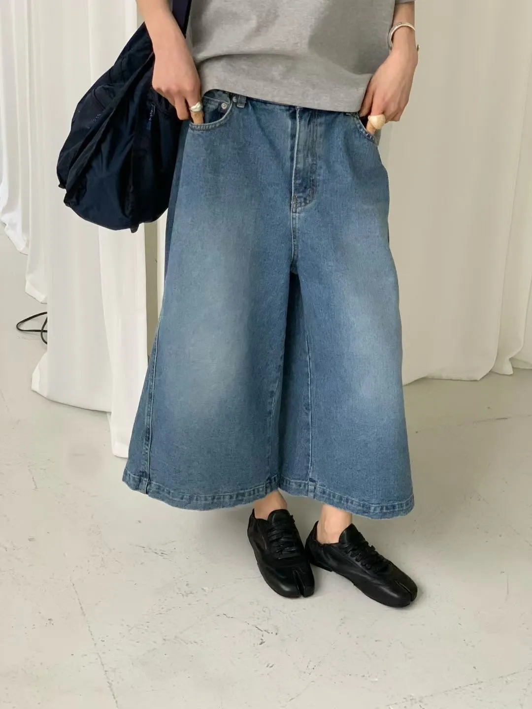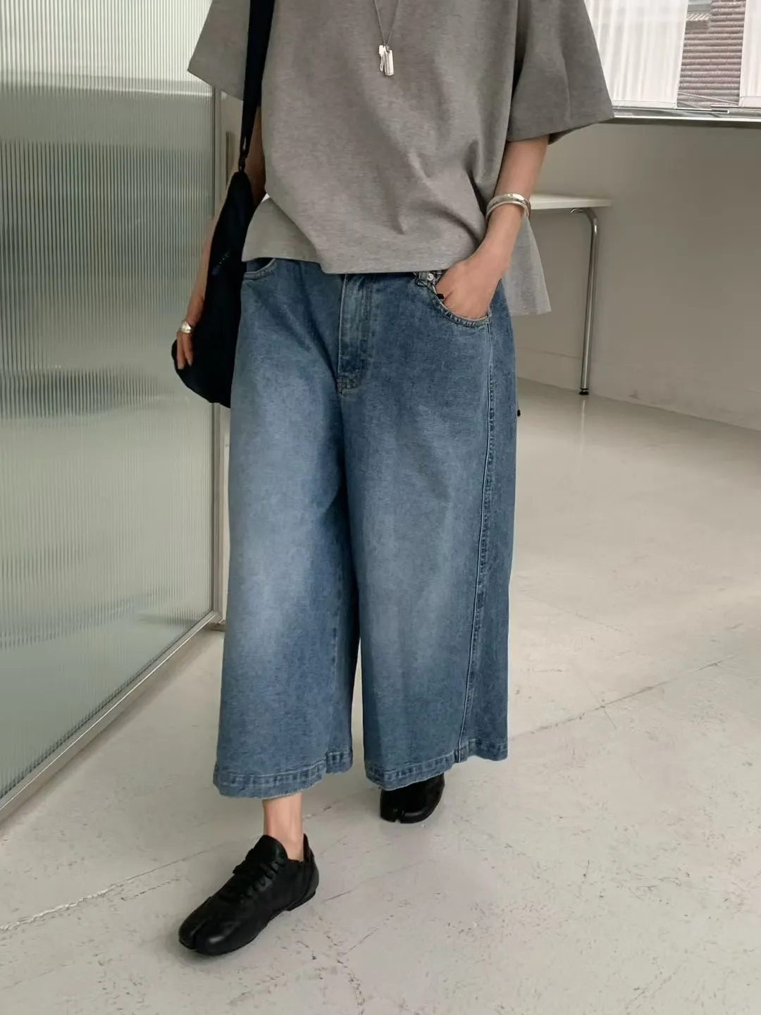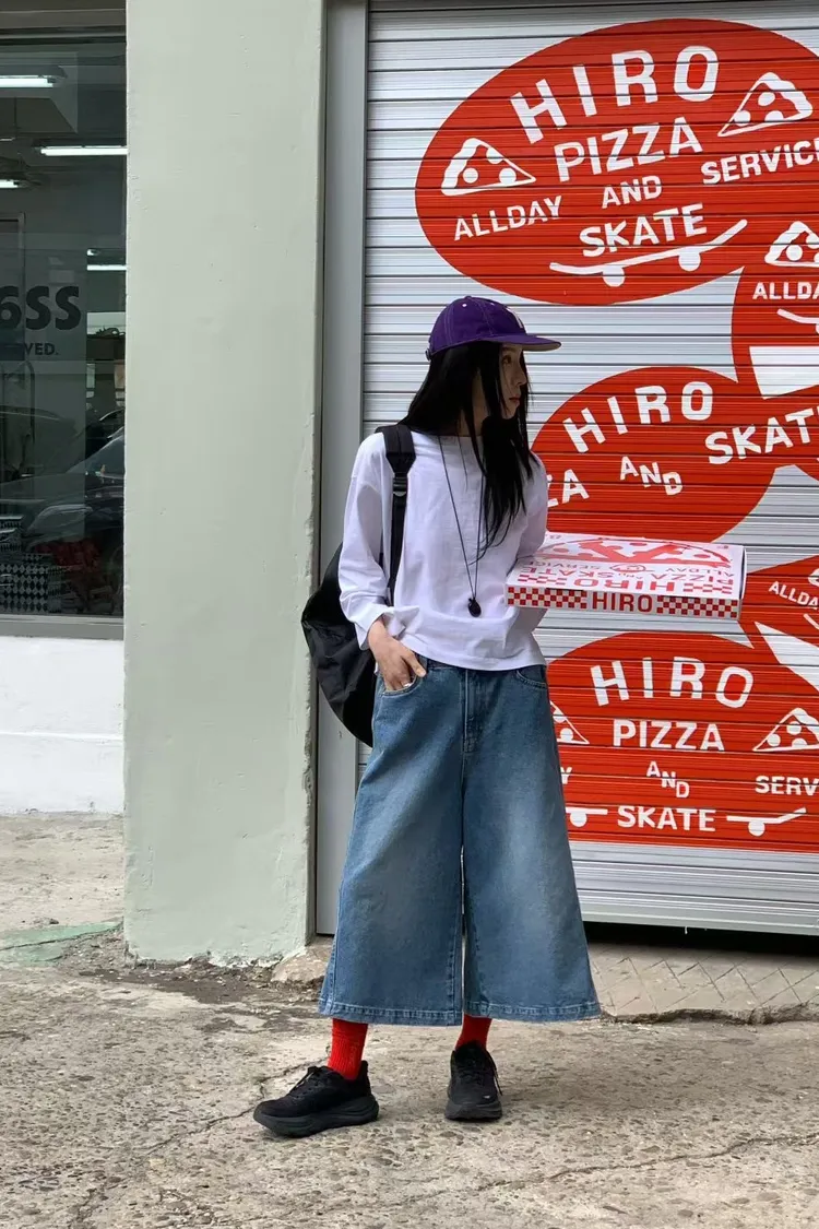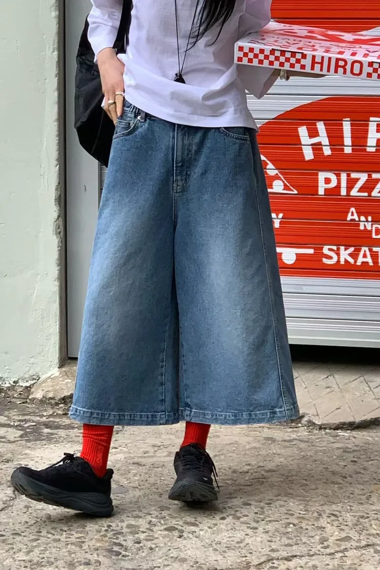 M17率性水洗刷色寬版八分牛仔褲(S/M)