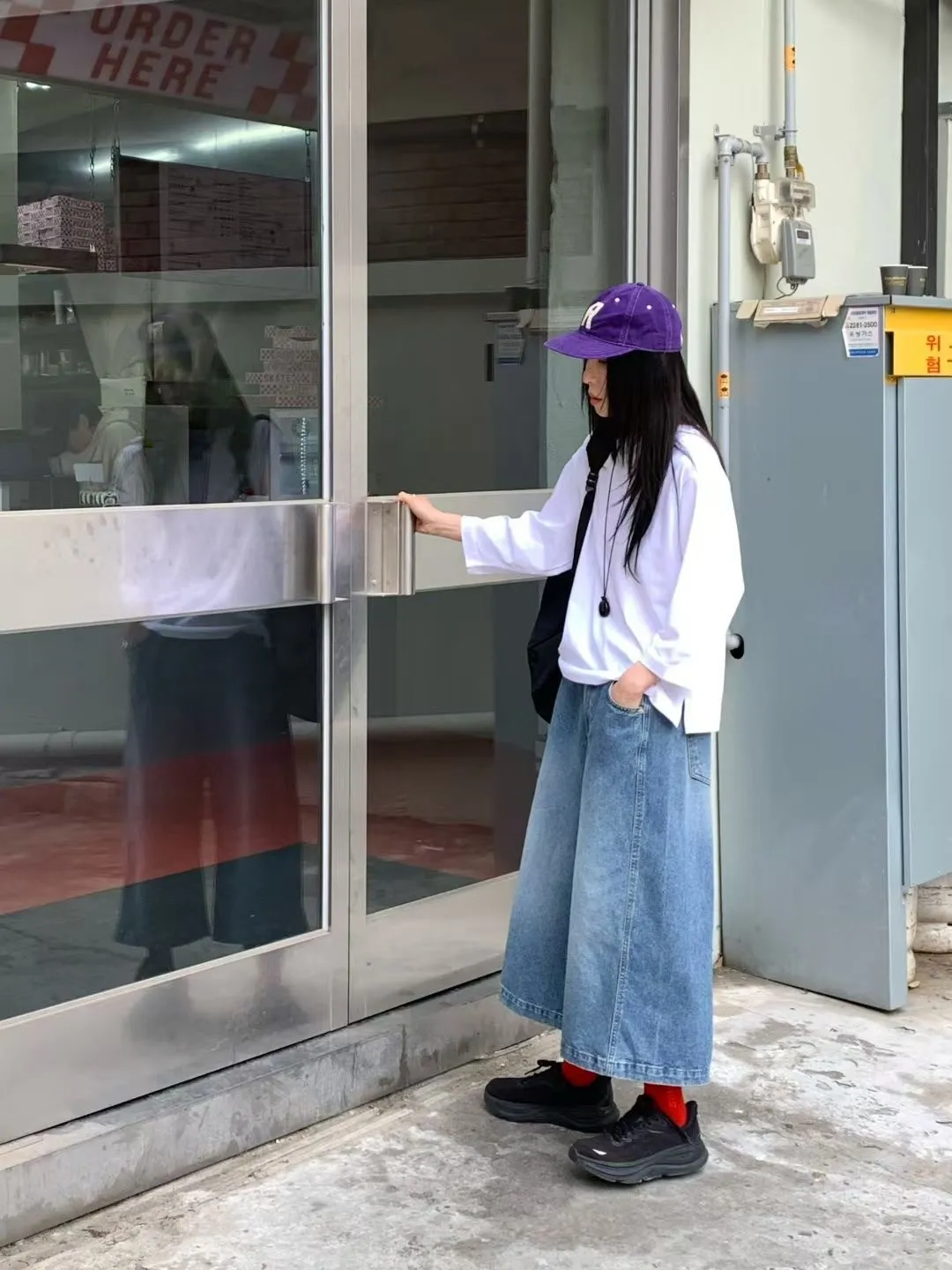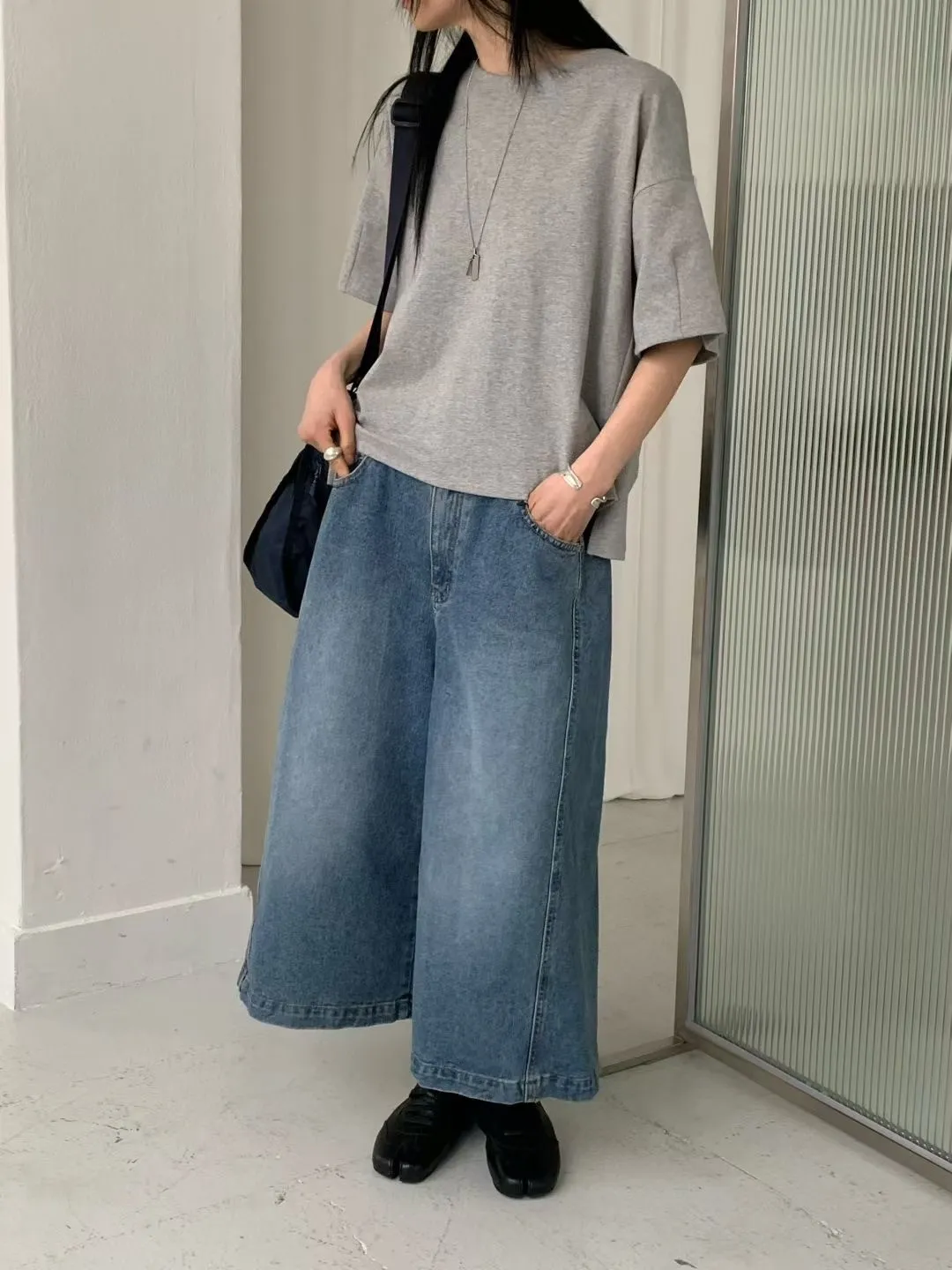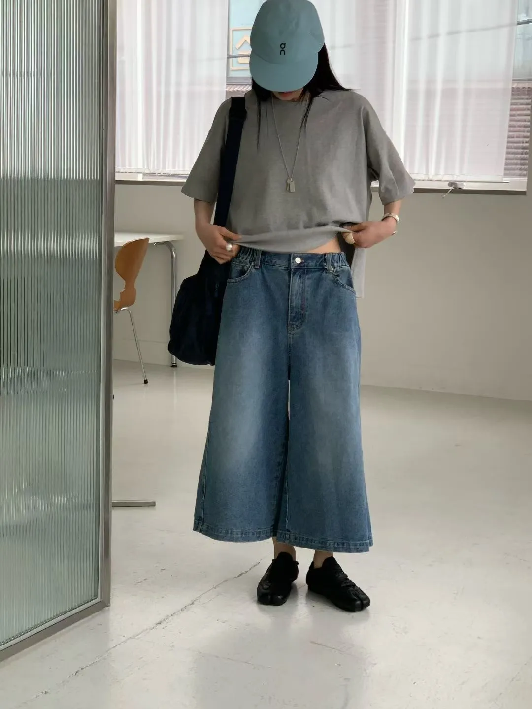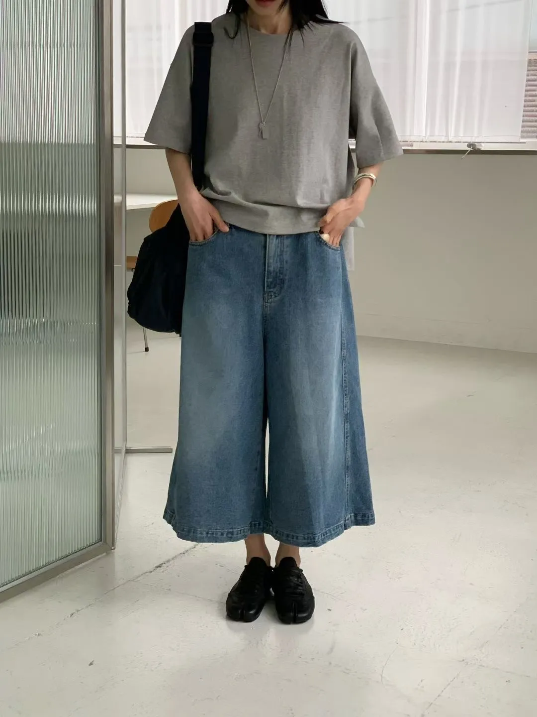 M17率性水洗刷色寬版八分牛仔褲(S/M)