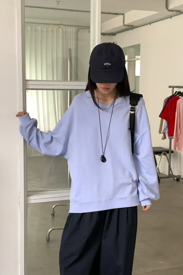 M18春季馬卡龍色調V領純棉大學T