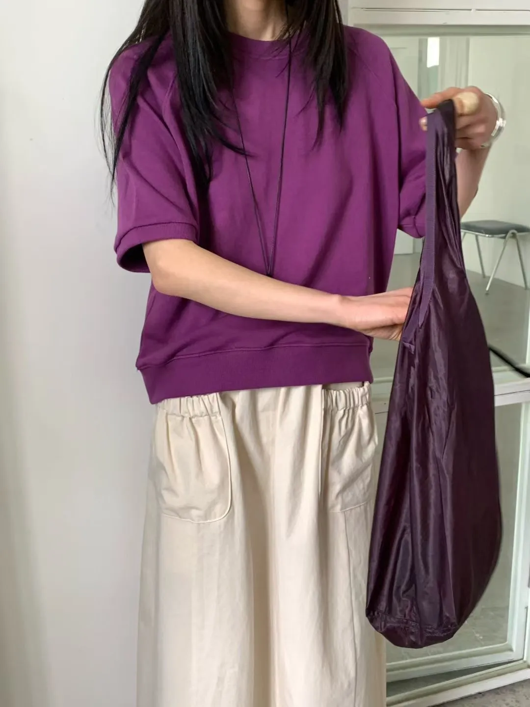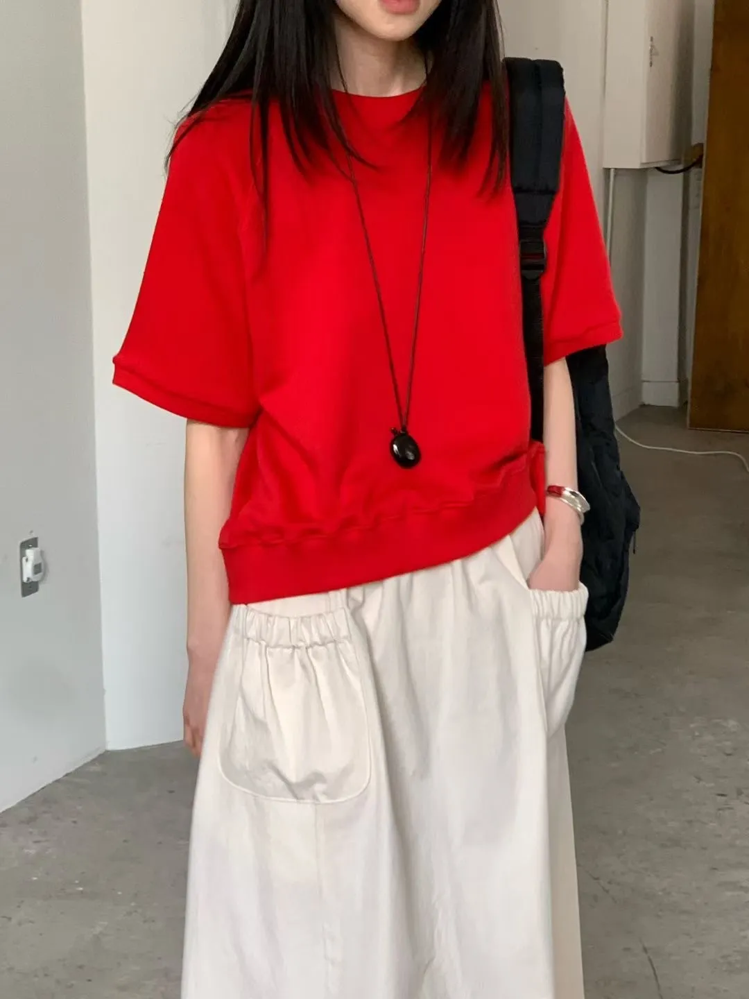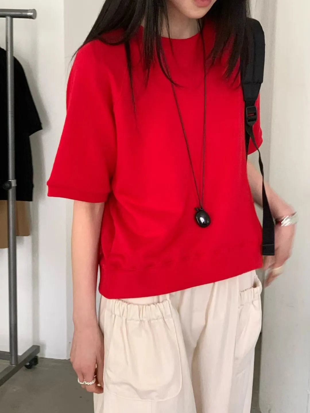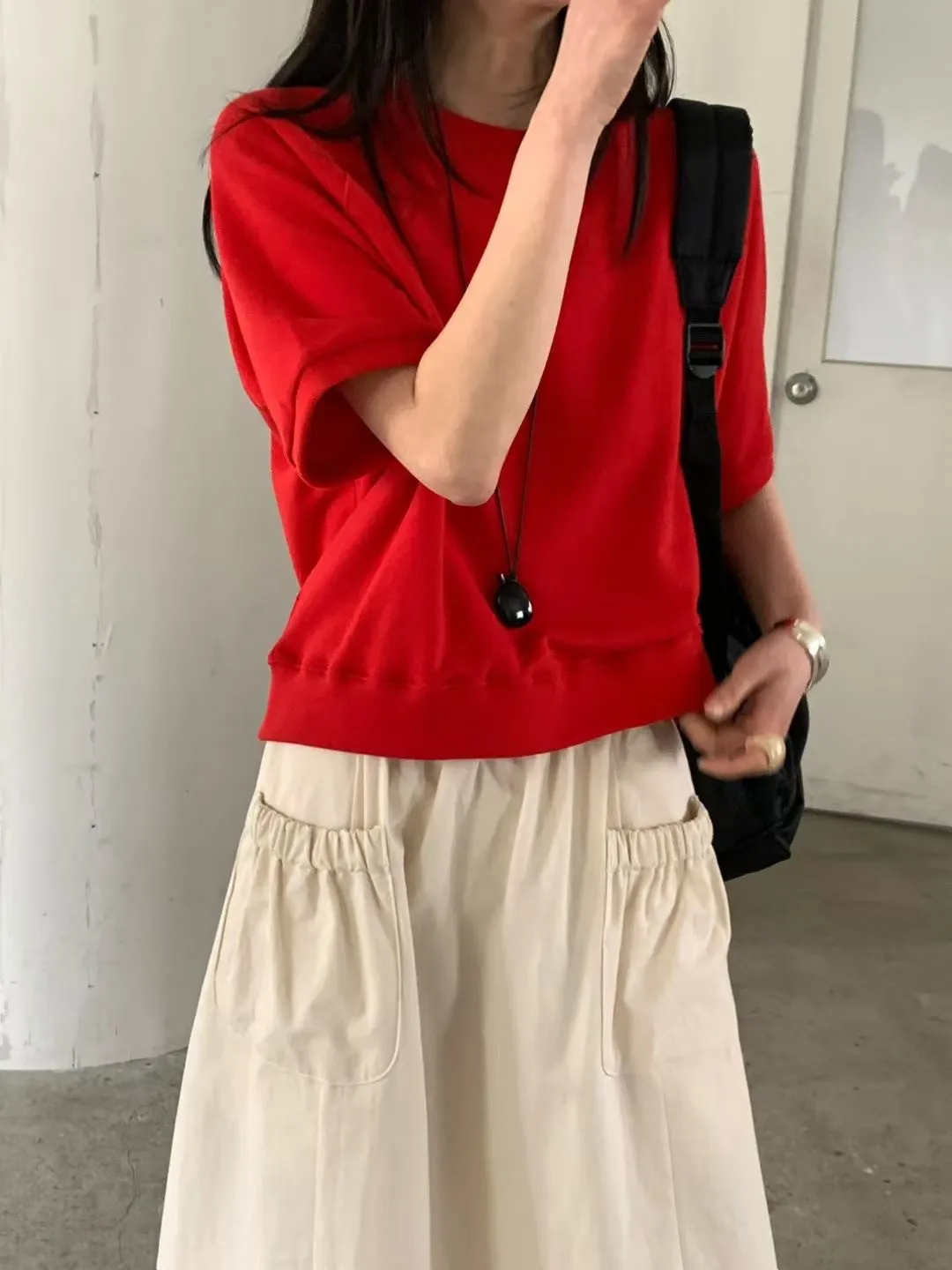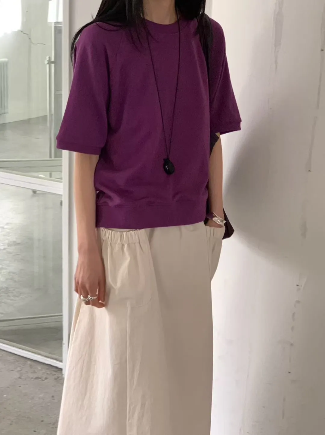 M21基本好搭配的五分袖純棉大學T