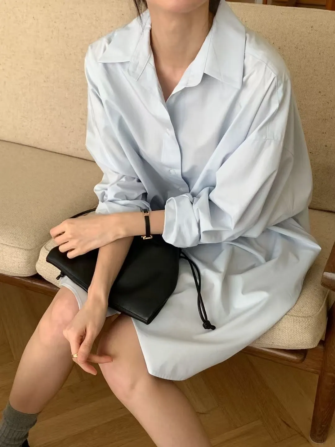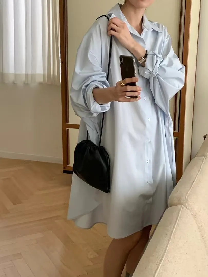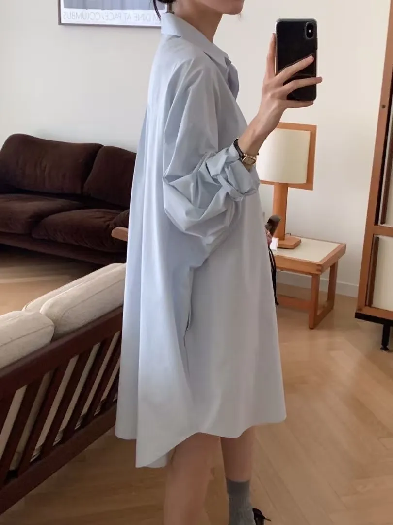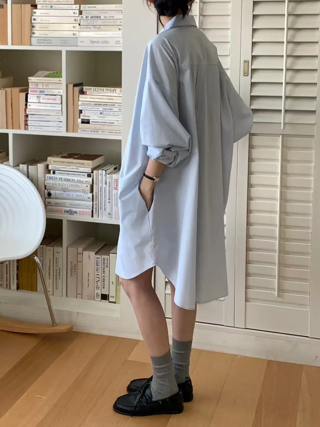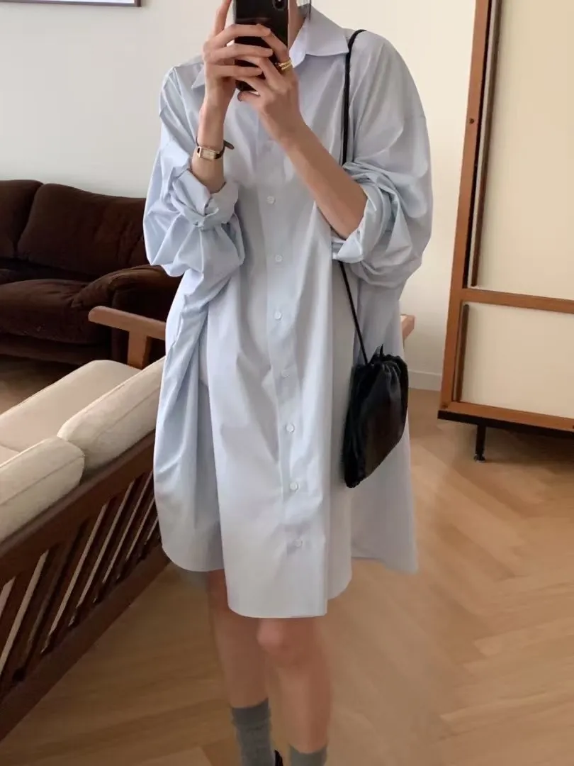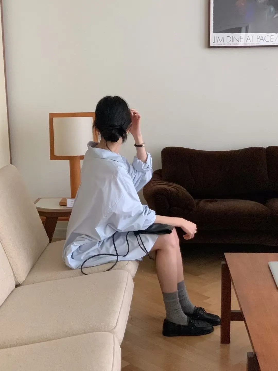 R23韓系溫柔小姊姊的長袖襯衫洋裝