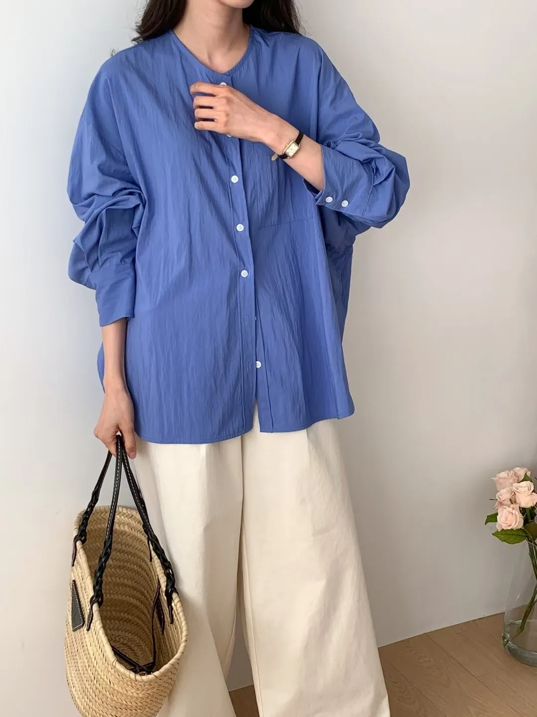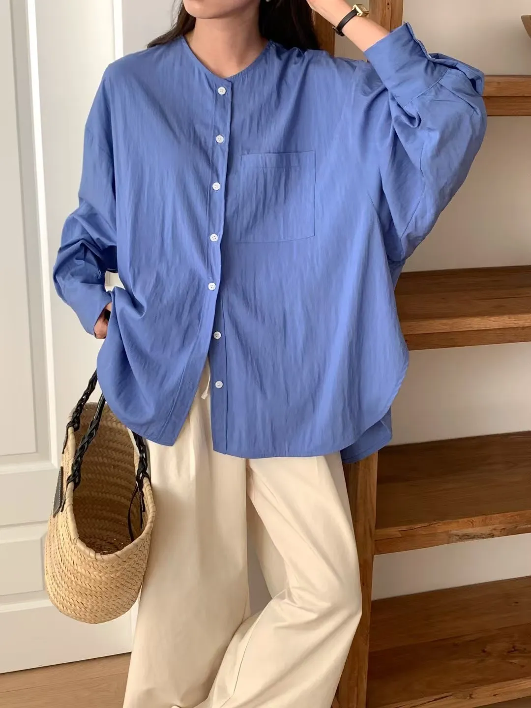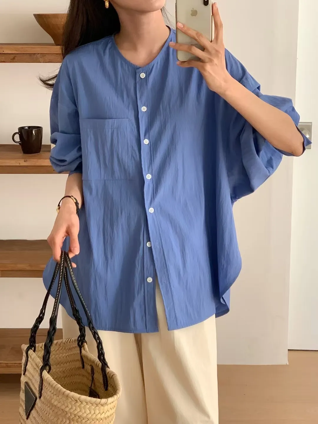 R24歐膩都在穿的溫柔感紗紗布小釦罩衫