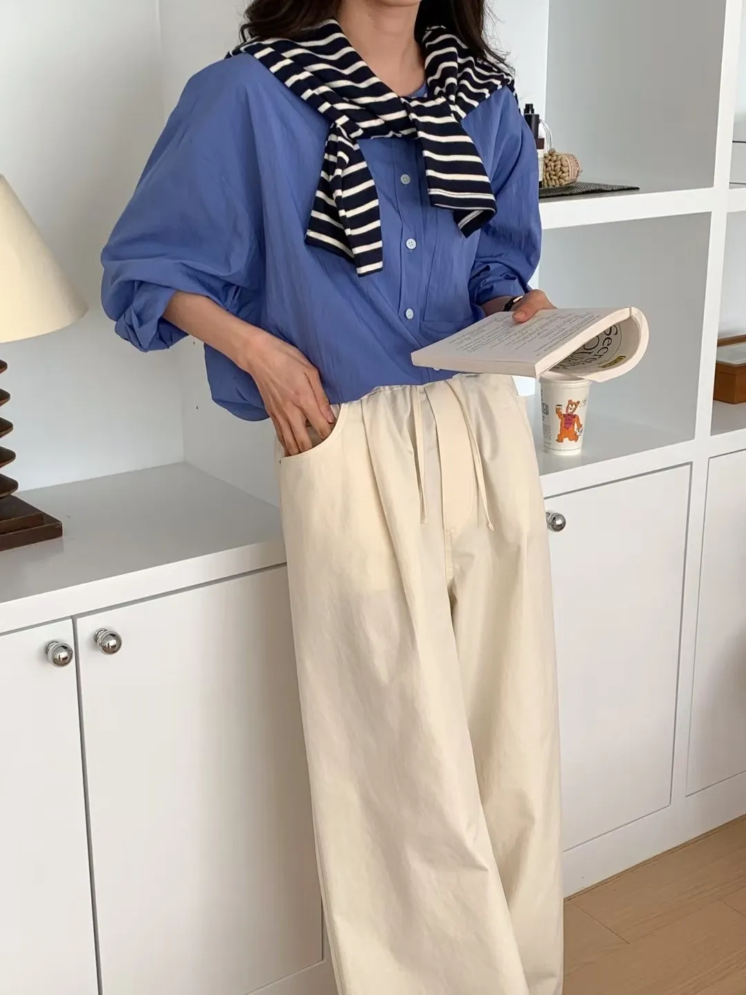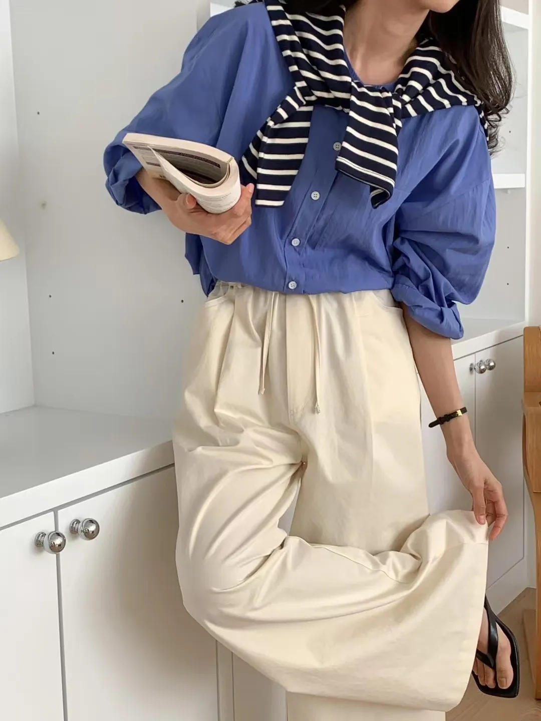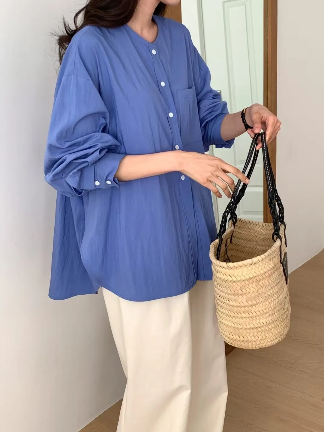 R24歐膩都在穿的溫柔感紗紗布小釦罩衫