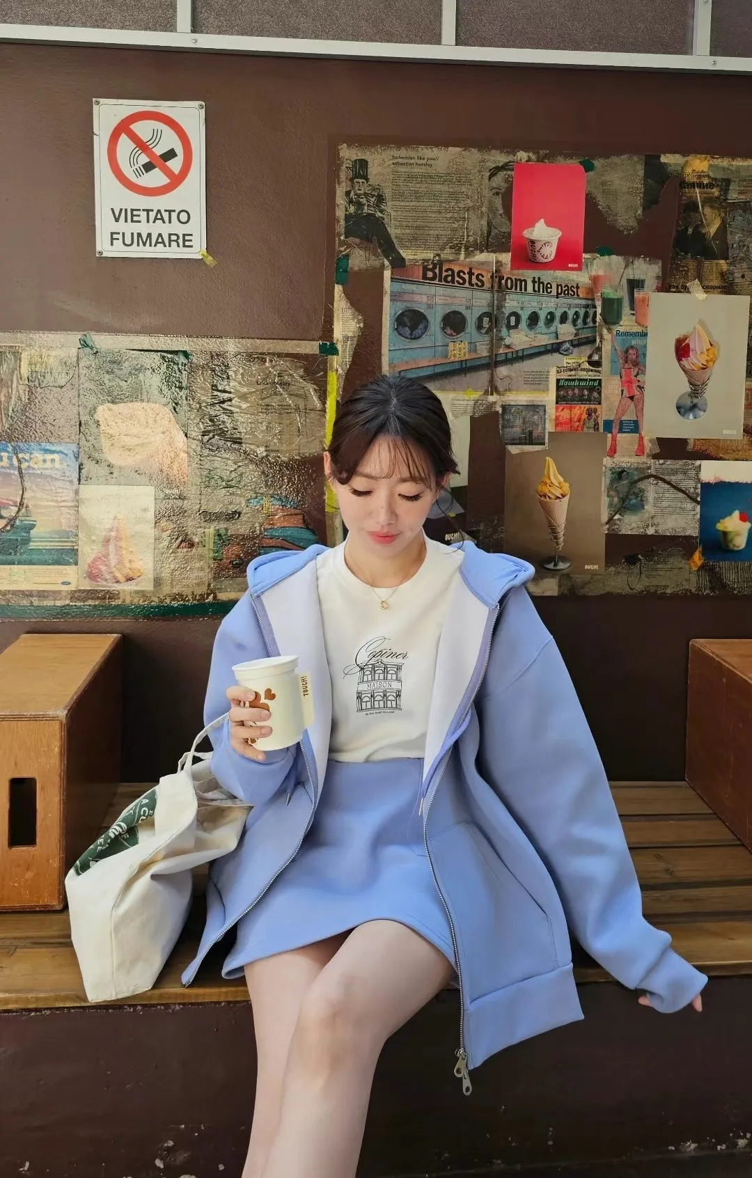 寬鬆的外套版型好像偷穿男友的外套,鬆弛感又可愛🤍🩵
