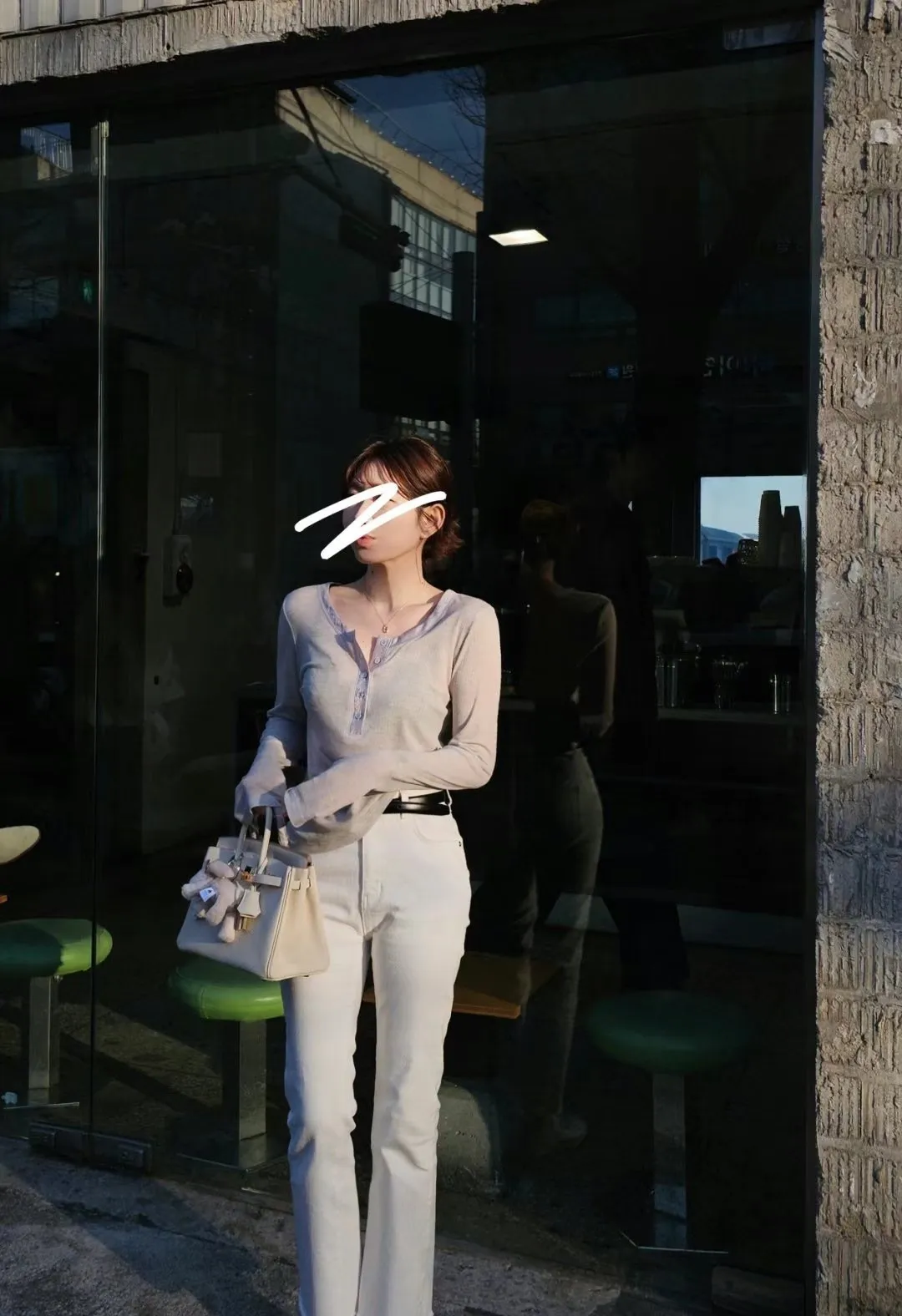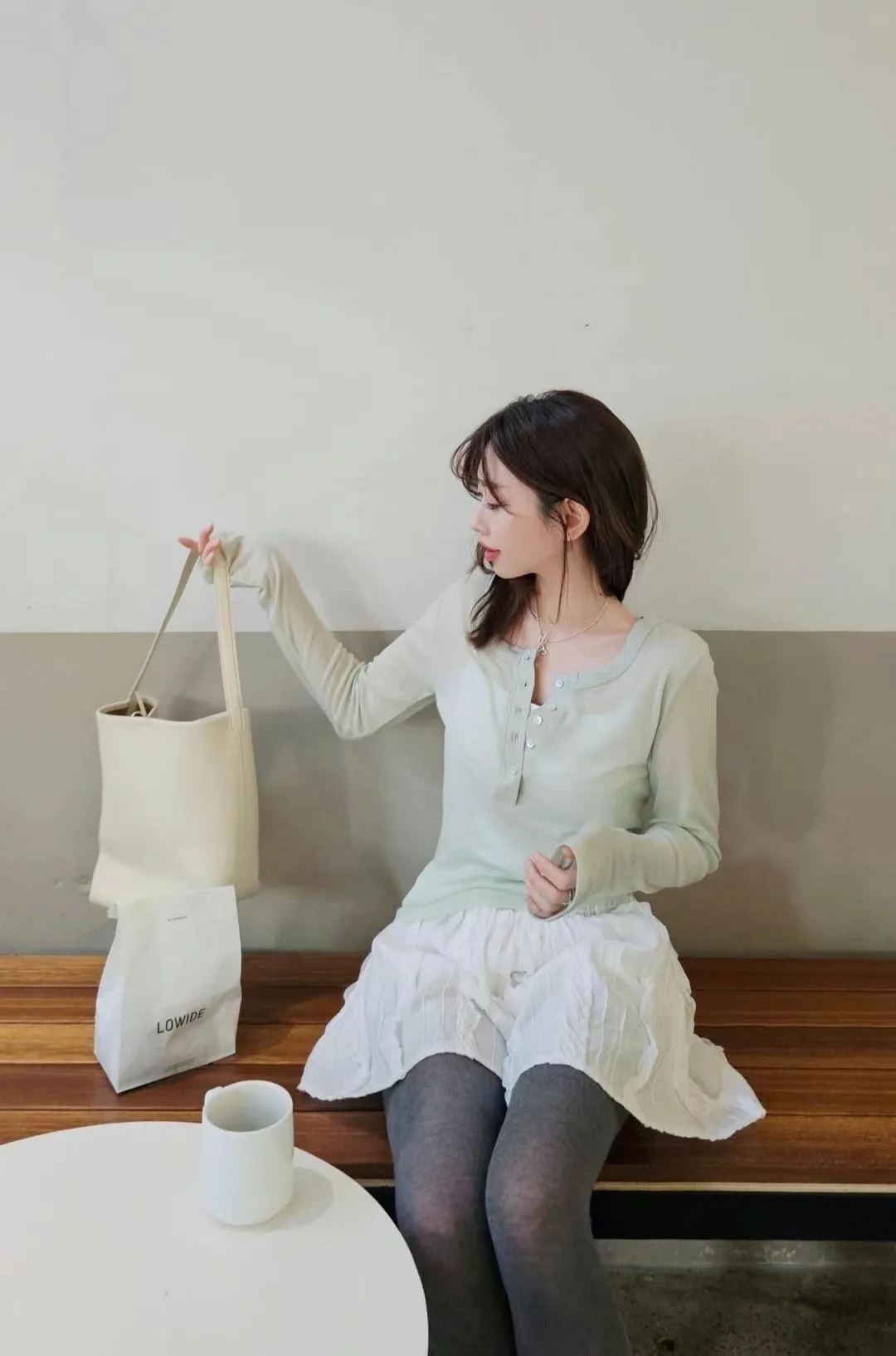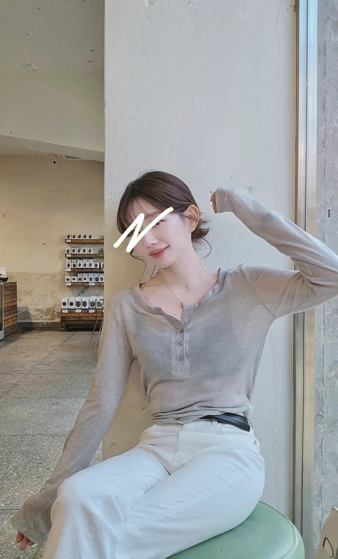 大圓領和亨利領的半開襟剪裁,領邊拼接異材質的細節太美~