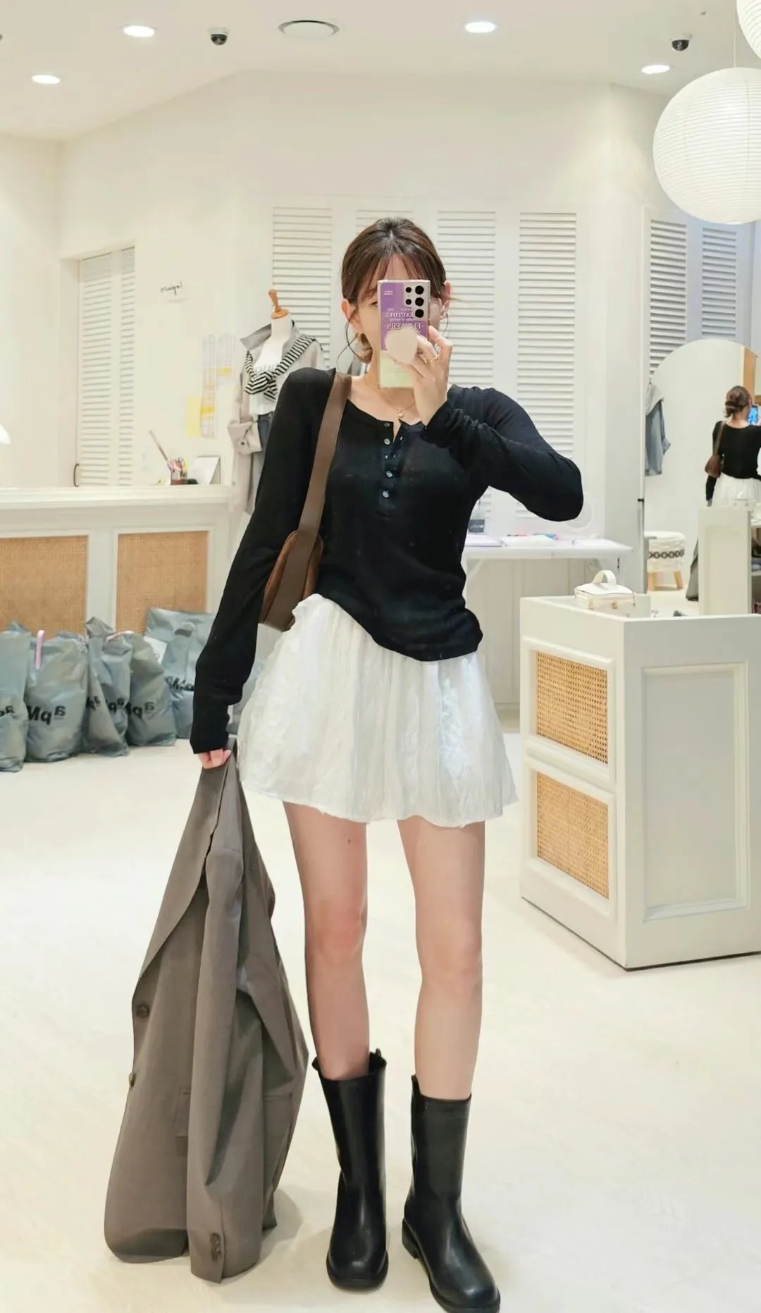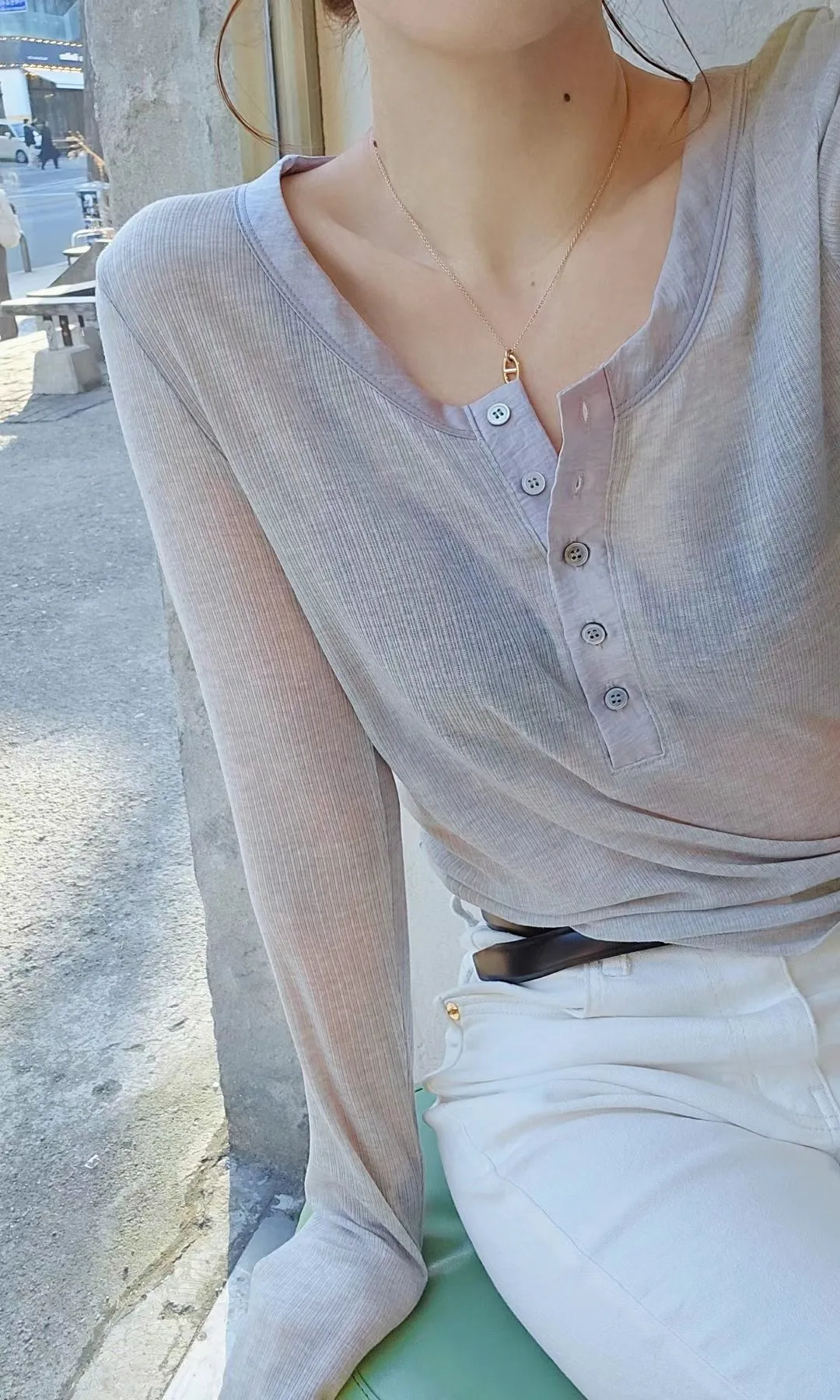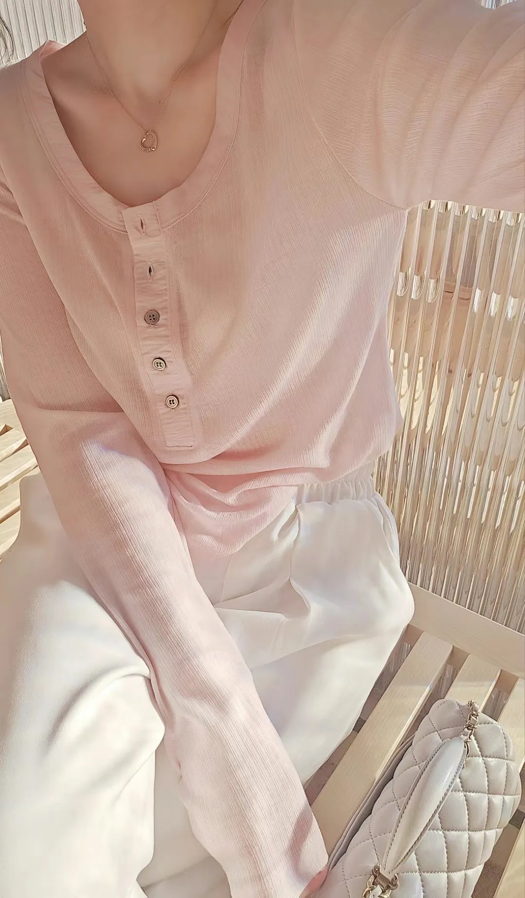 大圓領和亨利領的半開襟剪裁,領邊拼接異材質的細節太美~