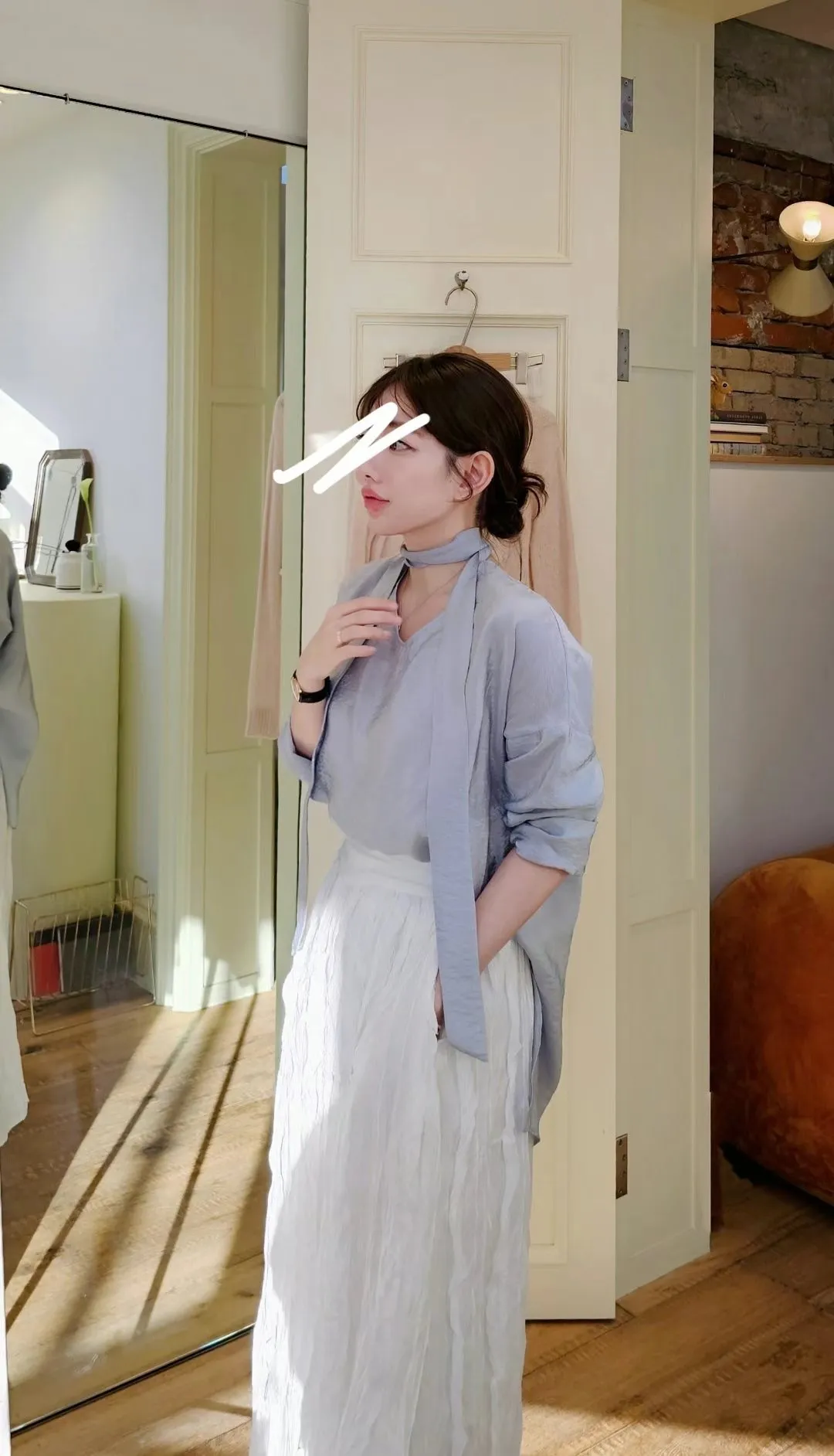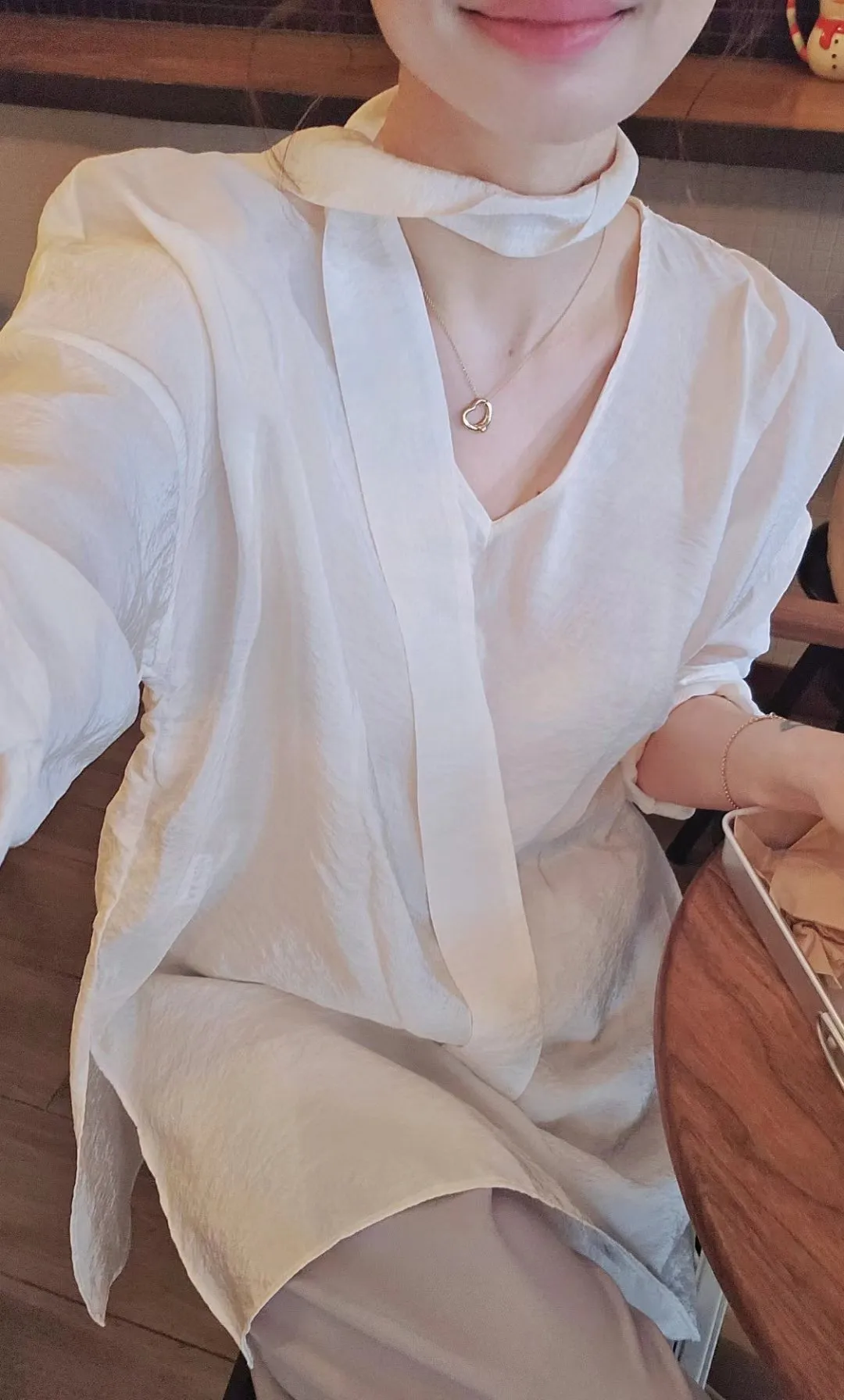 同布料的飄帶可以當領巾裝飾,也可以當腰帶🤍