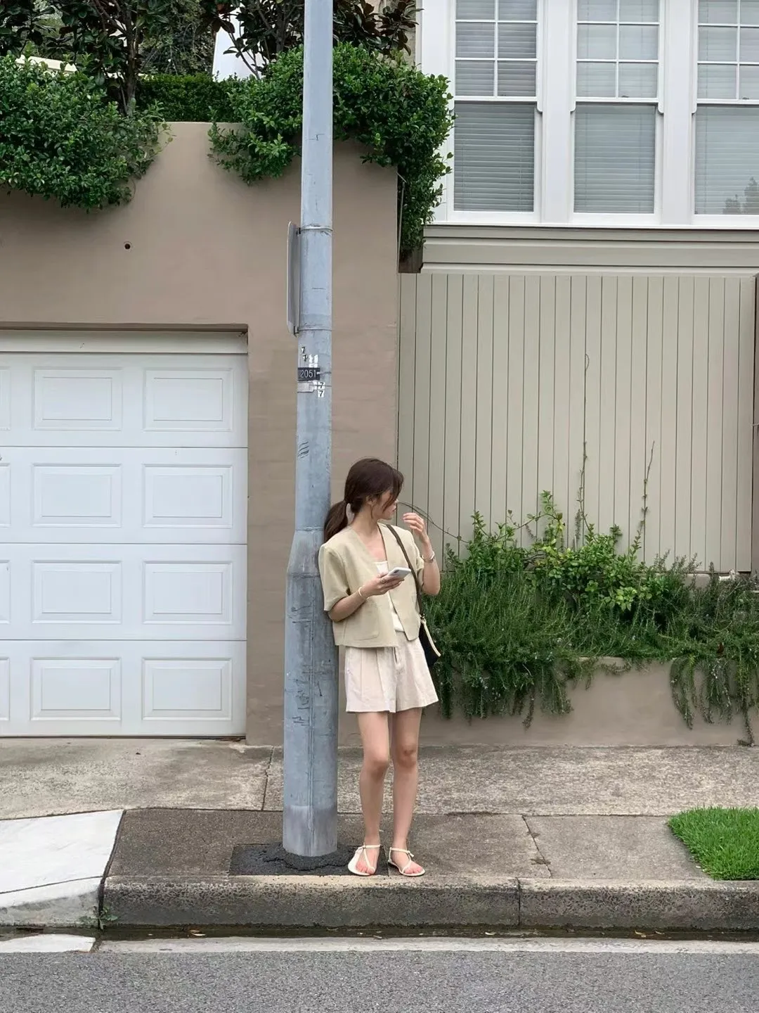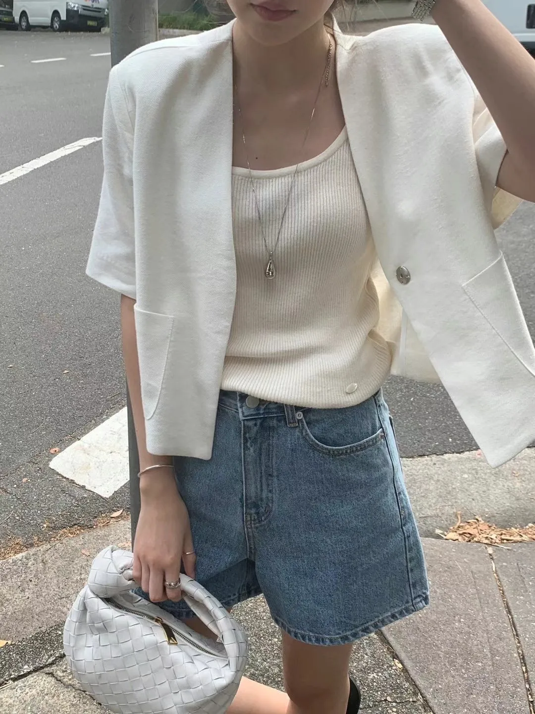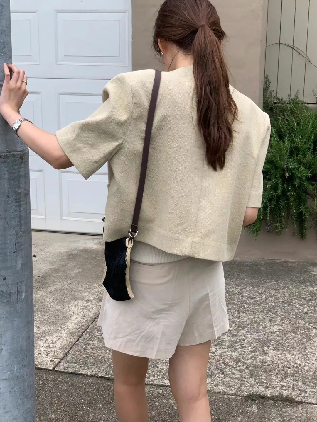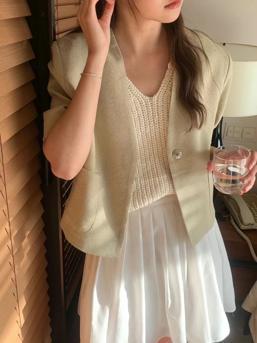 A27店長推薦*天絲亞麻單釦短版西裝外套